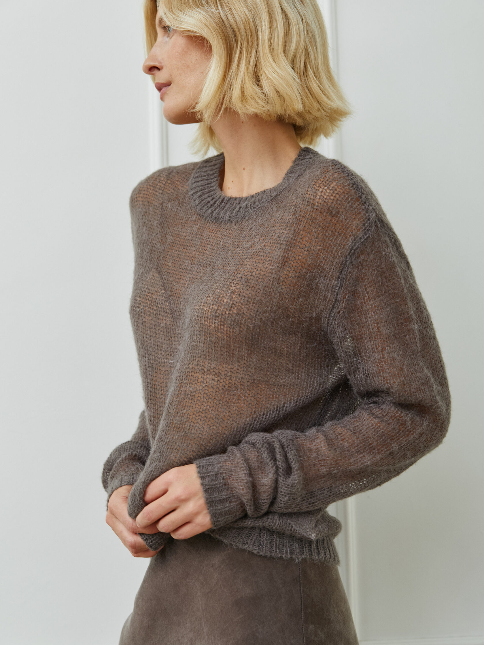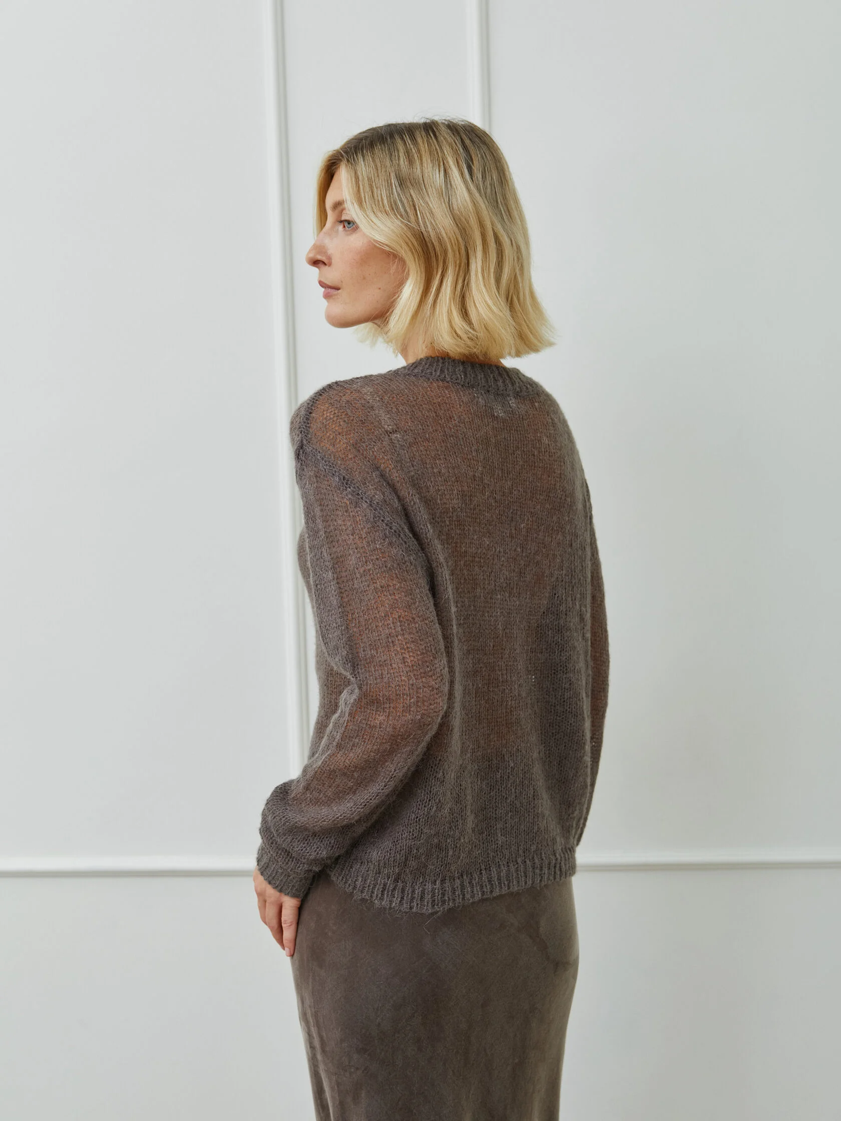Лёгкая и воздушная модель, которая станет отличным дополнением к вашему гардеробу. Свитер выполнен из тонкой пряжи, которая создаёт эффект паутинки, обеспечивая комфорт и приятные ощущения при носке. Круглый вырез придаёт изделию изящный и женственный вид.