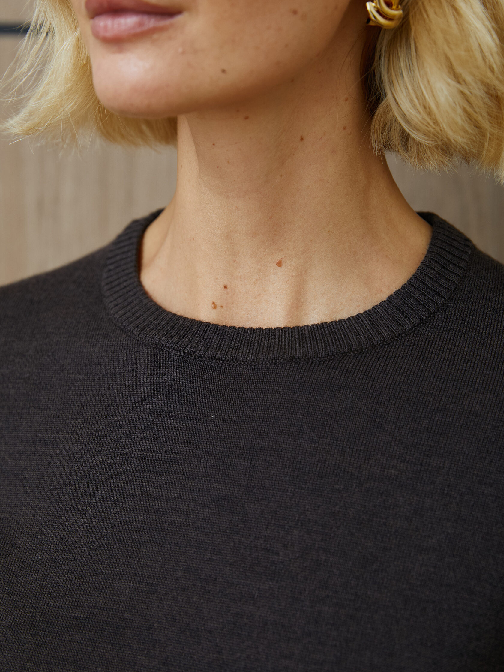 Модель отличается свободным кроем, который не сковывает движений и позволяет создать множество стильных образов. Круглый вырез добавляет изящества и женственности. Джемпер можно сочетать с различными элементами гардероба — от джинсов до брюк и юбок.