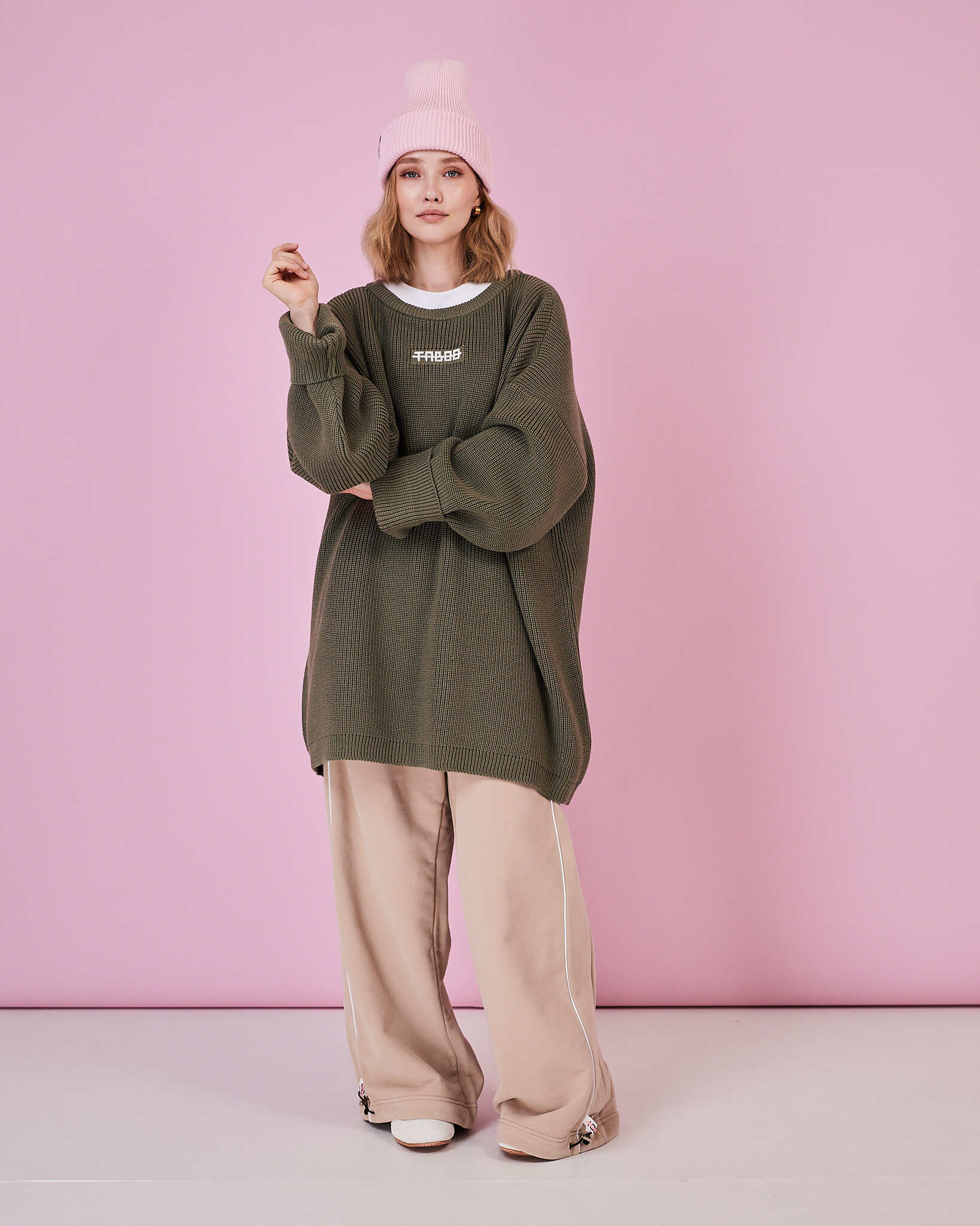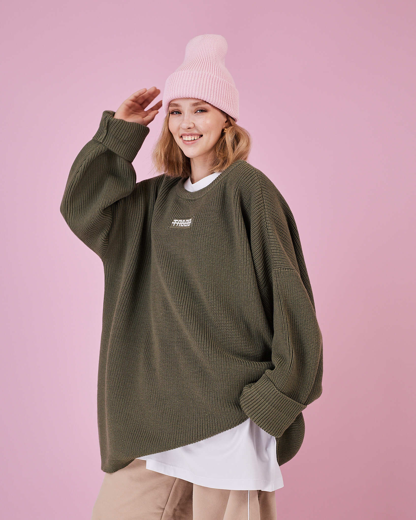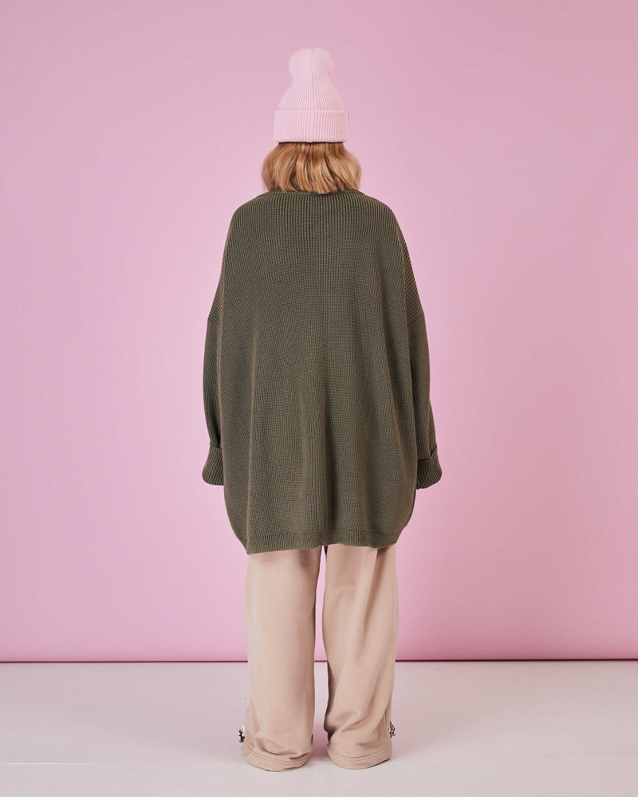 Стильный свитер в благородном оттенке полыни. Смесь мериноса и акрила (50/50) обеспечивает комфорт и долговечность, а свободный силуэт подчёркивает непринуждённость образа. Универсальный размер позволяет носить свитер как самостоятельный акцент или в многослойных комбинациях.