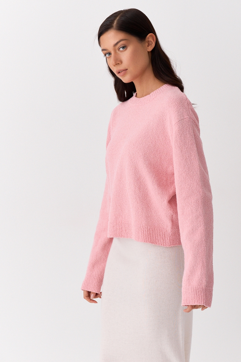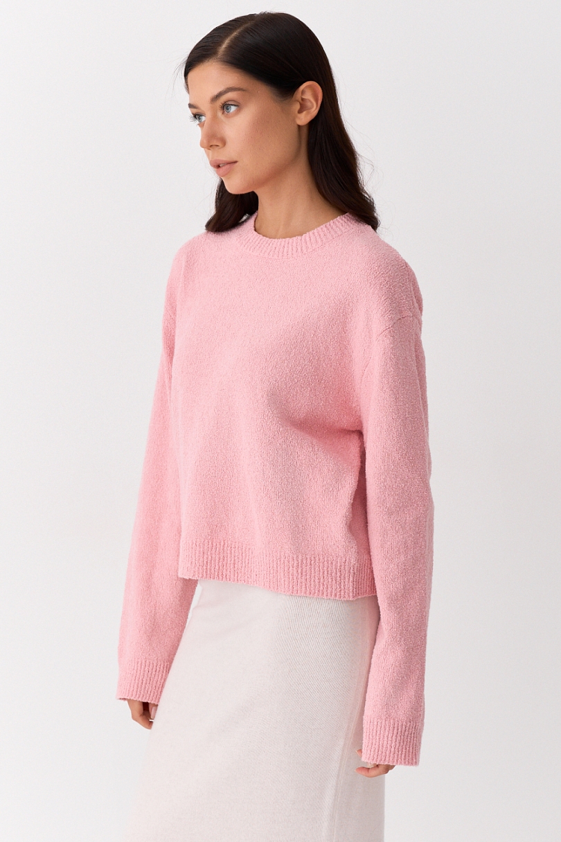 Свитер букле из хлопка — это стильная и комфортная вещь, созданная для повседневного гардероба. Изготовлен из натурального хлопка с характерной фактурой «букле», которая придаёт изделию мягкий объём и лёгкий эффект ручной вязки.