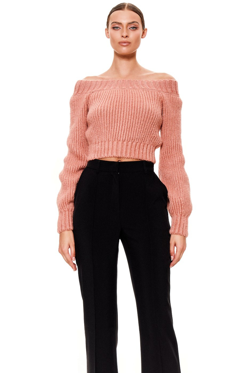 Топ со спущенными плечами выполнен из трикотажа контрастной вязки. Длинные рукава с манжетами, открытая линия плеч и ключиц, длина до линии талии. Лёгкий объем в области основы контрастирует с аккуратным краевым оформлением. Нежный, приятный к телу вязаный трикотаж дарит только комфортные ощущения. Базовое изделие, которое можно смело стилизовать с элементами костбмной группы (юбками, брюками), денимом, леггинсами. Безупречное качество и твоя уникальность в узнаваемой стилистике SODAMODA!