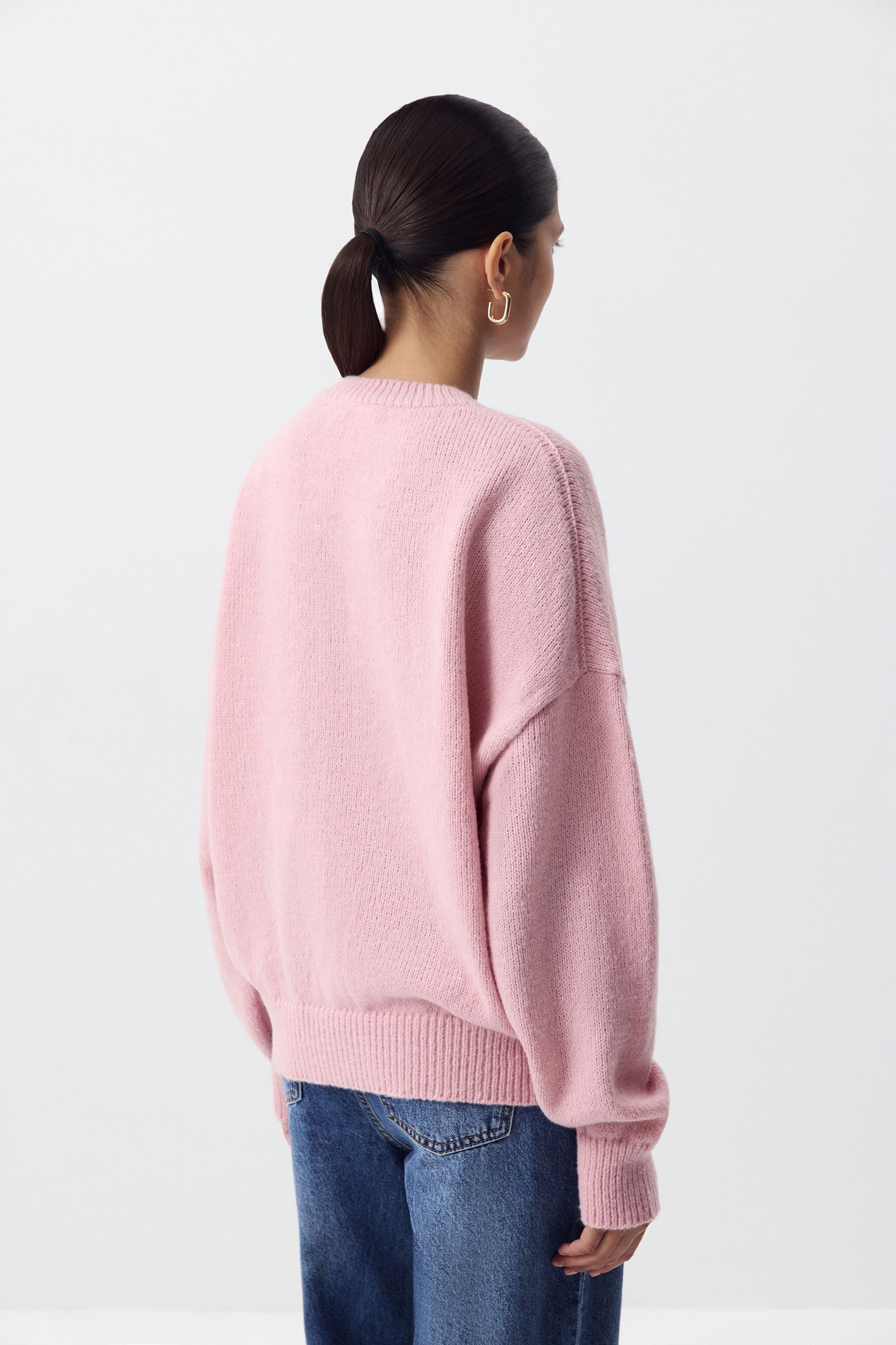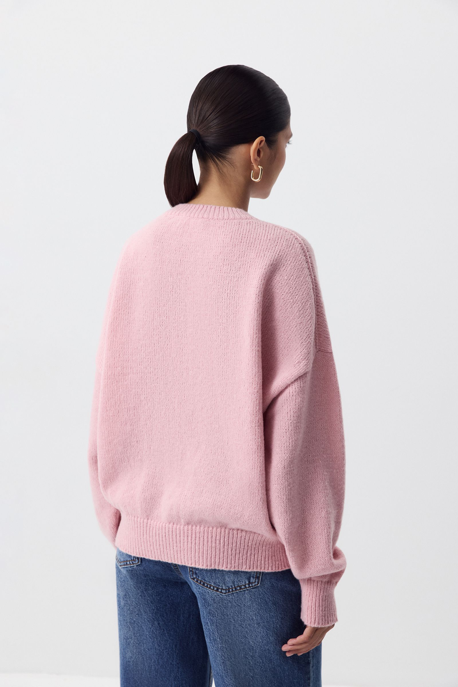 Базовый джемпер из пряжи с мохером в составе. Прямой крой, широкая резинка по низу изделия и рукавам обеспечивают свободную, регулируемую посадку. Комфорт и расслабленность изделию добавляет спущенная линия плеч. Не сковывает движения и приятен к телу.