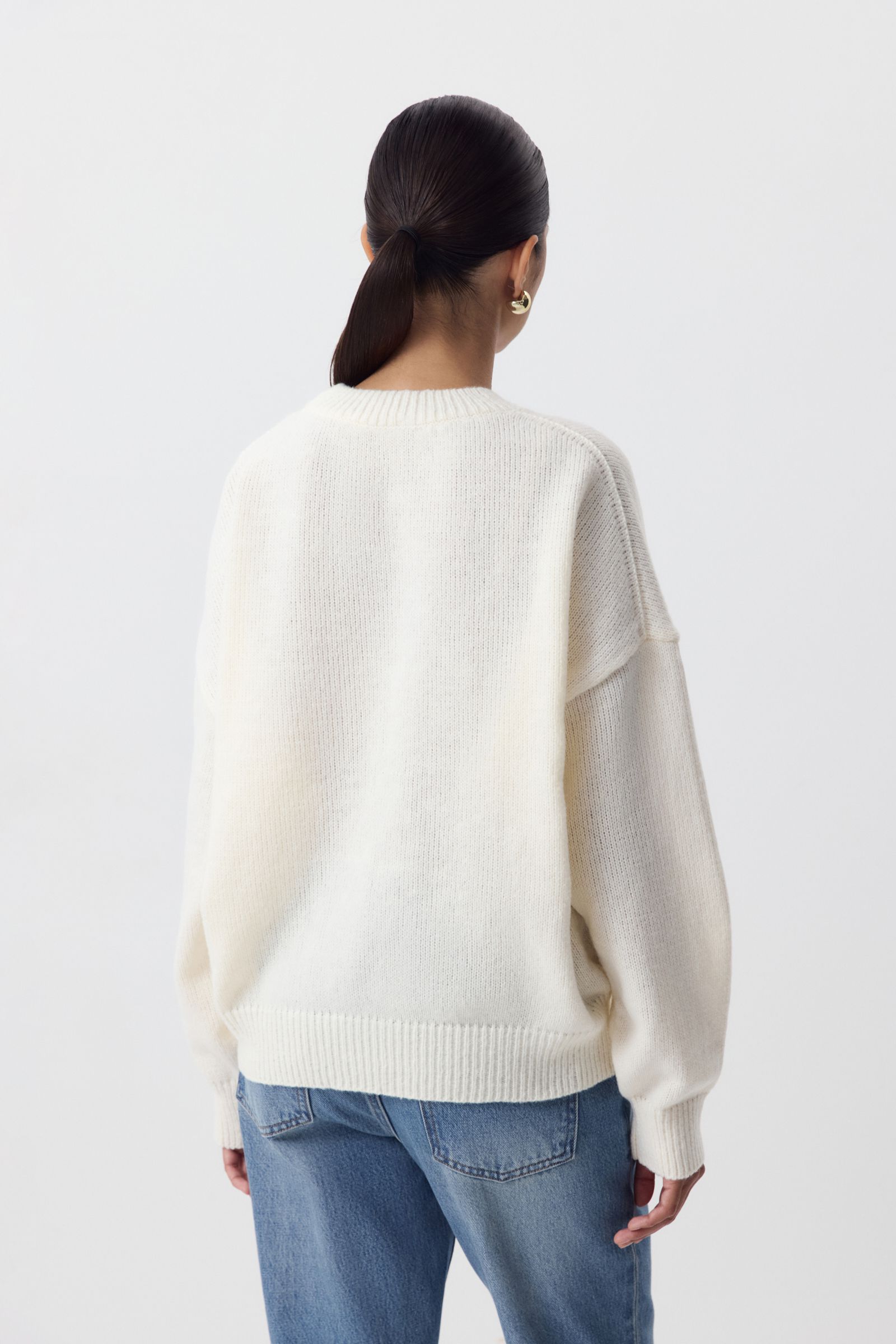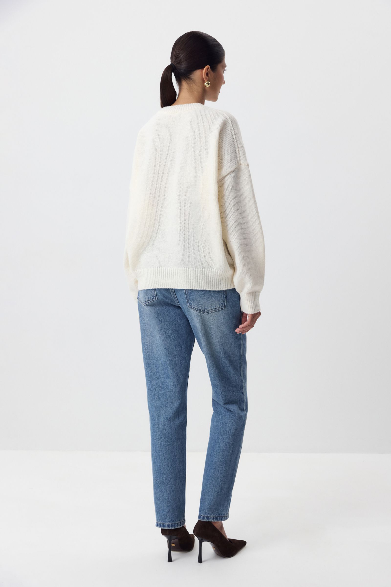 Базовый джемпер из пряжи с мохером в составе. Прямой крой, широкая резинка по низу изделия и рукавам обеспечивают свободную, регулируемую посадку. Комфорт и расслабленность изделию добавляет спущенная линия плеч. Не сковывает движения и приятен к телу.