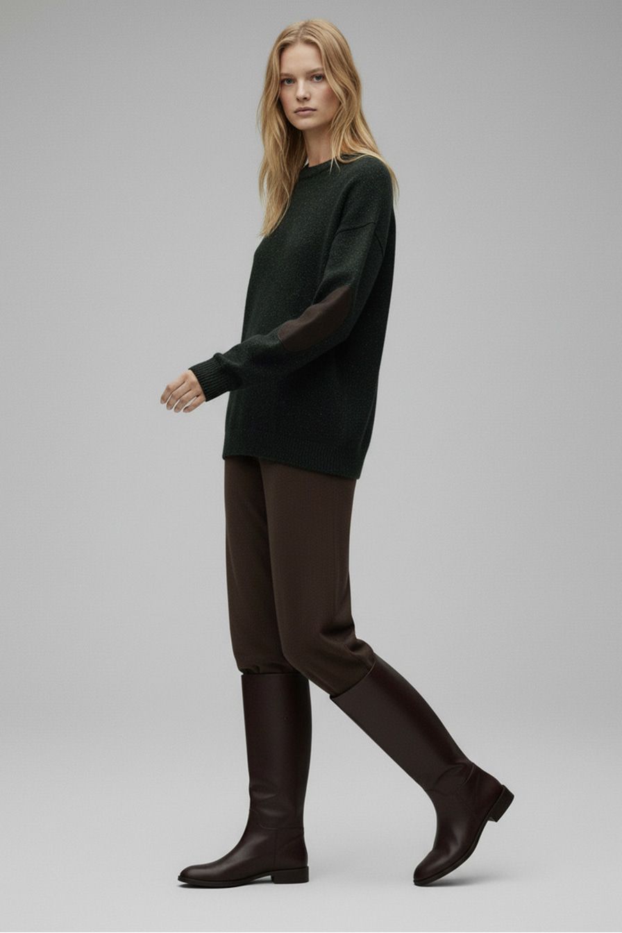 «Для повседневного лука сочетайте джемпер с зауженными книзу джинсами и ботинками на массивной платформе».