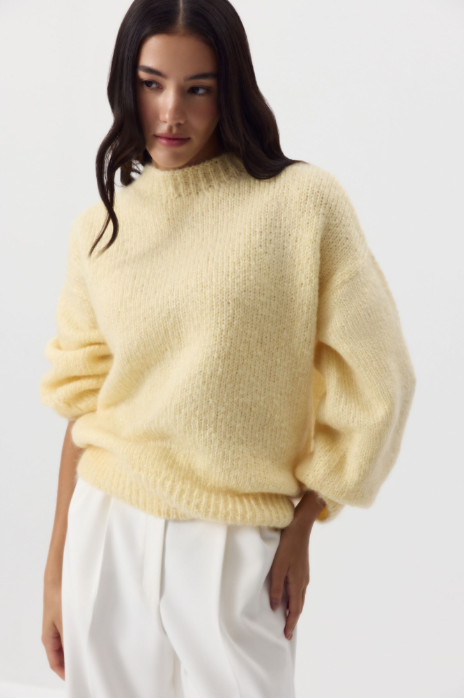 Базовый джемпер словно позаимствован из мудборда осенне-зимнего сезона. Чтобы составить лук в стиле Casual добавьте к джемперу свободные брюки. Для дресс-кода в офис выбирайте юбку любой длины. Стилизуйте с простыми джинсами и тренчем для прогулок с друзьями.
