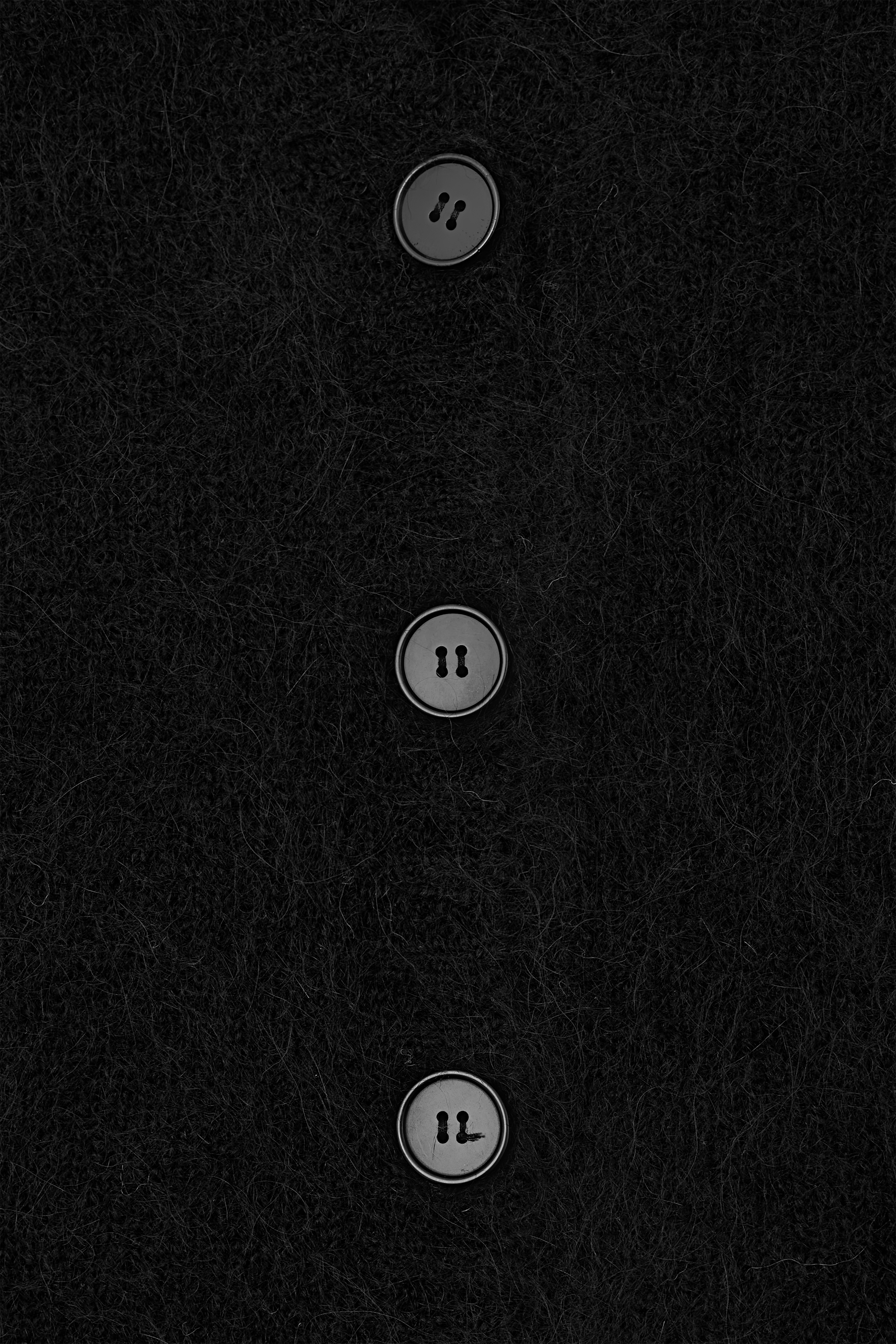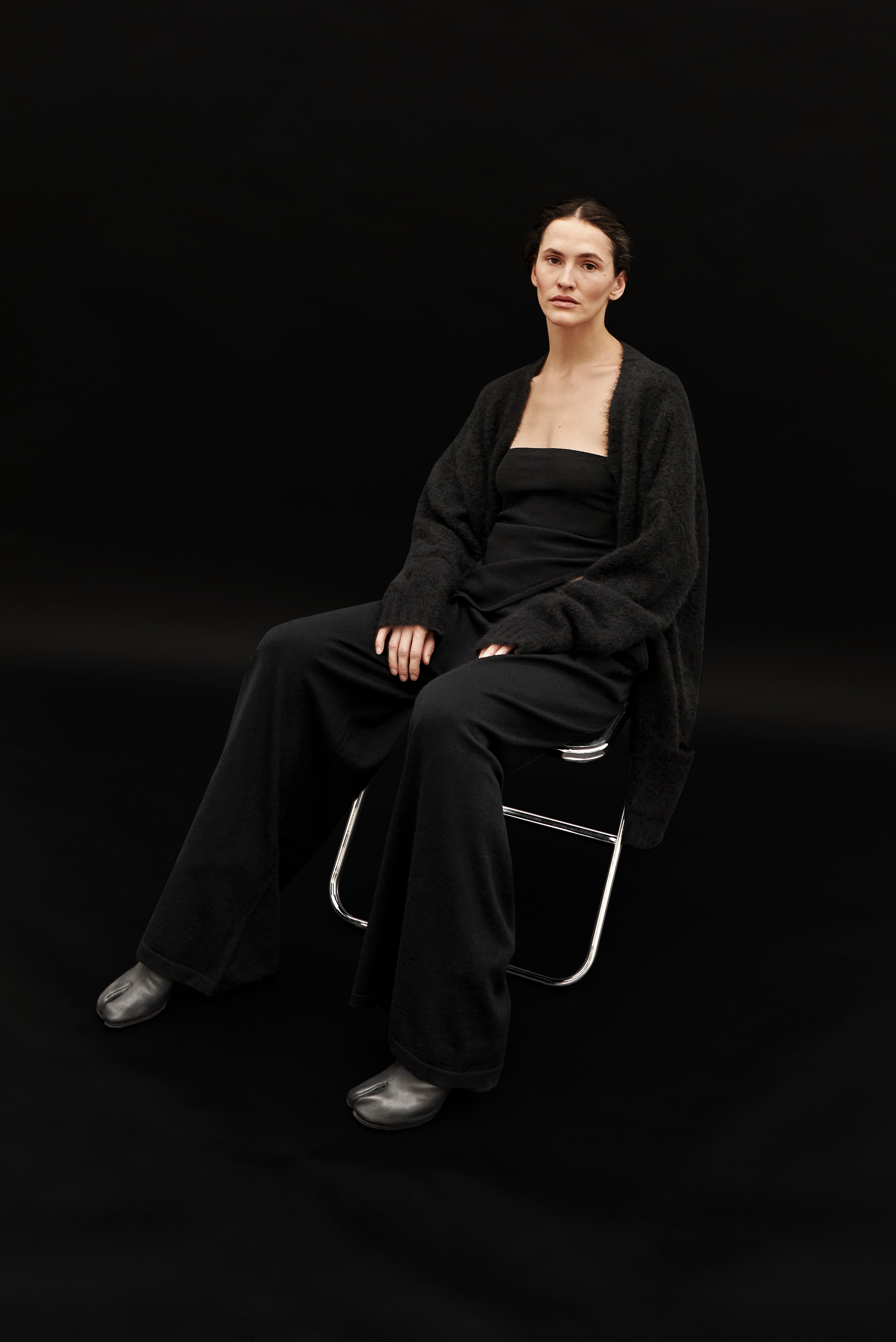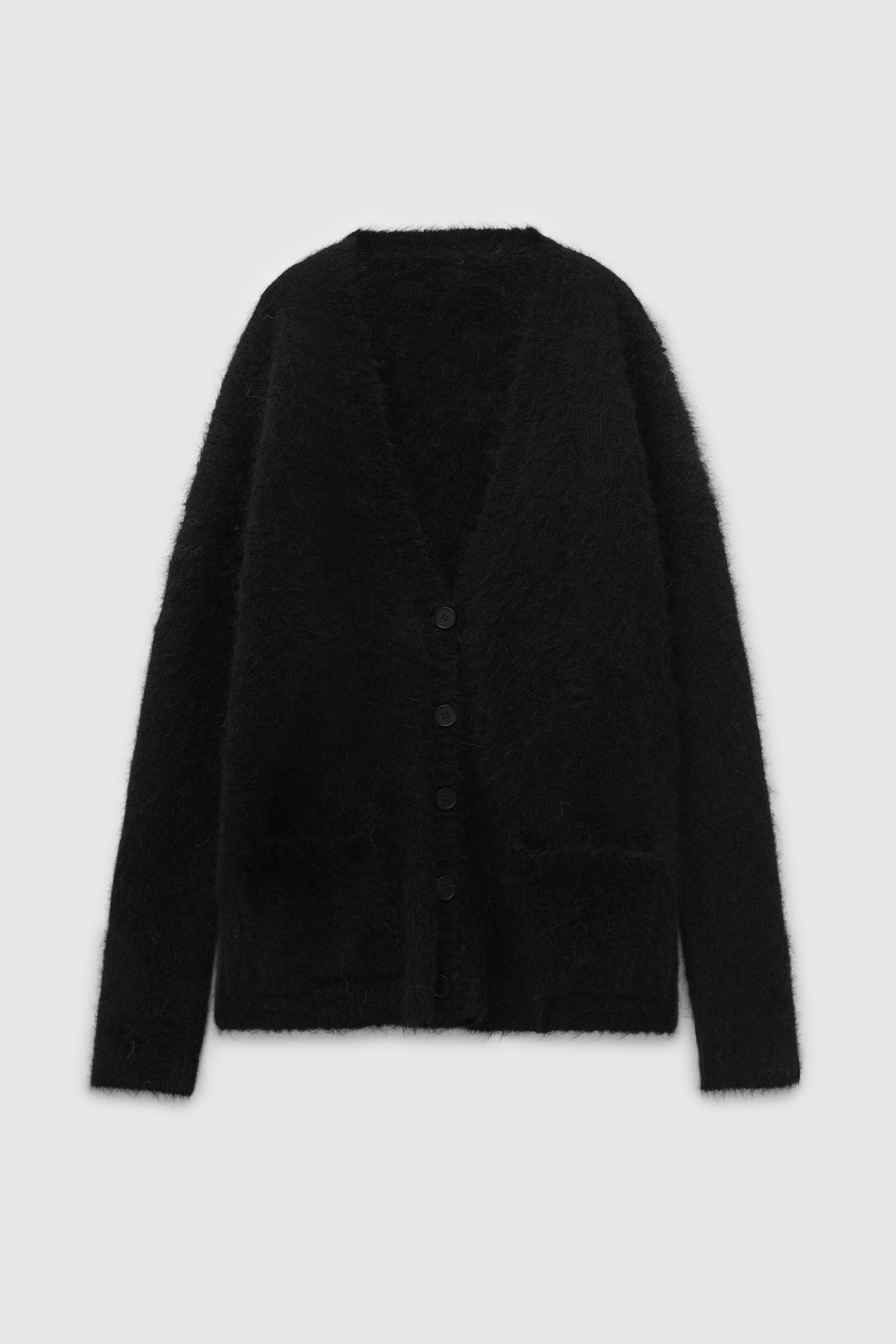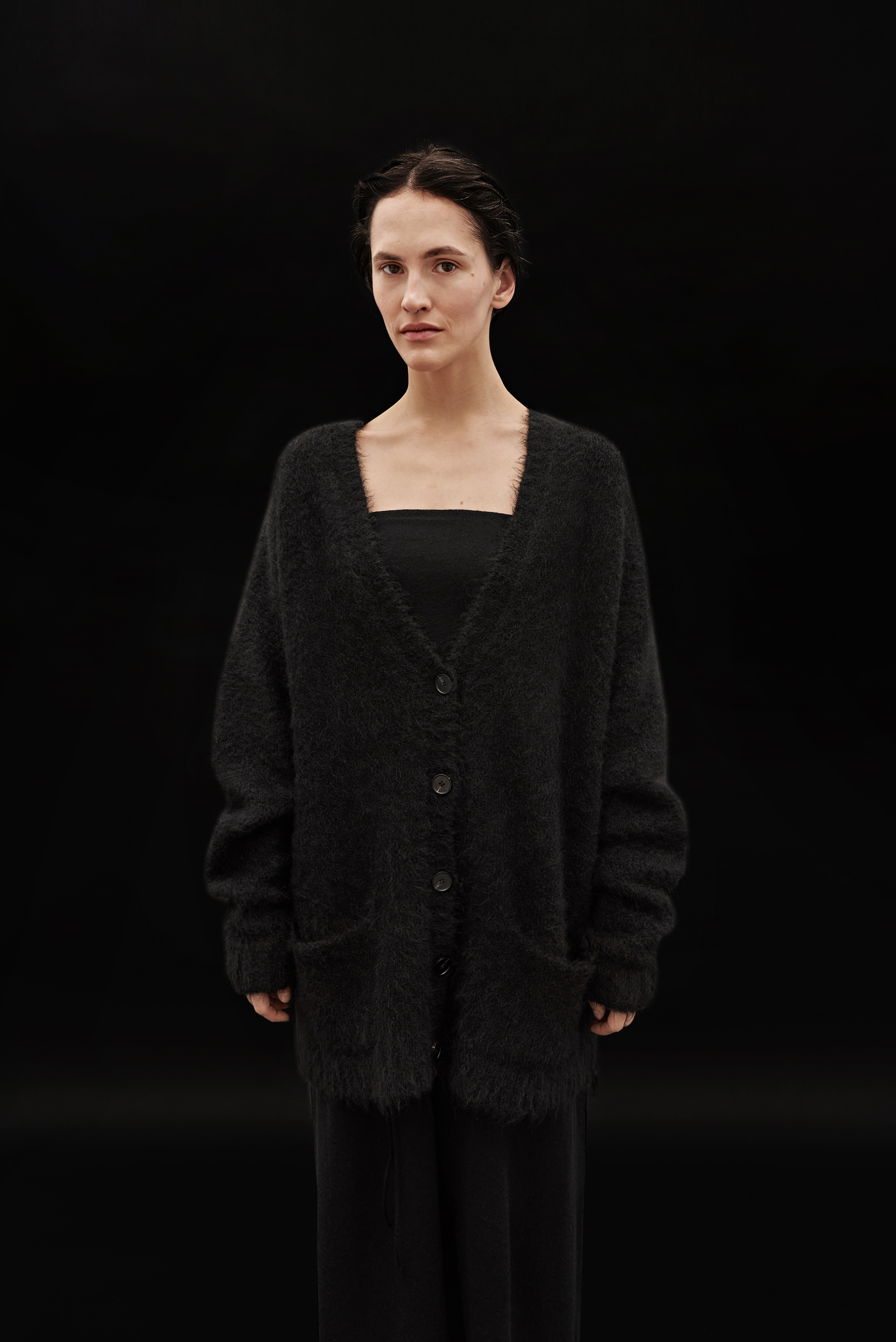 Удлиненный силуэт и свободный крой изделия создают максимально расслабленное настроение. Шерсть альпаки в составе изделия создает эффект “пушистой” фактуры. За счет этого, сочетание кардигана с брюками и косынкой из текущей коллекции станет отличным способом для создания образов в едином цветовом исполнении, где акцент смещается на контраст фактур.