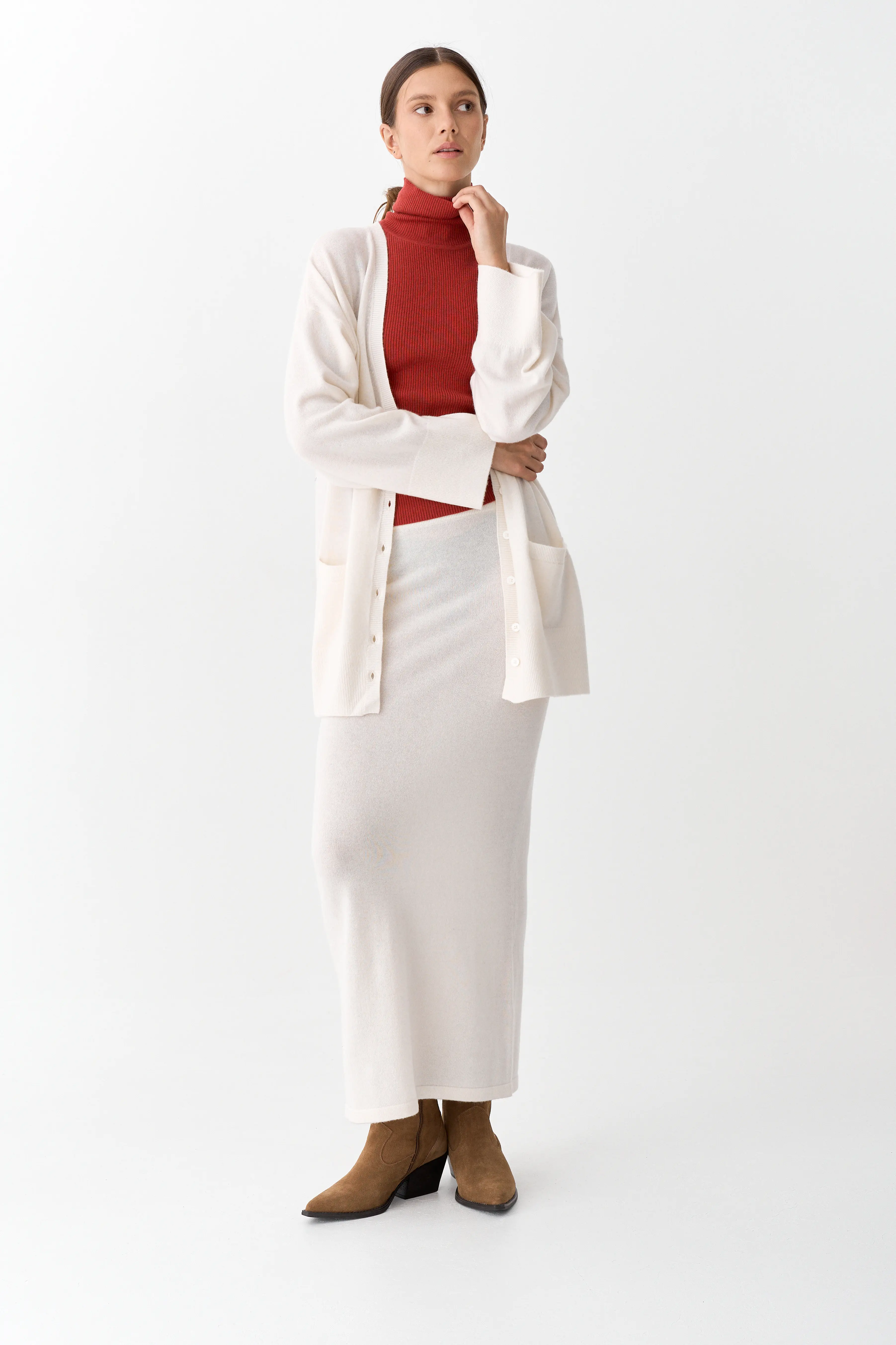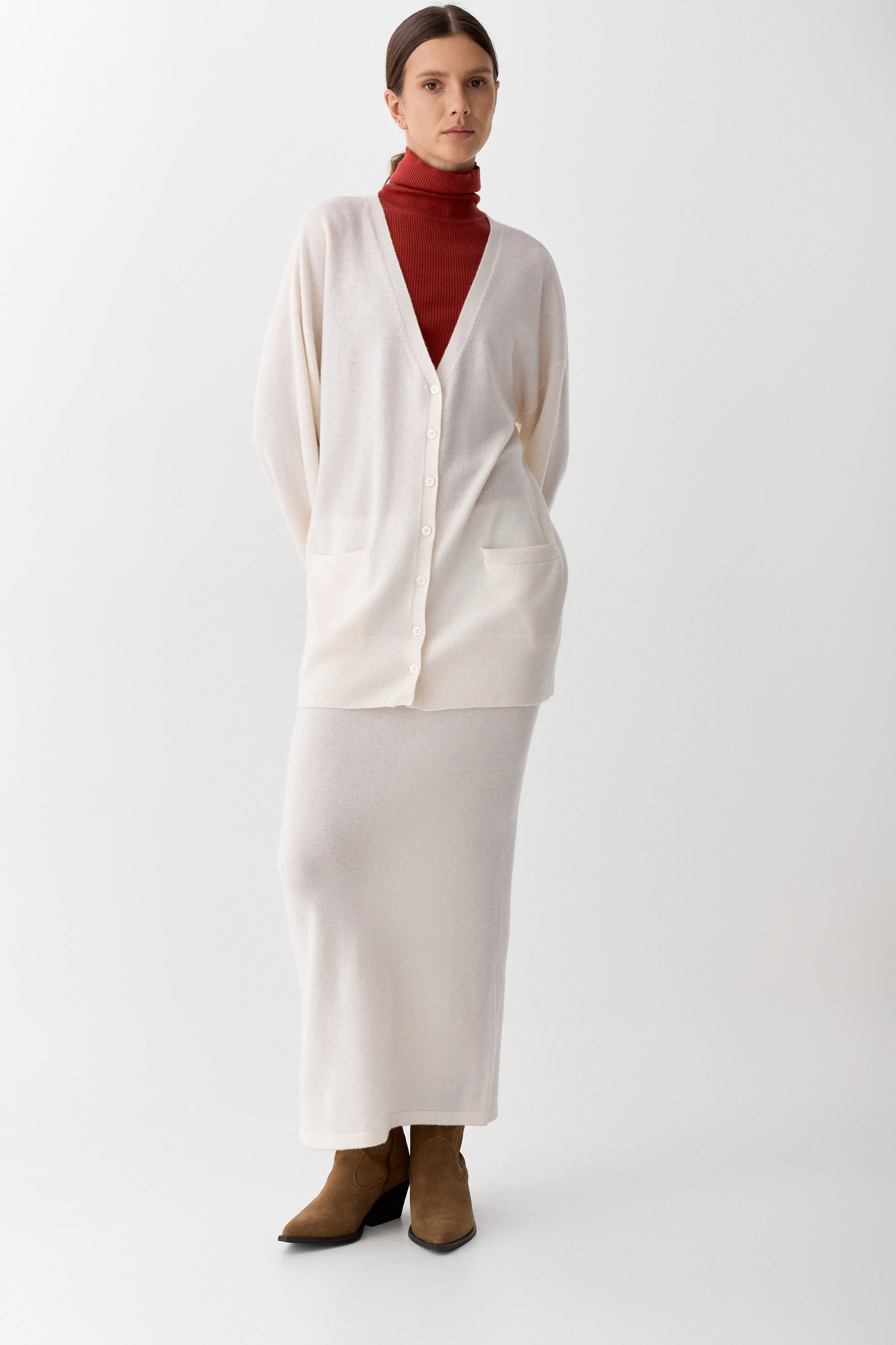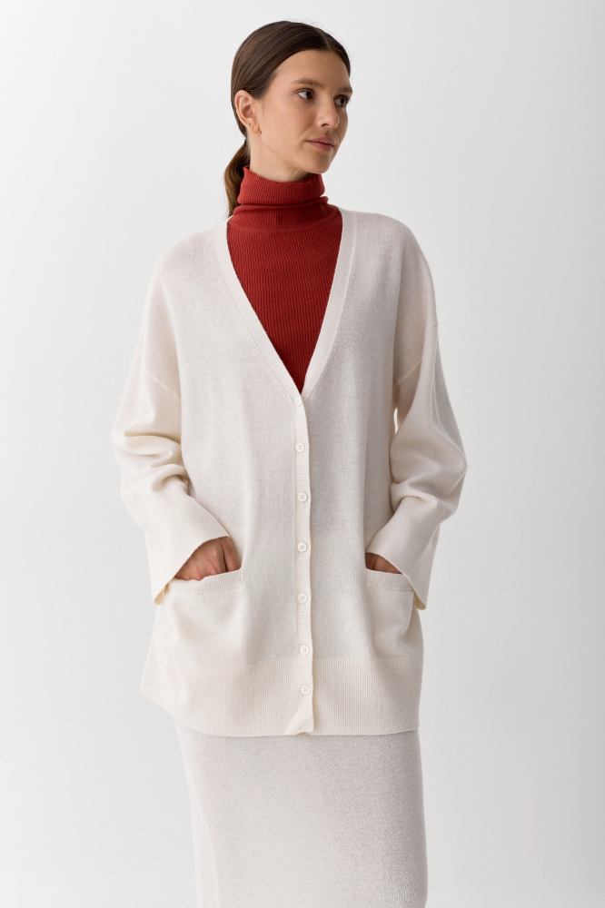 Кардиган из шерсти и кашемира – это воплощение роскоши, комфорта и изысканности. Изготовленный из смесовой ткани, сочетающей шерсть и кашемир, этот кардиган обеспечивает исключительную мягкость, тепло и легкость. Кашемир, известный своей нежностью и элитностью, дополненный шерстью для долговечности, создает идеальный баланс между уютом и стилем. Этот кардиган станет идеальным спутником в холодное время года, добавляя образу элегантности и утонченности.