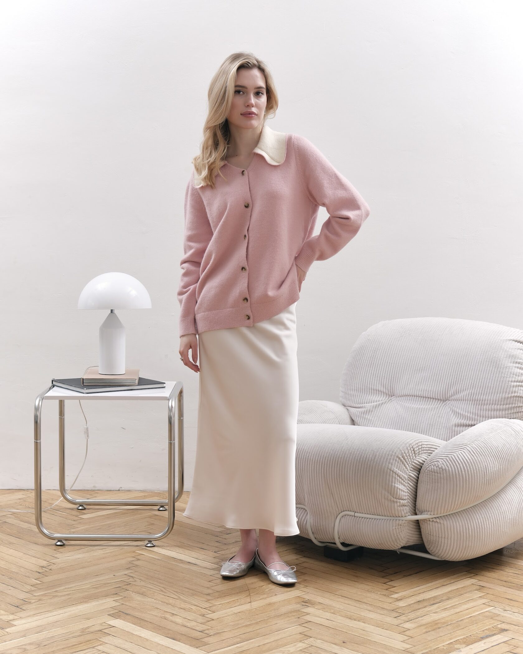 Кардиган на пуговицах с контрастным воротником - идеальный выбор для холодных дней.