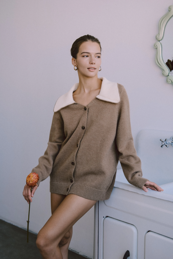 Кардиган на пуговицах с контрастным воротником - идеальный выбор для холодных дней.