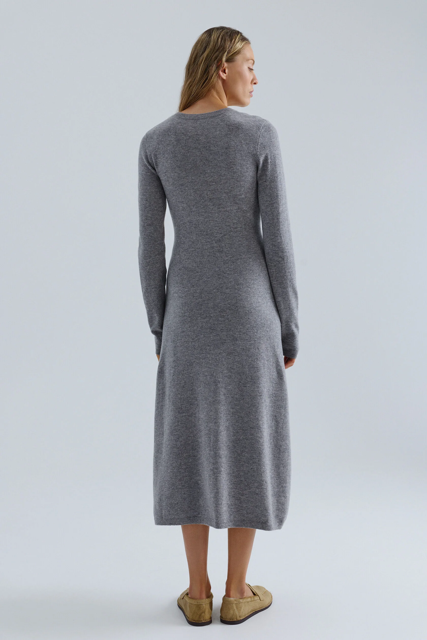 Платье A-силуэта из мягкой мериносовой шерсти длины миди. Тактильно приятный трикотаж, удлинённые рукава и классический круглый вырез. Крой модели деликатно облегает фигуру.