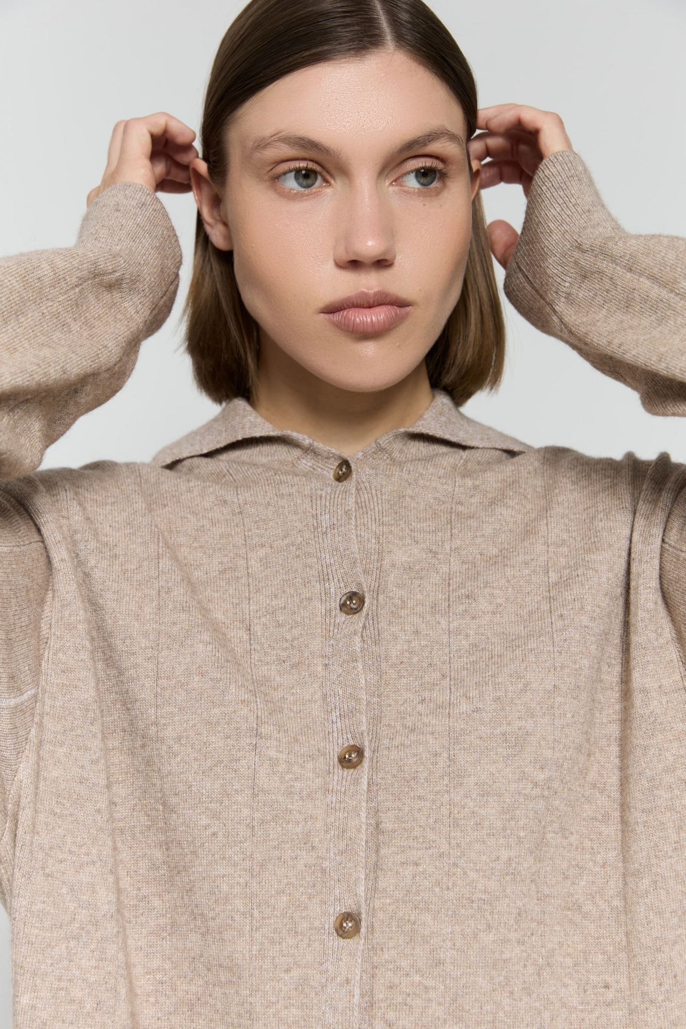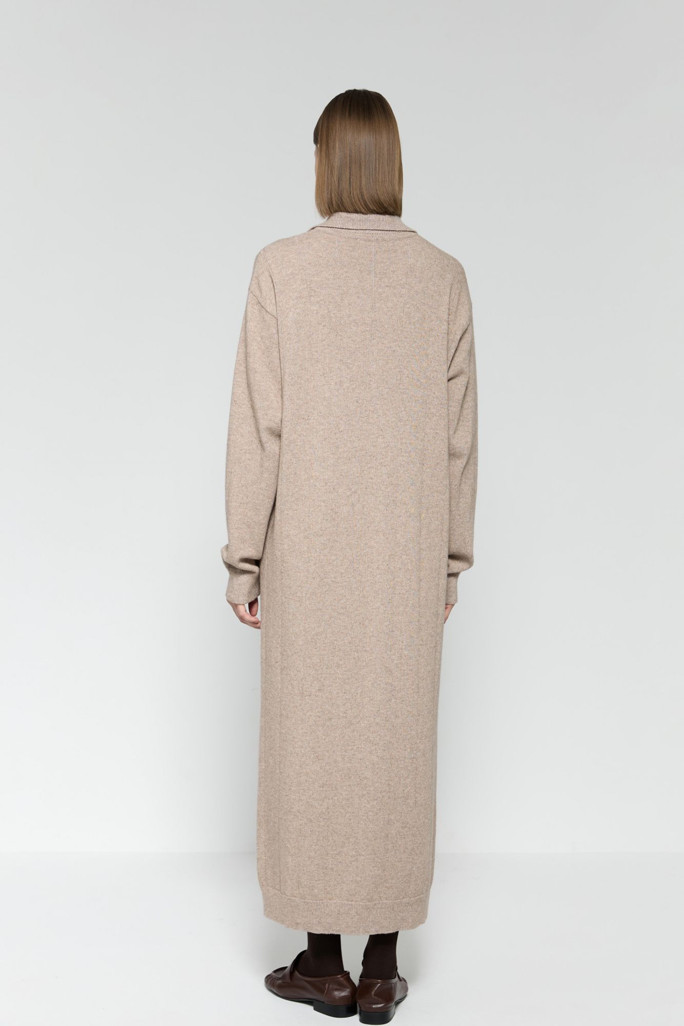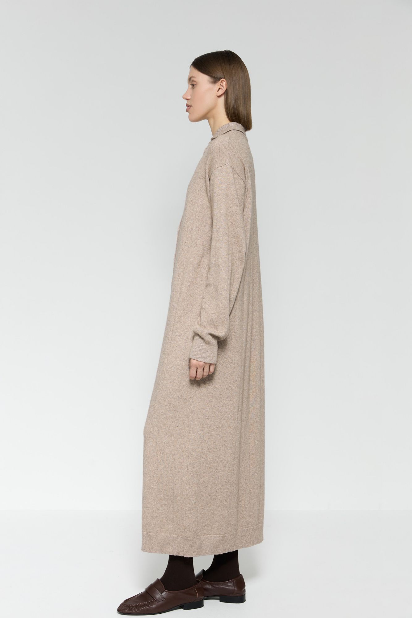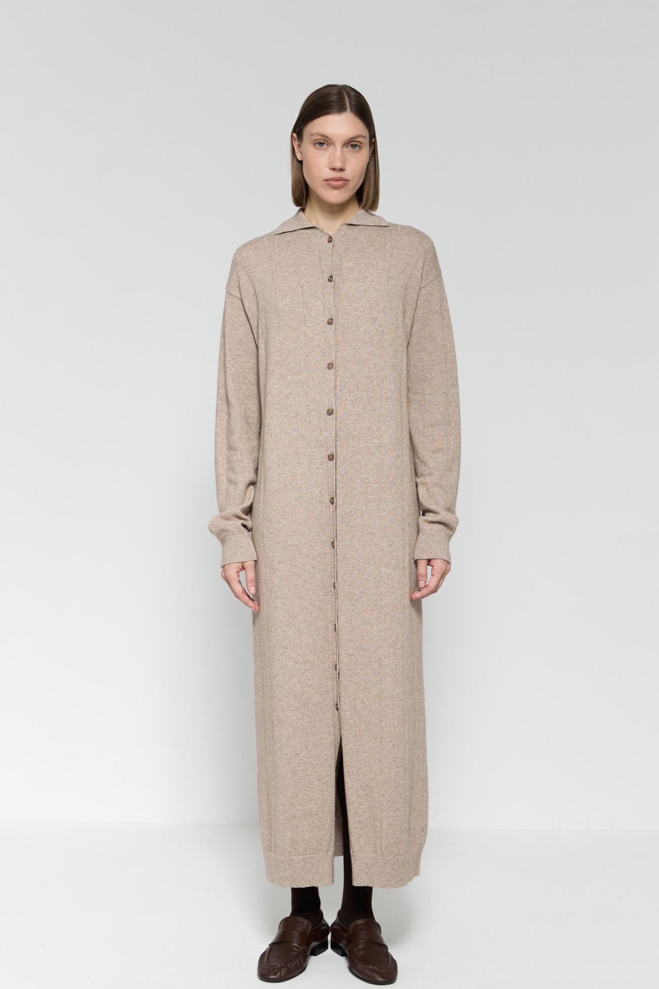 Платье-рубашка связано из микса кашемира, шерсти мериноса и вискозы; нежной и комфортной к коже пряжи, сделанной в Италии.