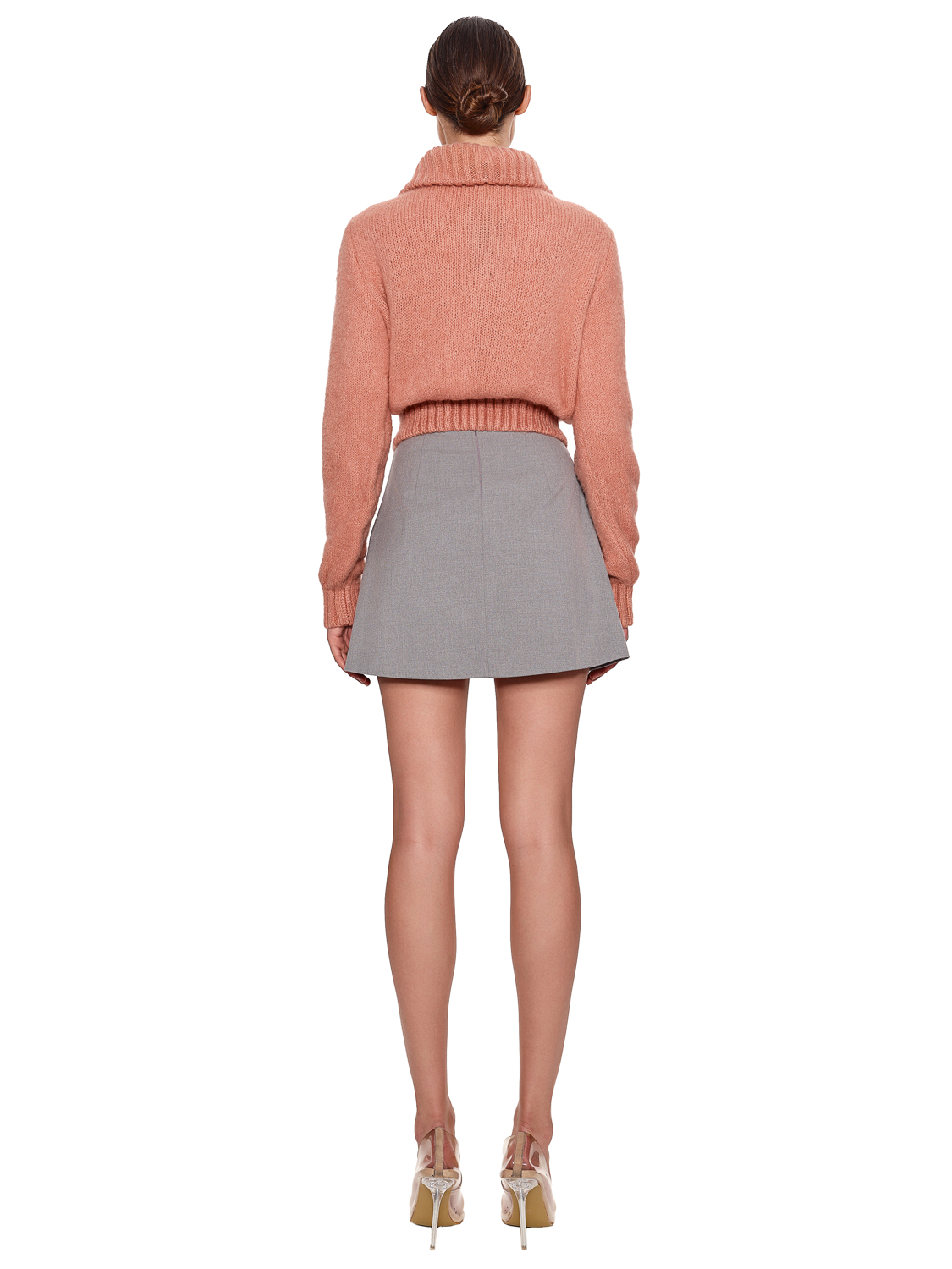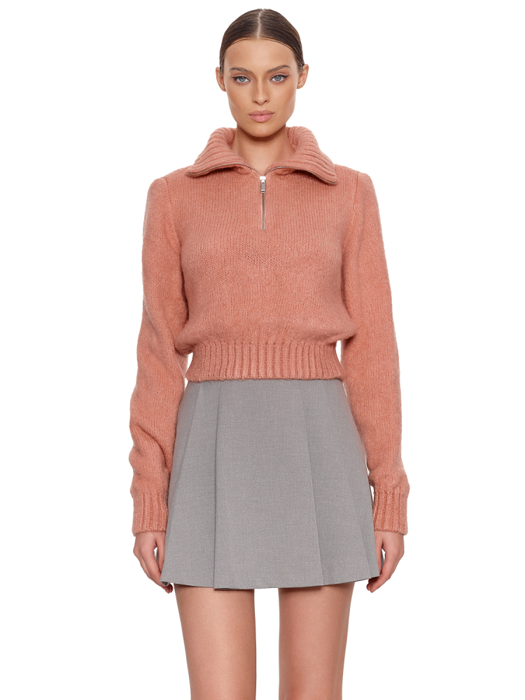 Стильный джемпер в длине кроп выполнен из вязаного трикотажа. Модель с высокой горловиной, интегрированной металлической молнией с возможностью носить воротник стойкой или в виде отложной части. Контрастная вязка манжетов и нижнего края, нативный объем и масса вариантов стилизации. С юбками, джинсами, брюками, леггинсами — под любое настроение и аутфит с ощущением максимального комфорта!
