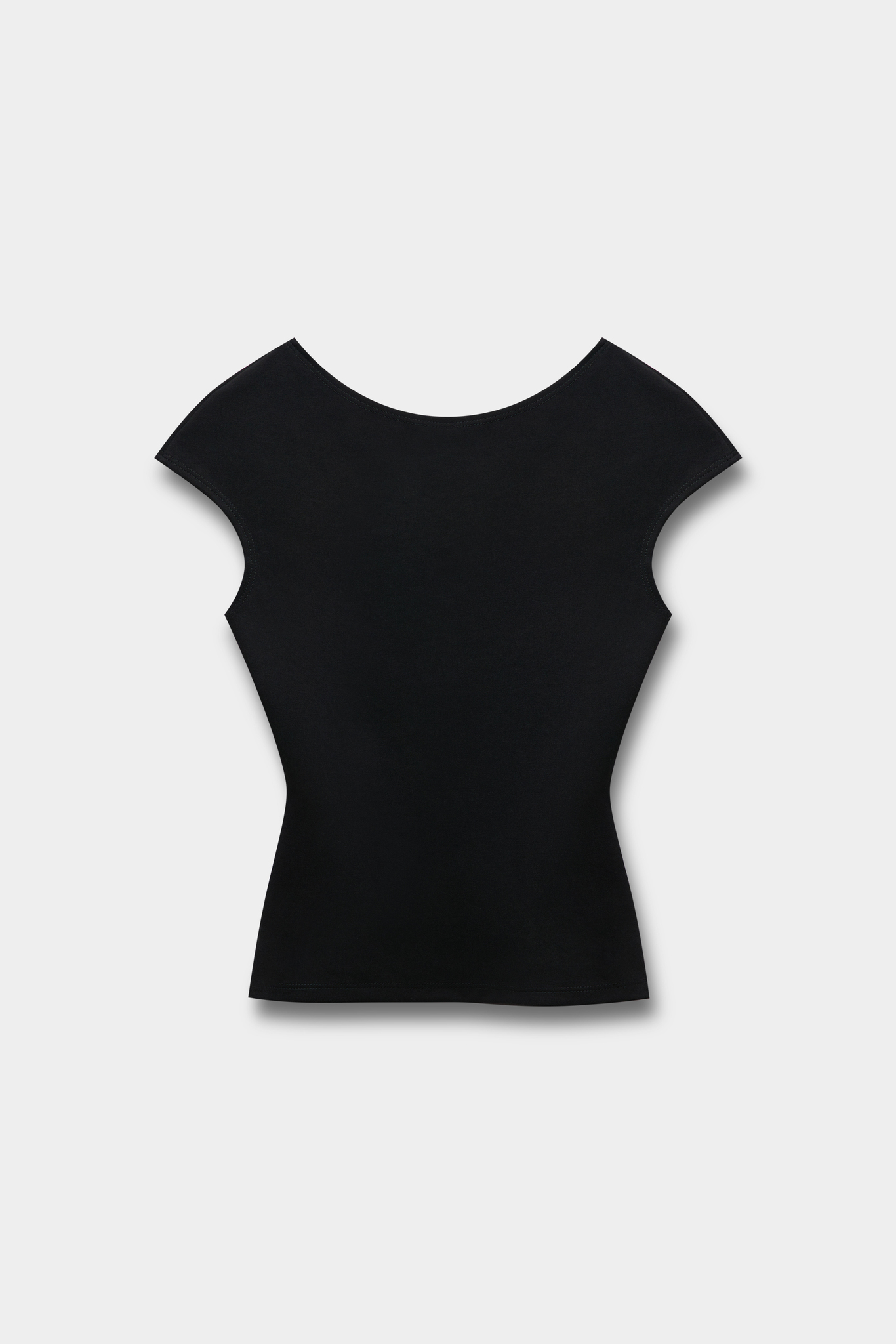 Черный топ из нежного трикотажного полотна – стильный акцент вашего гардероба! Откройте спину и покажите фигуру во всей красе благодаря открытому дизайну. Изящная длина подчеркивает талию и визуально удлиняет ноги. Эластичность материала позволяет чувствовать себя комфортно весь день, а натуральные волокна дарят коже приятное ощущение свежести. Идеальный выбор для летних вечеров и праздничных мероприятий! Подходит для ношения как отдельно, так и под жакет или пальто.