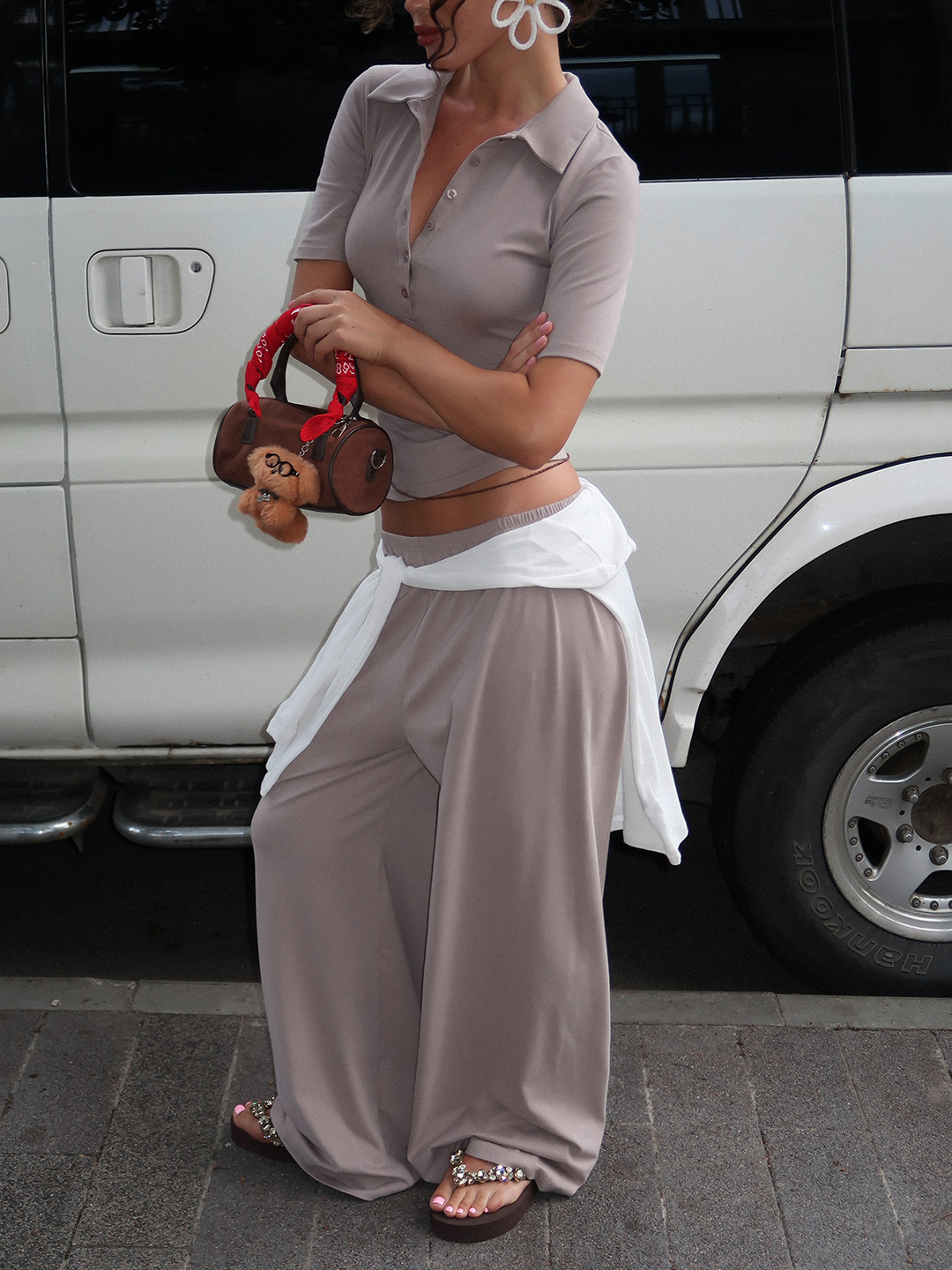 Футболка плотно прилегает по фигуре и подчеркивает силуэт