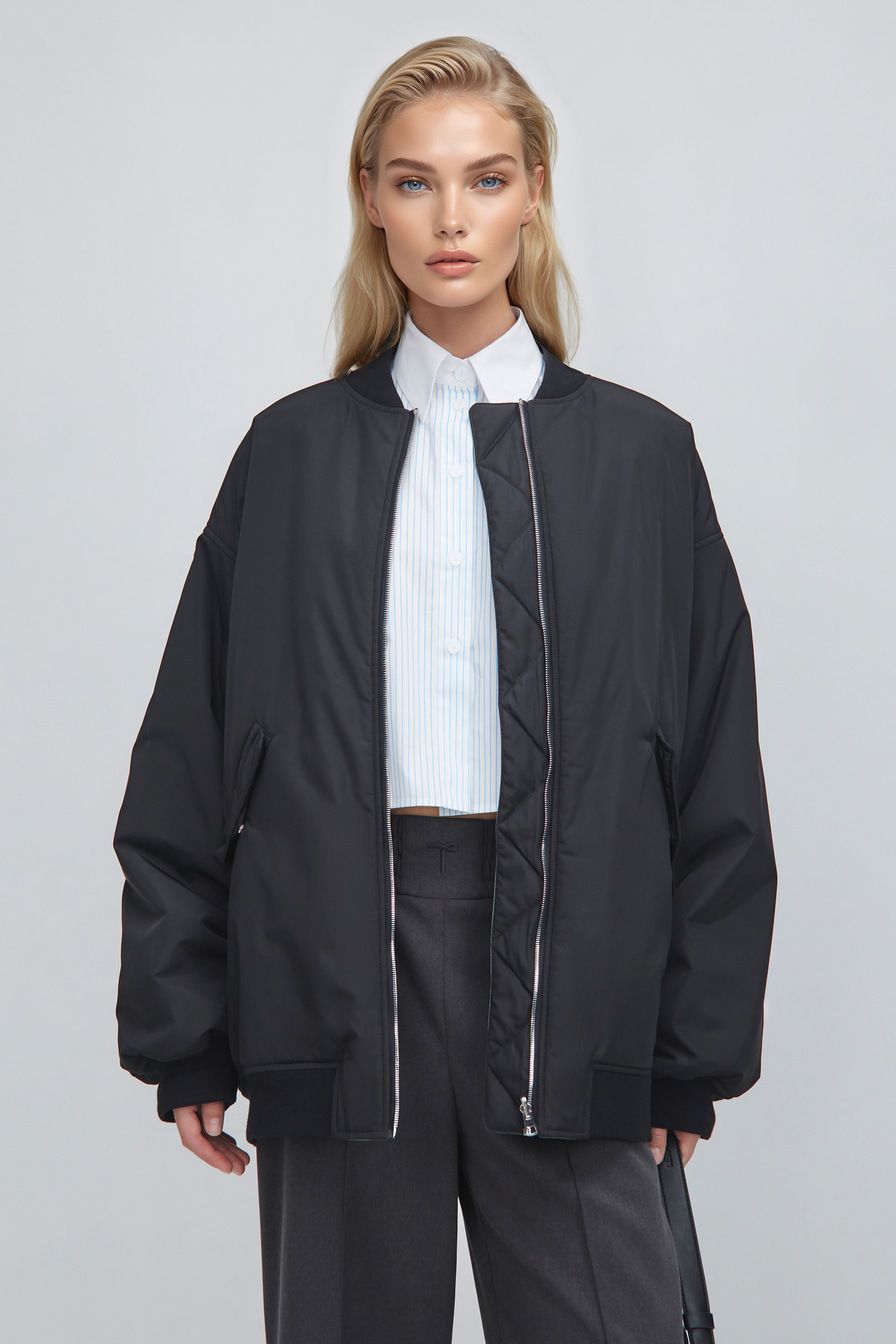 «Для повседневного лука сочетайте бомбер с широкими брюками, ботинками на платформе и принтованным свитшотом».