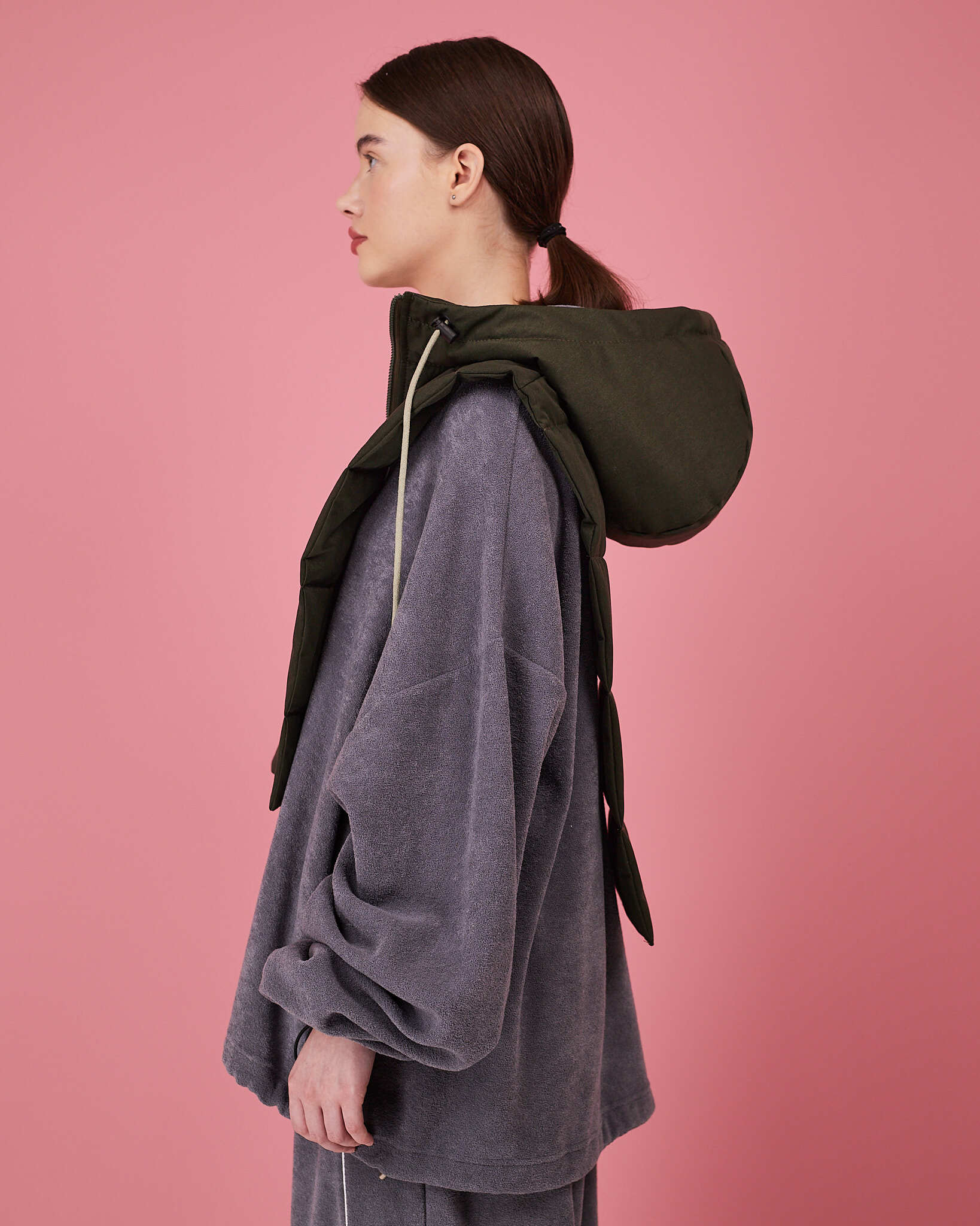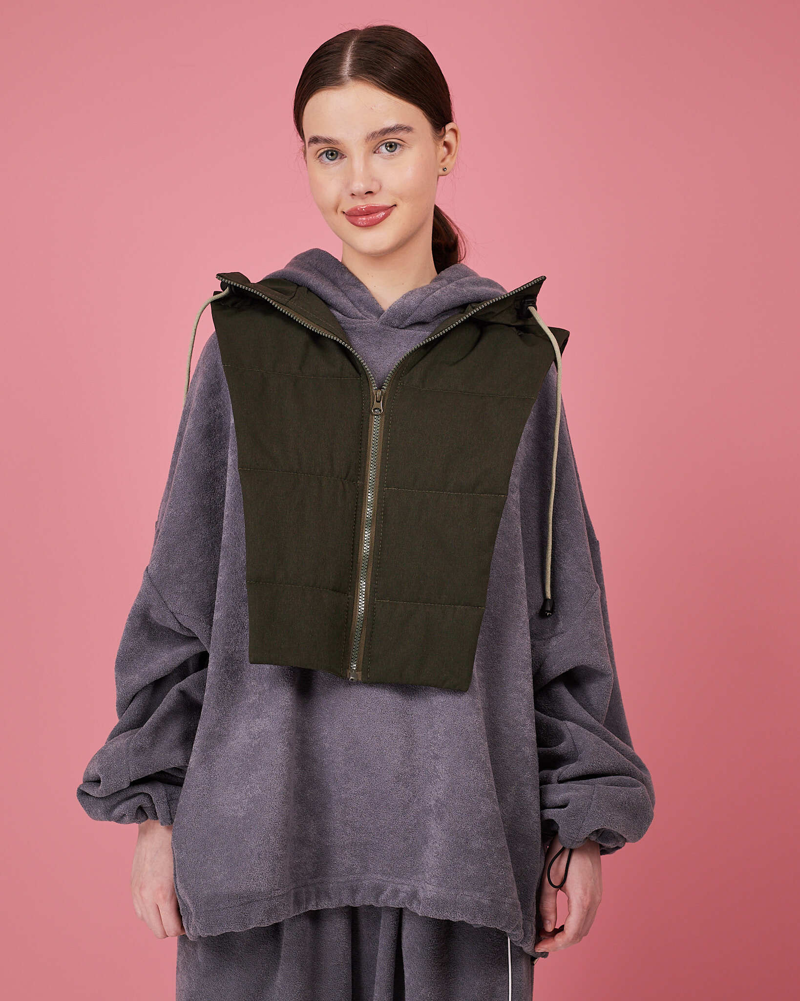 Капюшон-манишка выполнен из плащевой водоотталкивающей ткани, утеплитель альполюкс 100.
