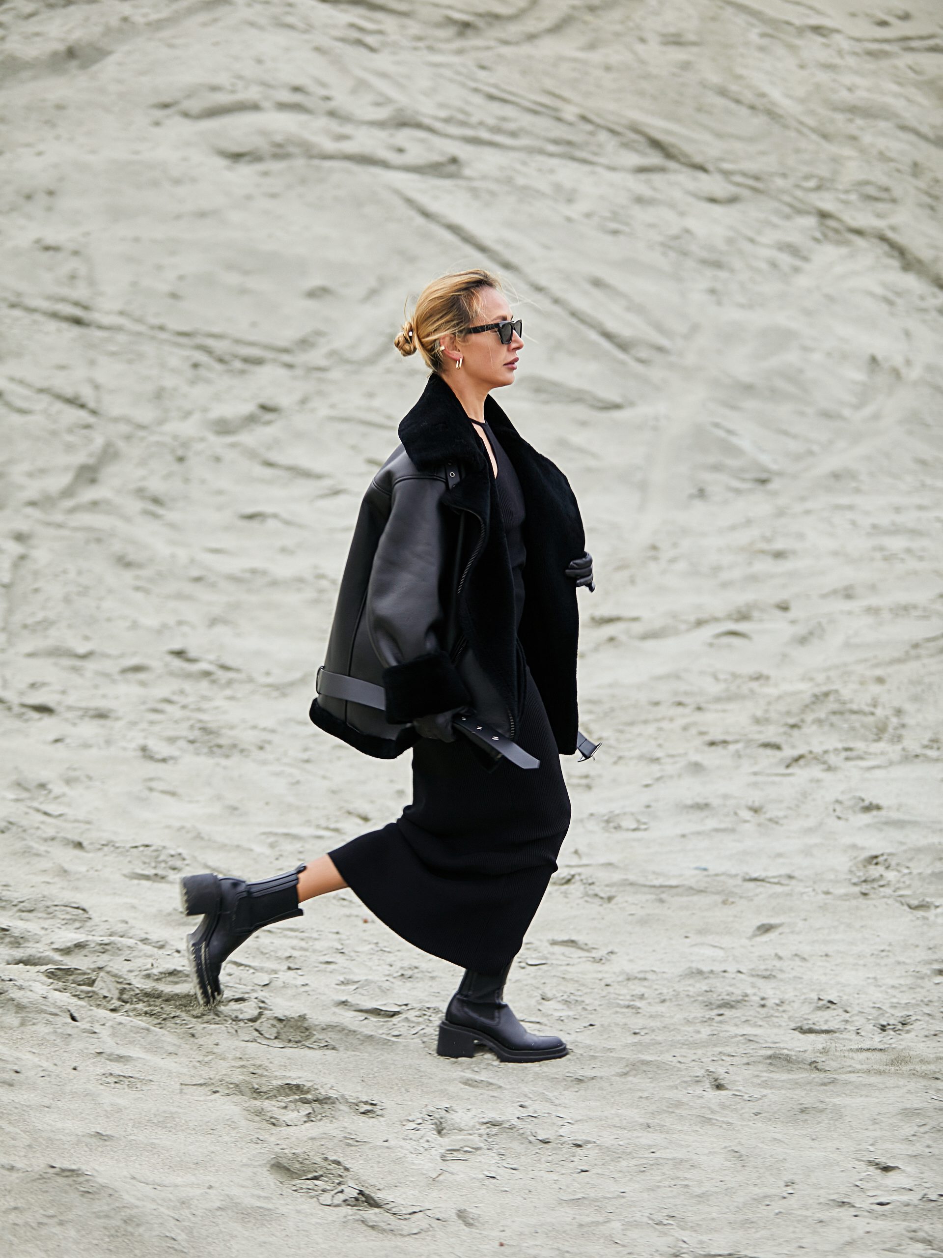 Внешняя часть: 100% шерсть мериноса, 100% экокожа