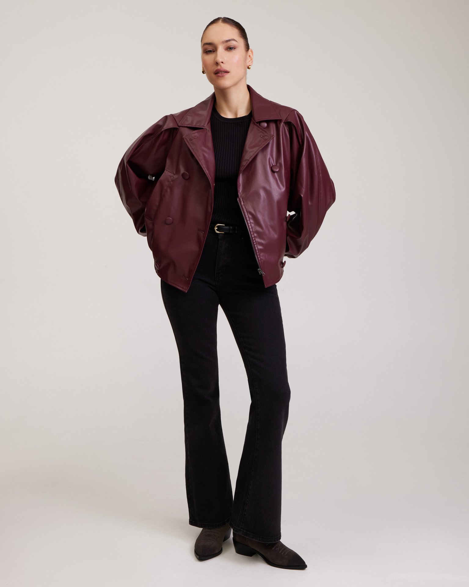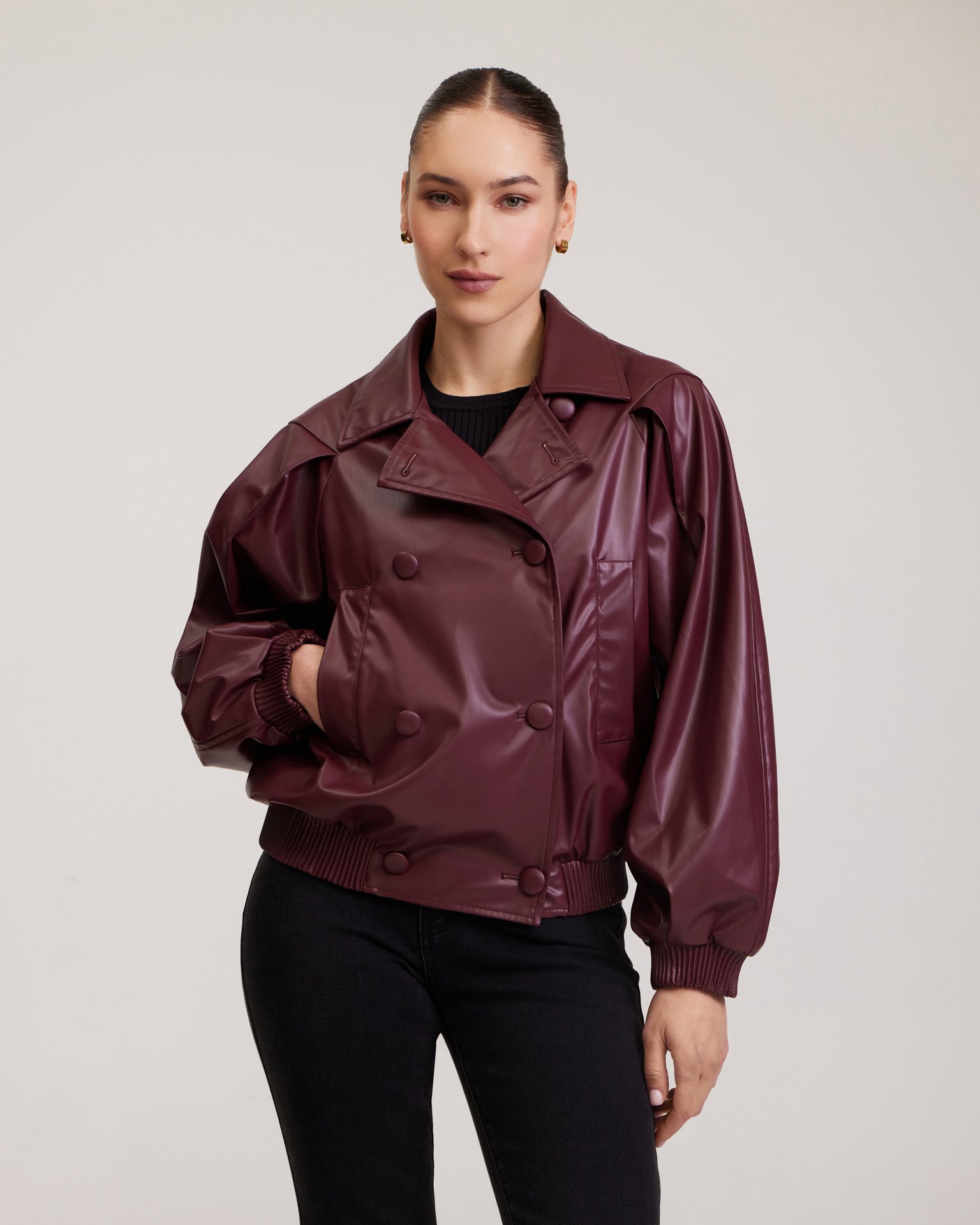 Свободный бомбер с объемными рукавами - всеми любимая культовая модель, которая не теряет своей актуальности уже несколько десятков лет. Мы выполнили двубортный бомбер из плотной эко-кожи, дополнили его резинкой по низу изделия, чтобы он лучше держал форму. Бомбер застегивается на молнию и пуговицы в тон.