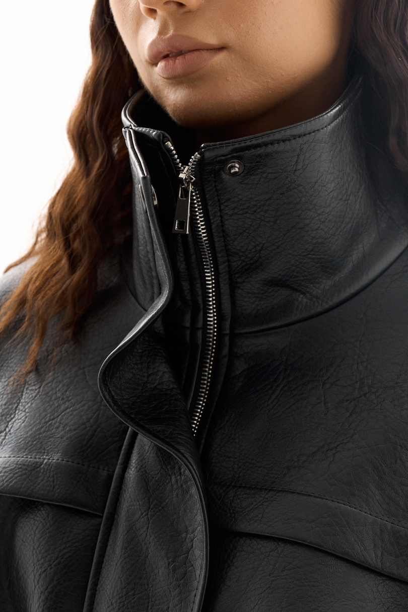 Парка из зернистой экокожи утепленная