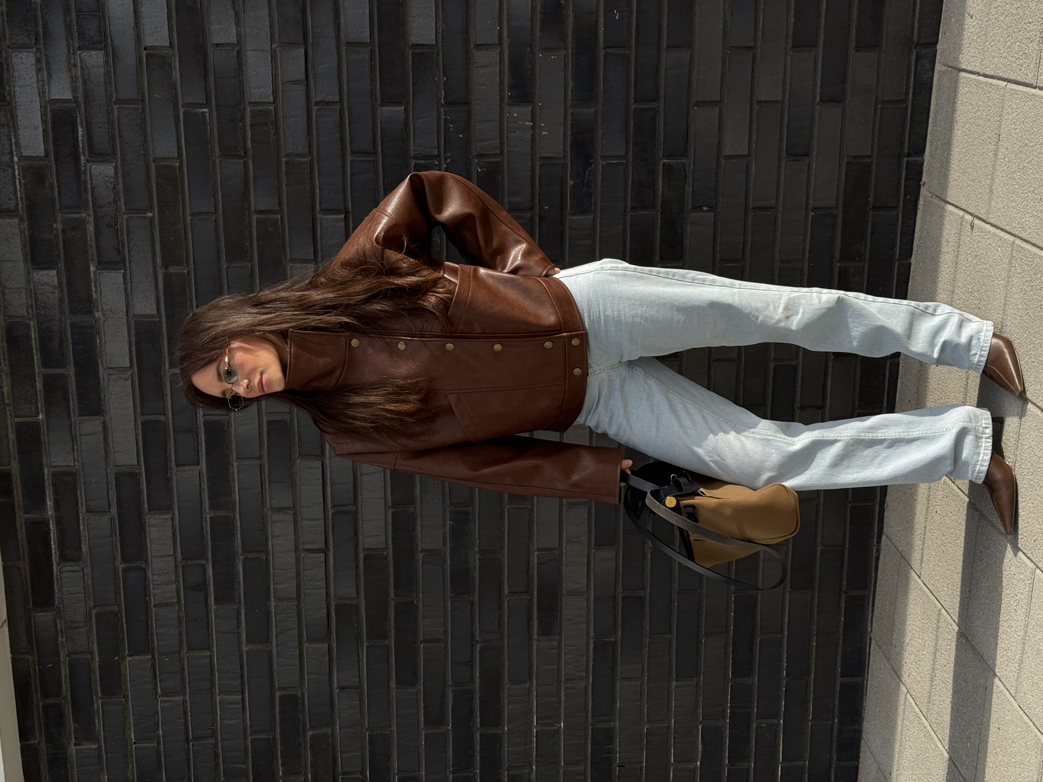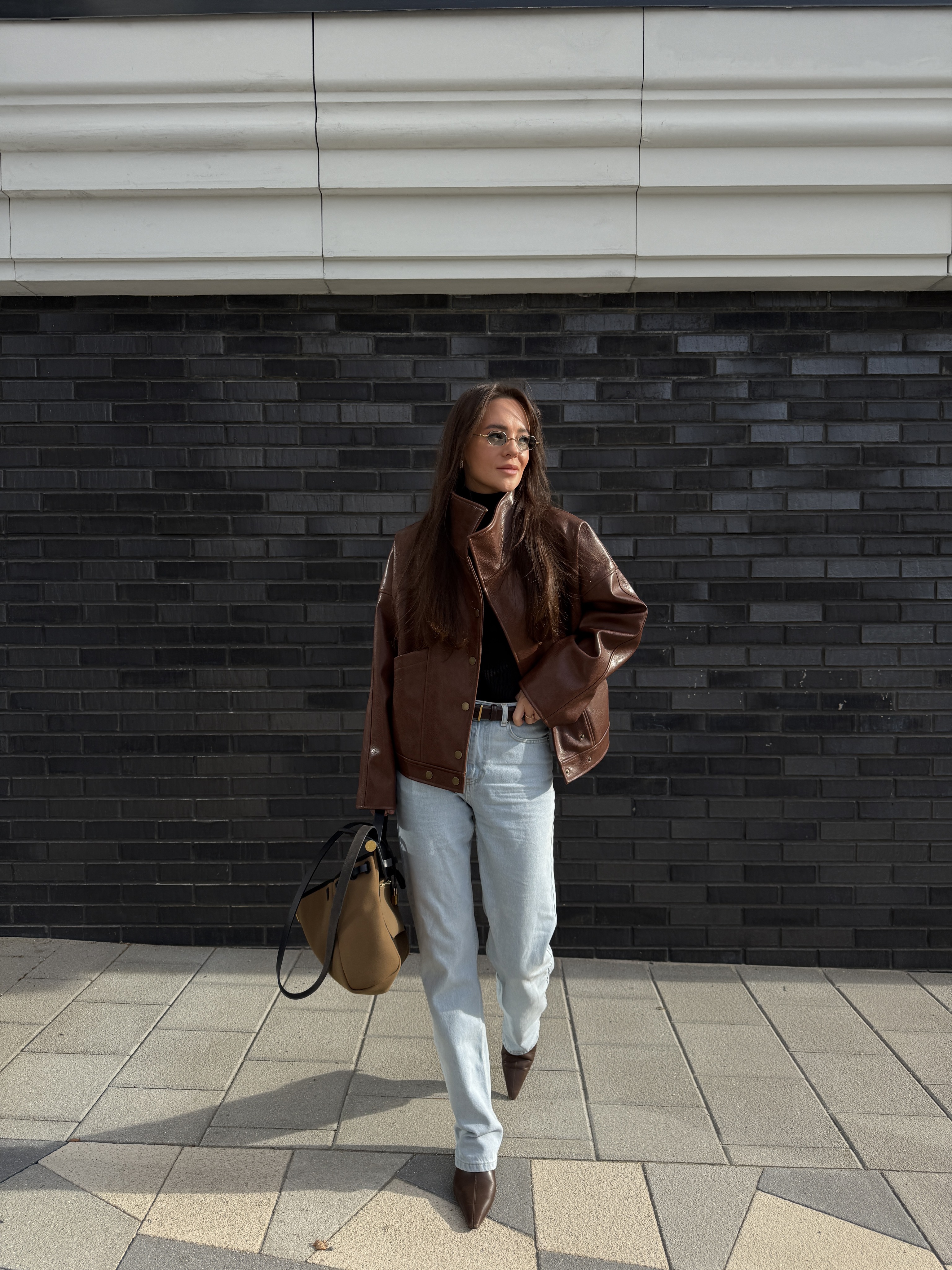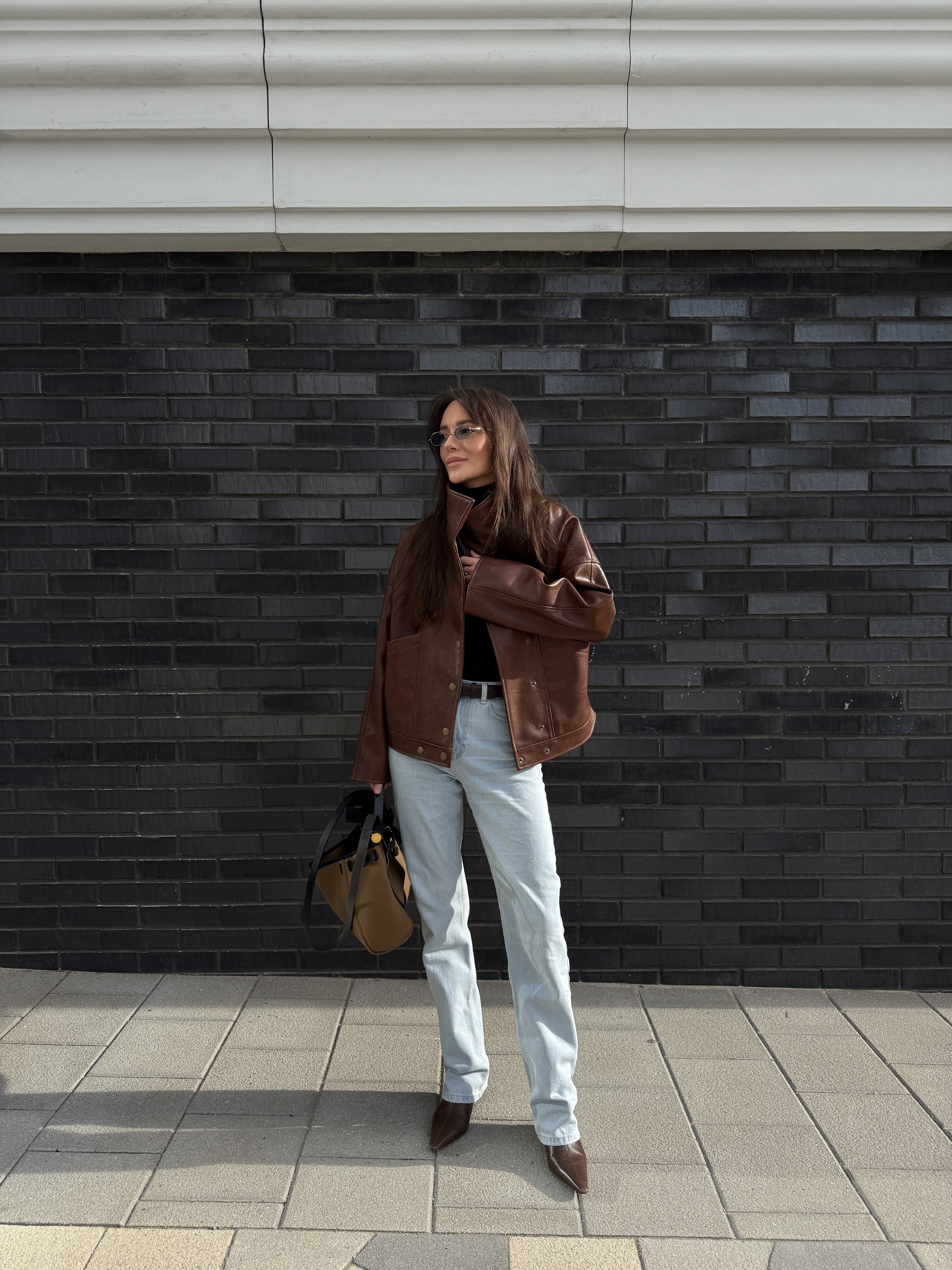 Бомбер из фактурной искусственной кожи в коричневом оттенке.