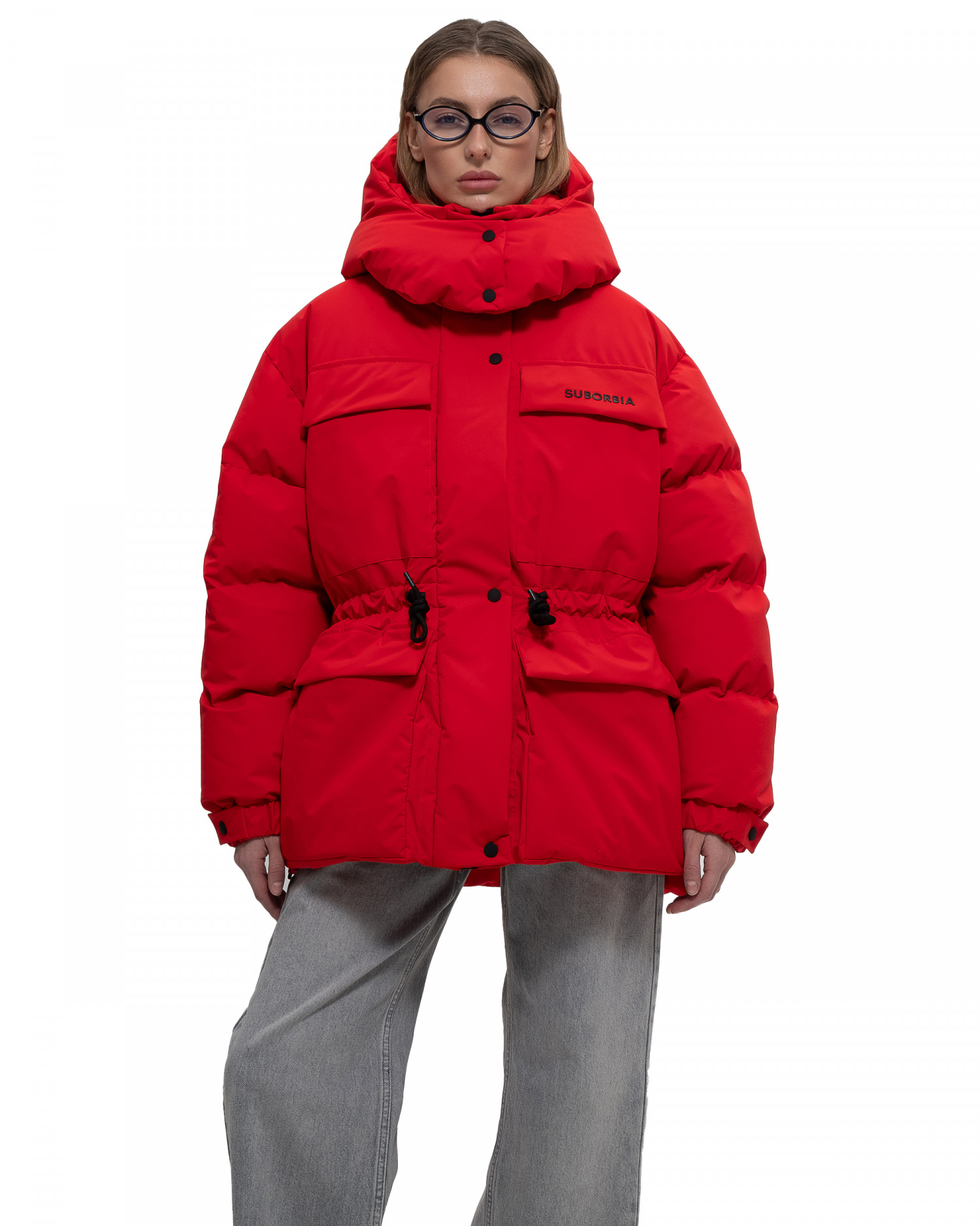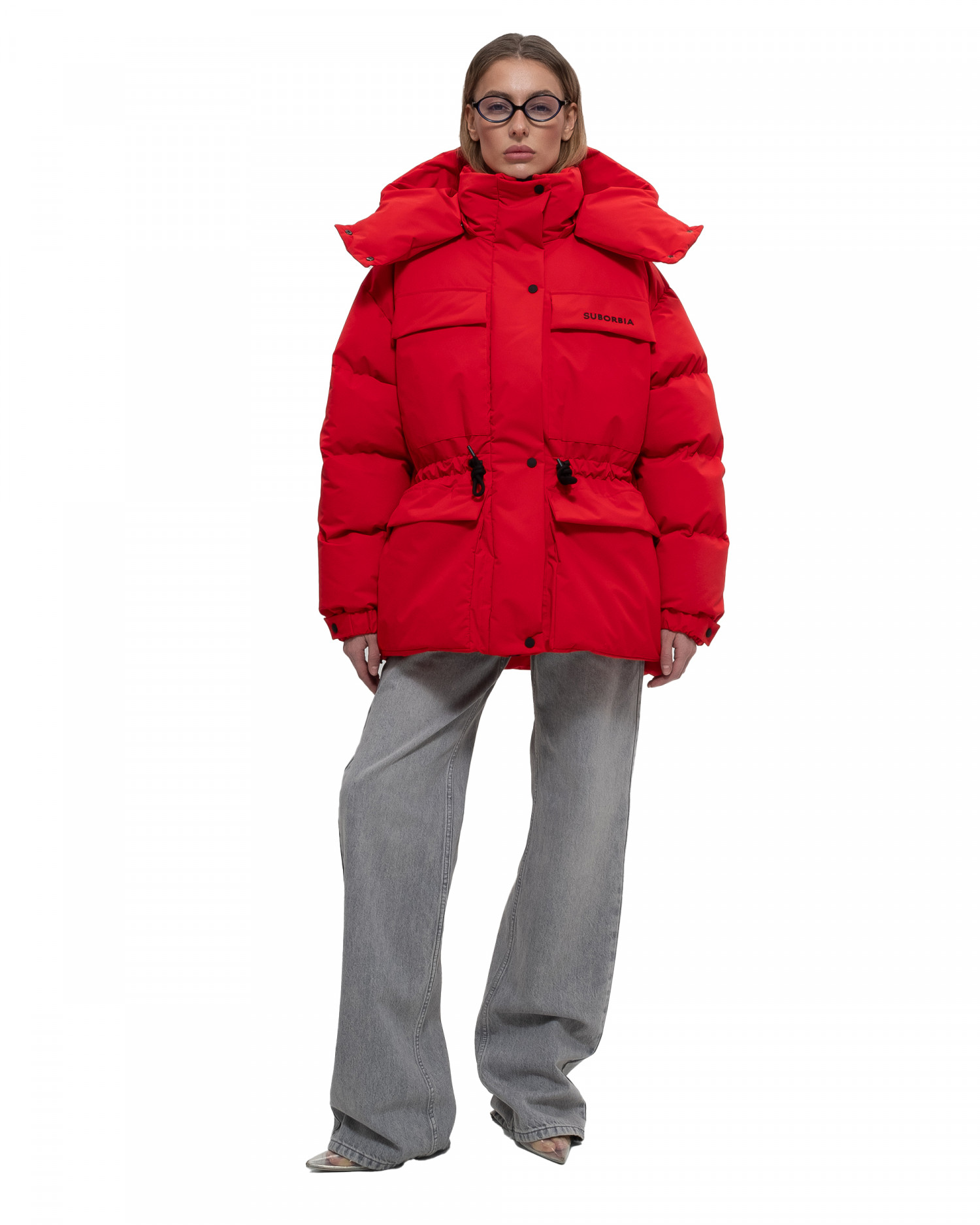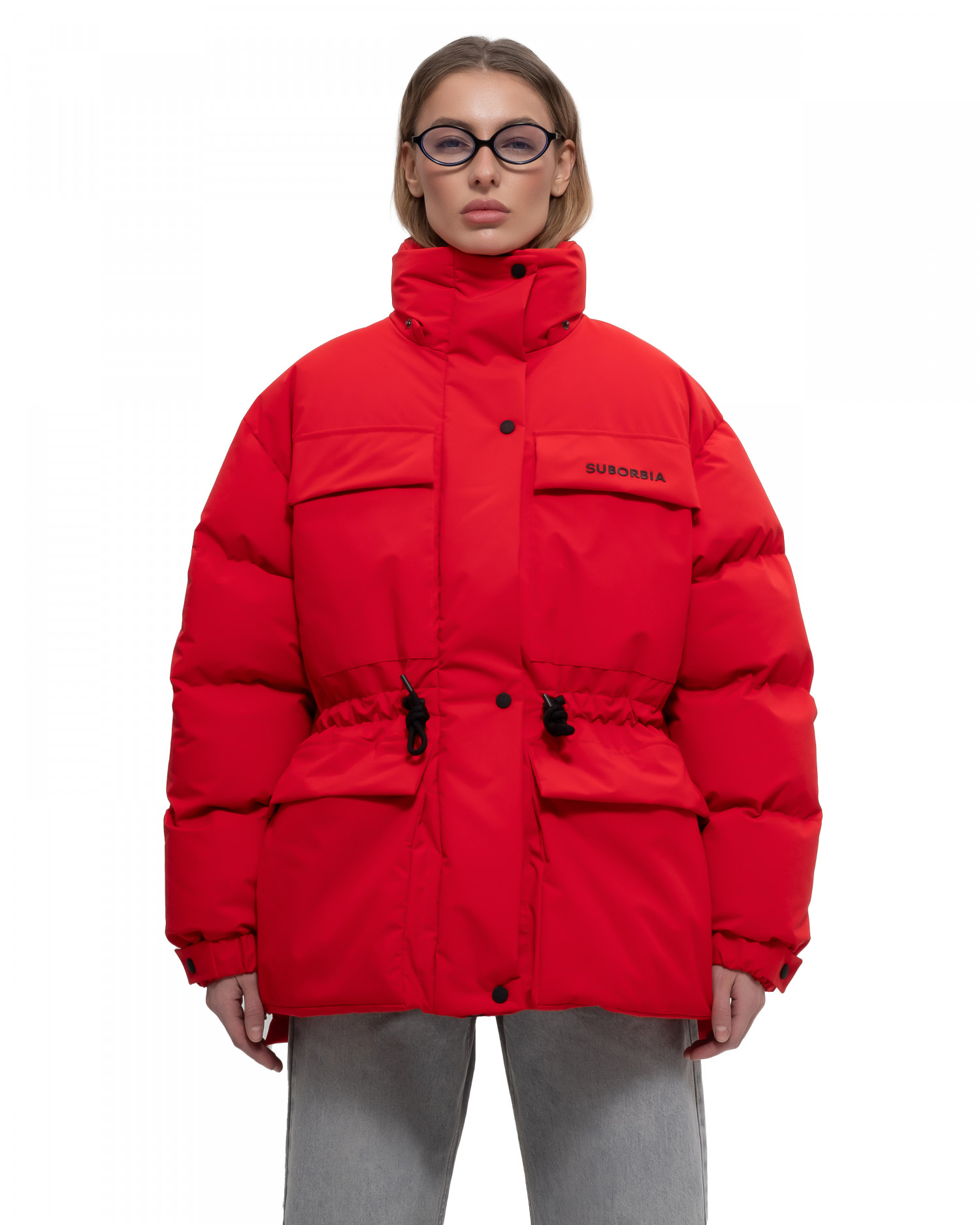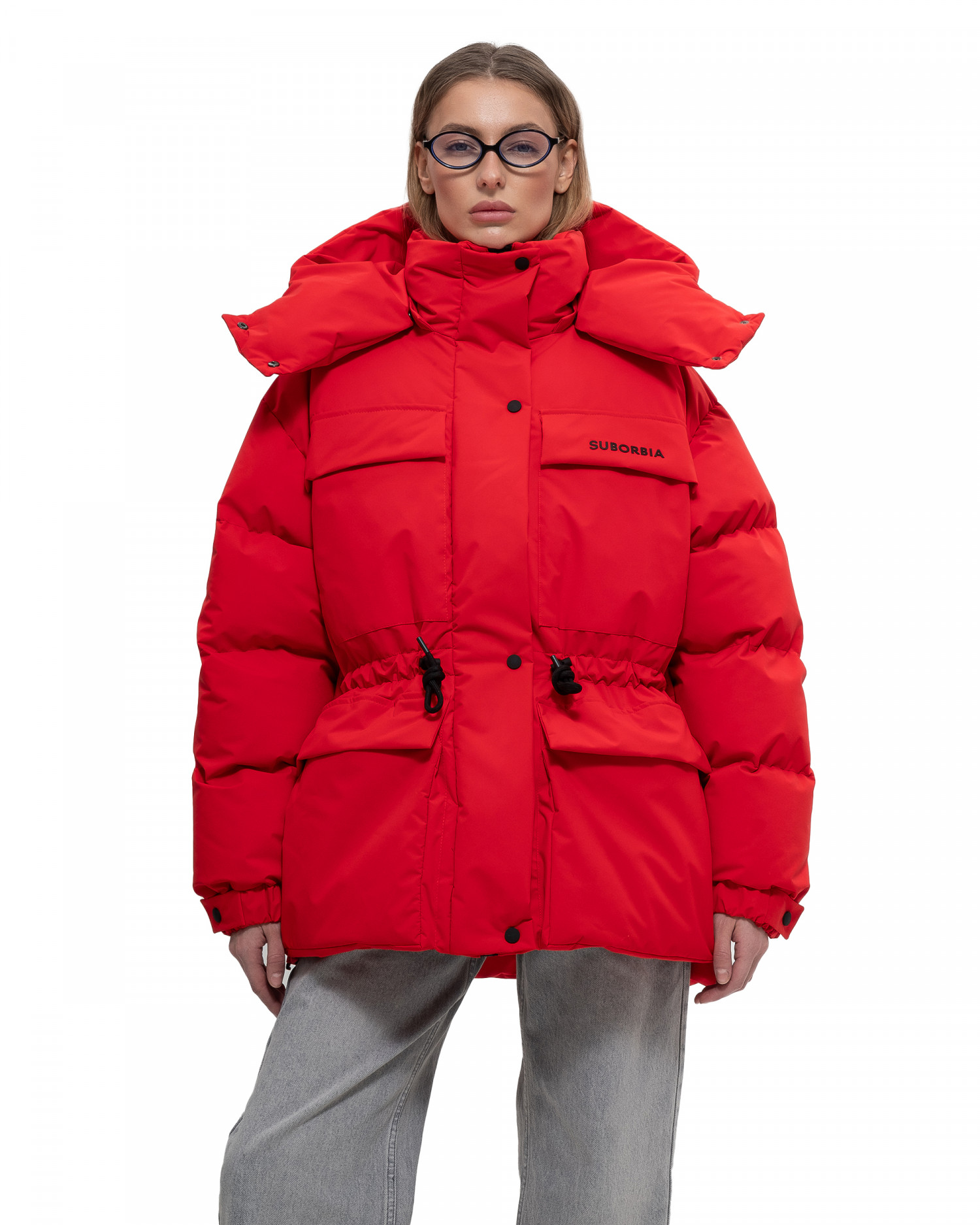 Пуховик оверсайз кроя с регулируемой кулиской на талии и капюшоном из высокотехнологичной мембраны.