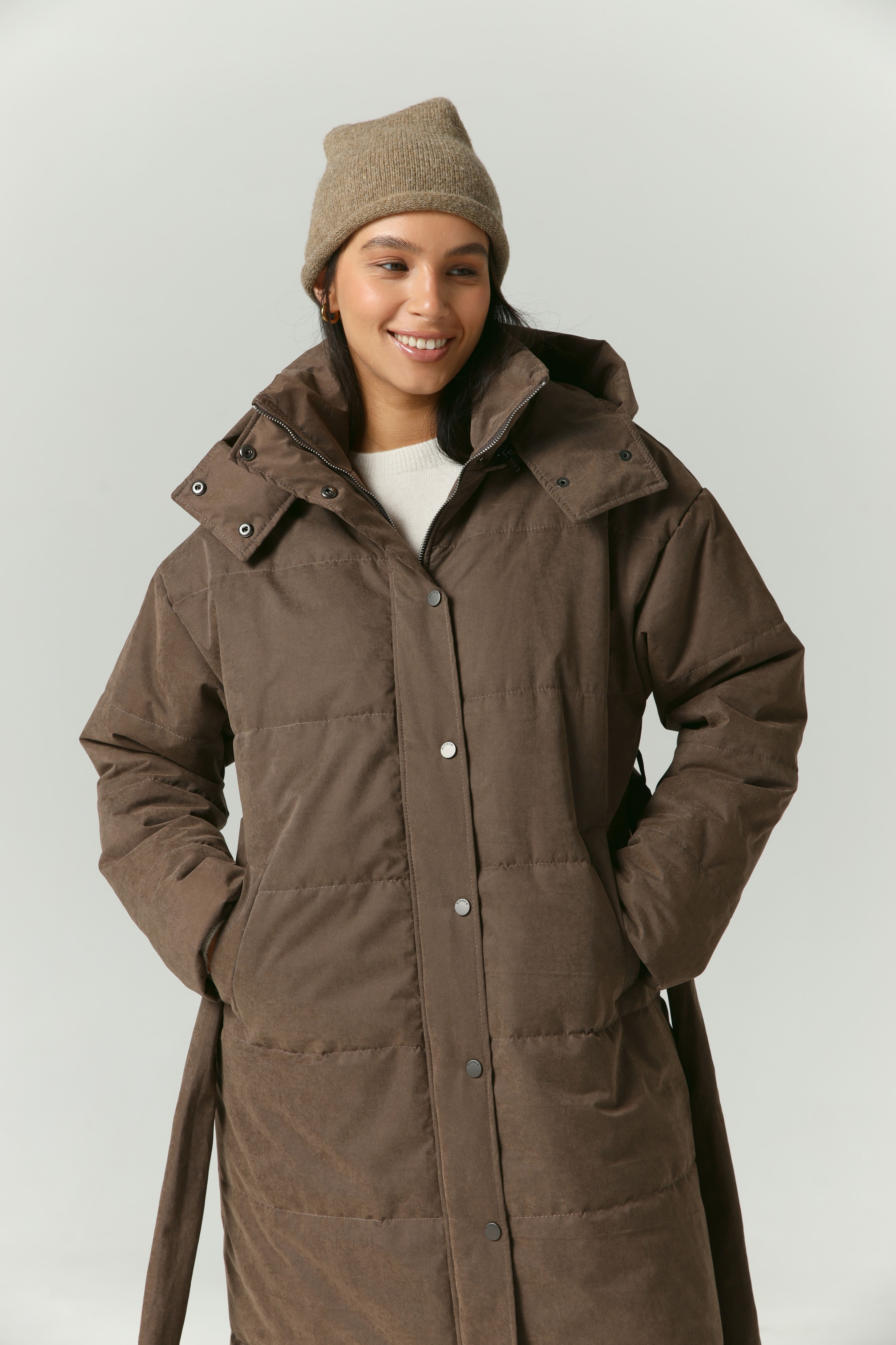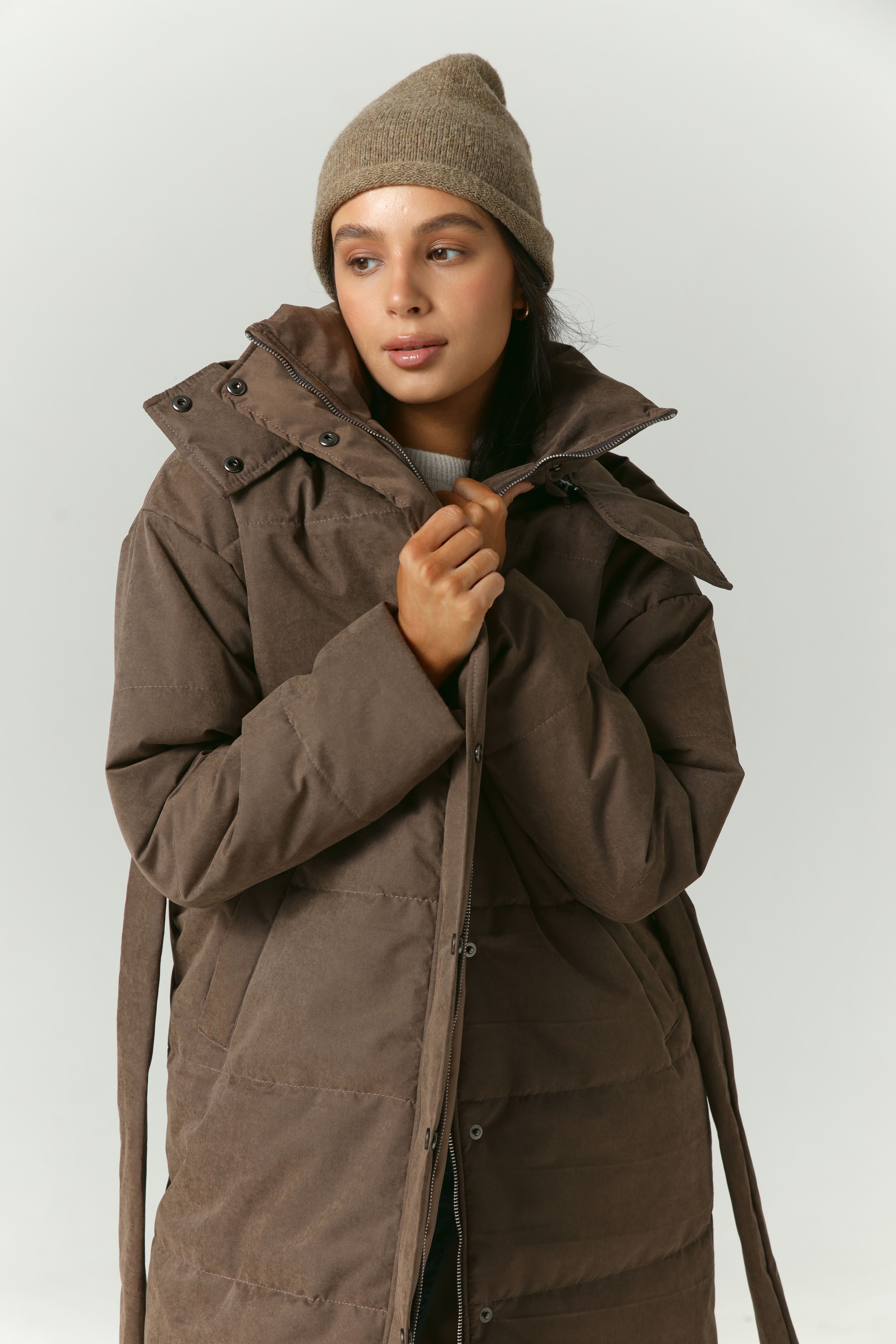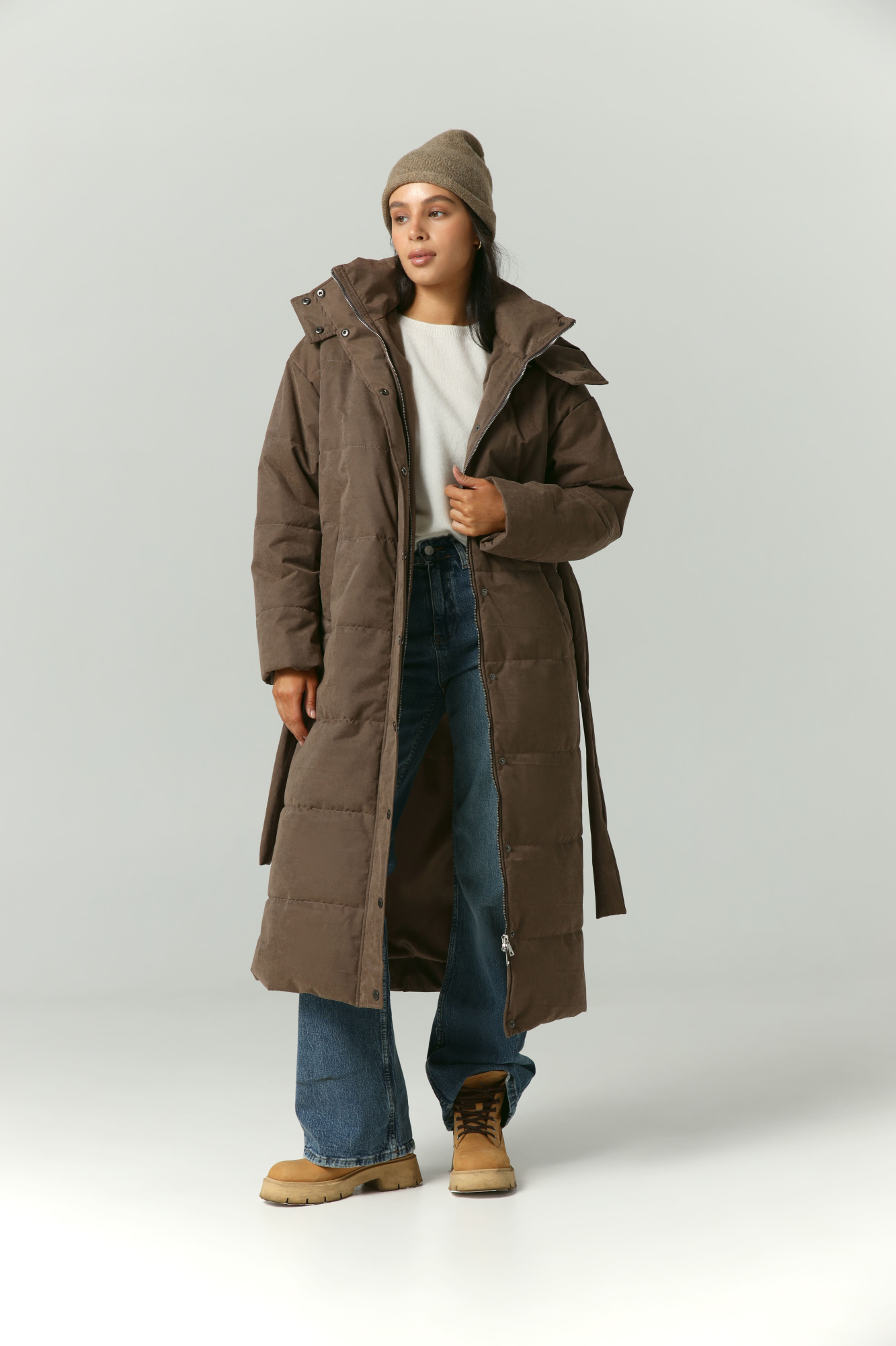 Пуховик удлиненный из мембраны с велюровым эффектом