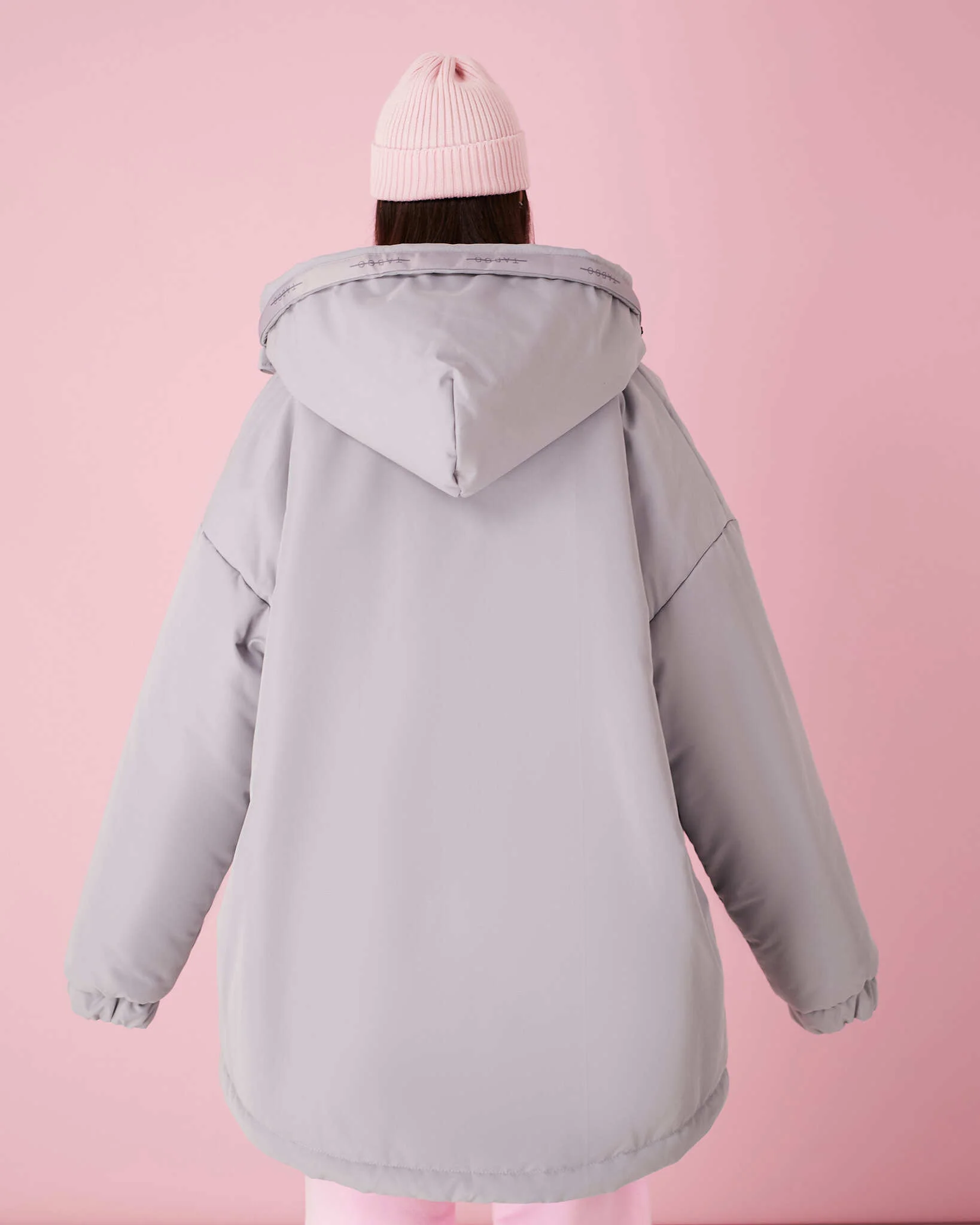 По низу изделия резинка, которая дает возможность стягивать низ или же, наоборот, носить его свободным.