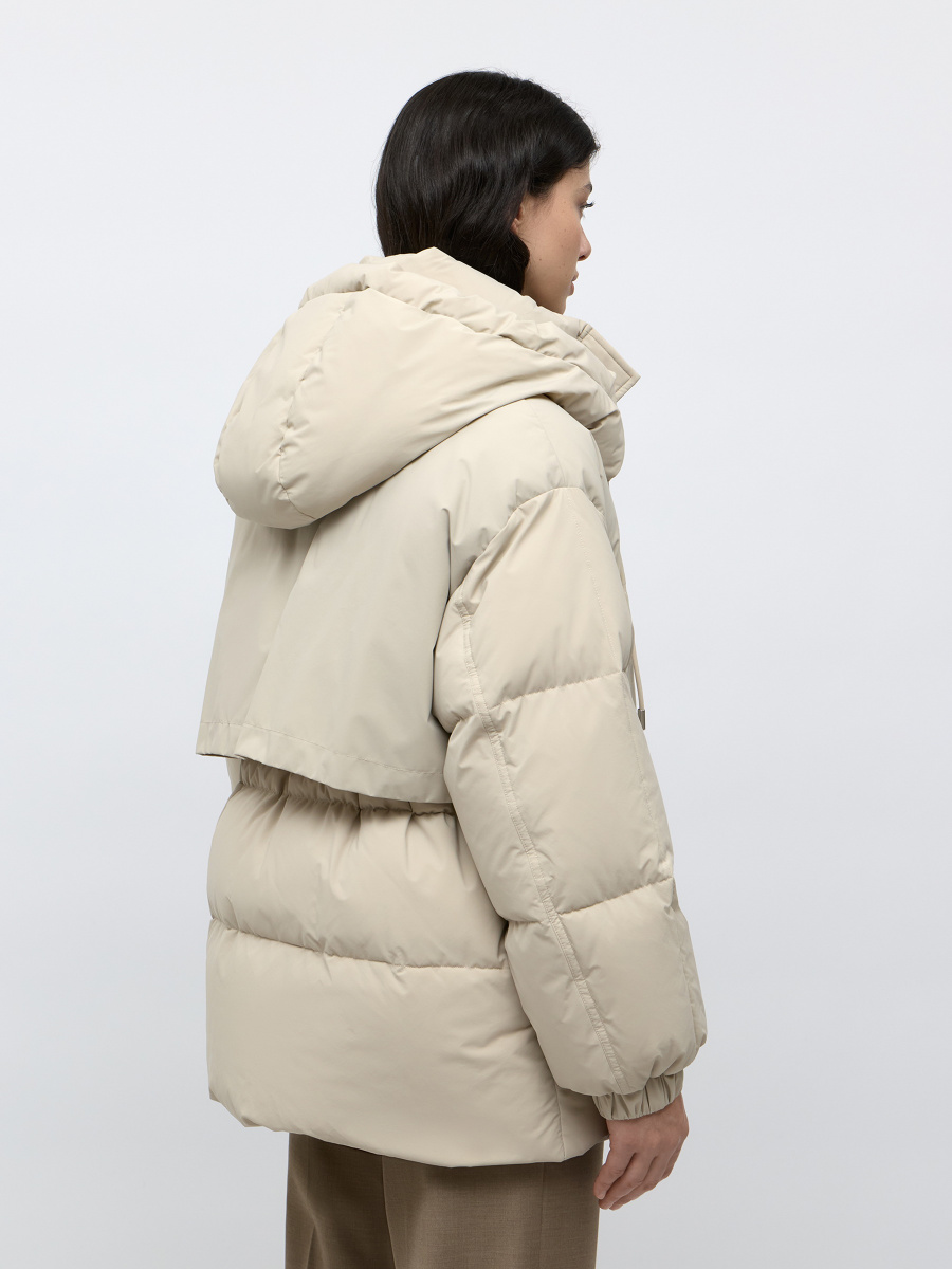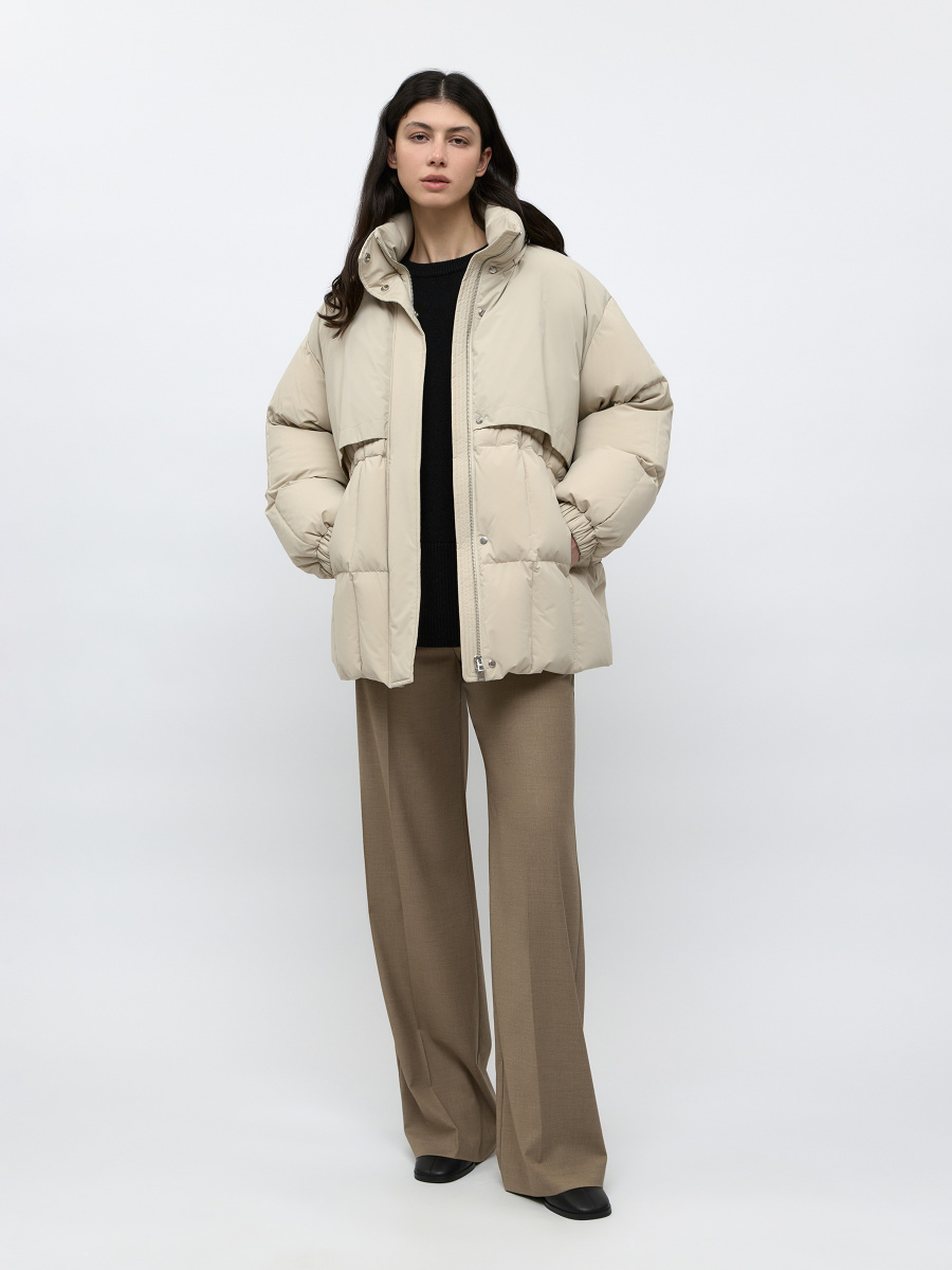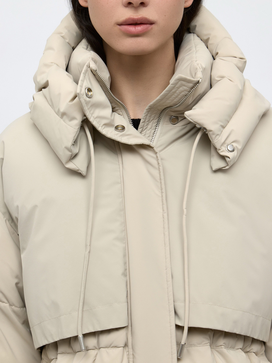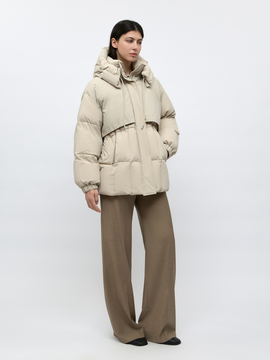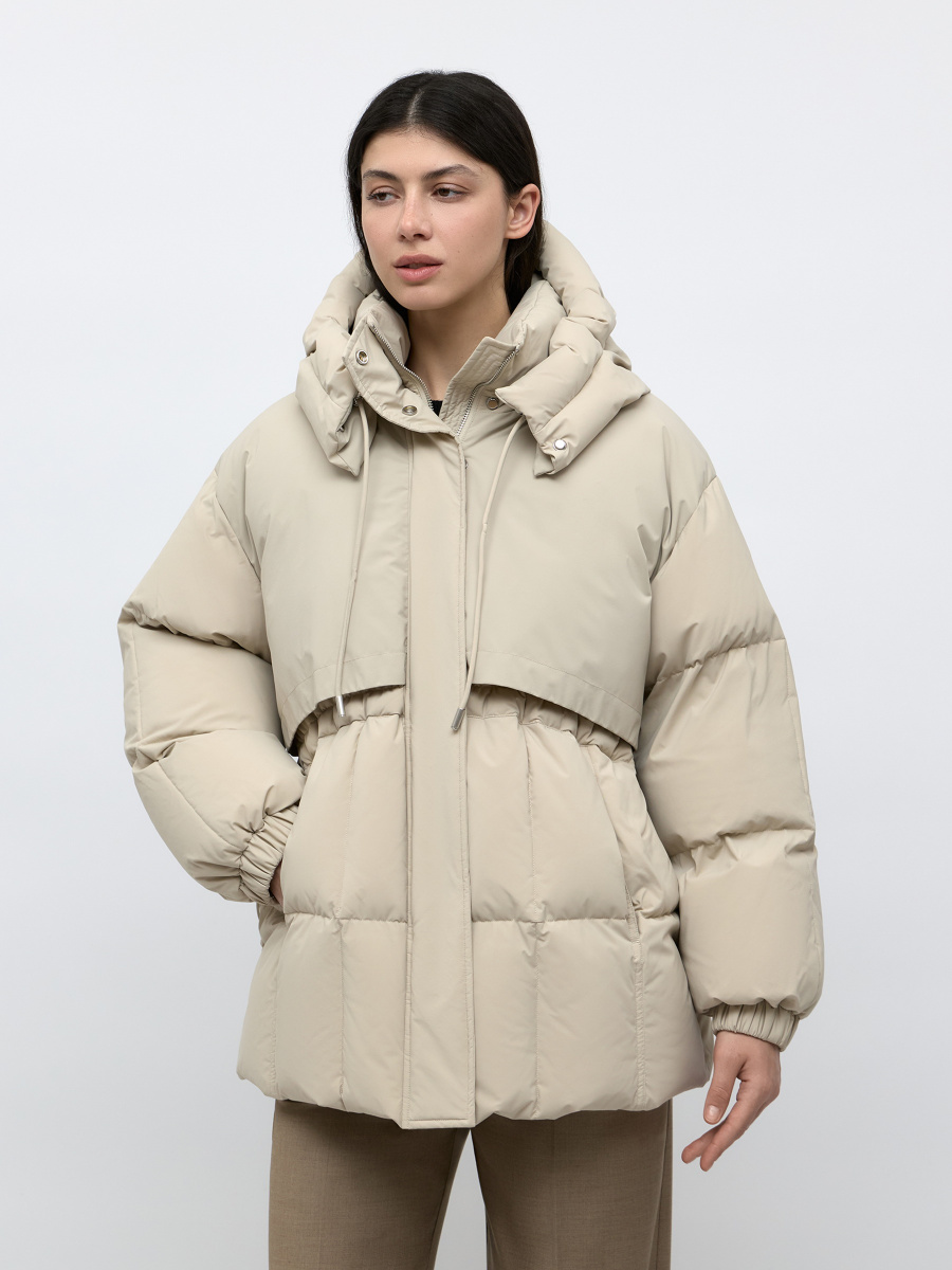 Утилитарная городская куртка в комбинированной архитектуре для холодного межсезонья и зимы. Объемная стежка предотвращает миграцию наполнителя, кокетки на спинке и в передней части создают воздушный карман, который дополнительно удерживает тепло. Другие детали: внутренняя кулиса для регулировки объема, собранные резинкой манжеты, съемный утепленный капюшон, двойная застежка на молнию и кнопки.