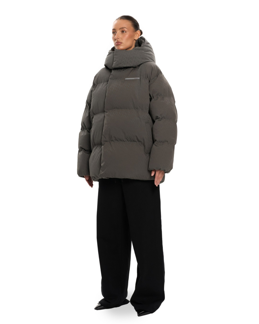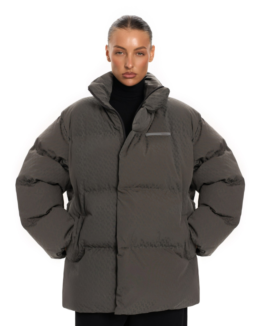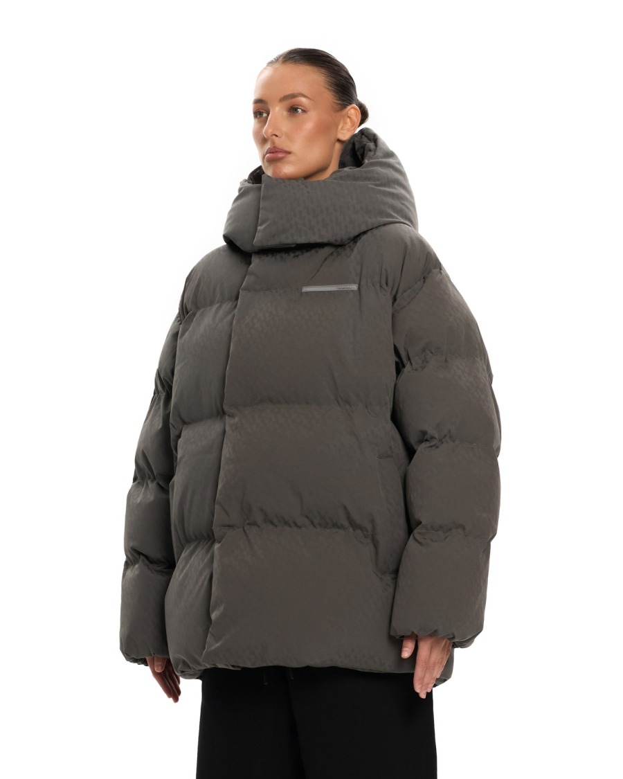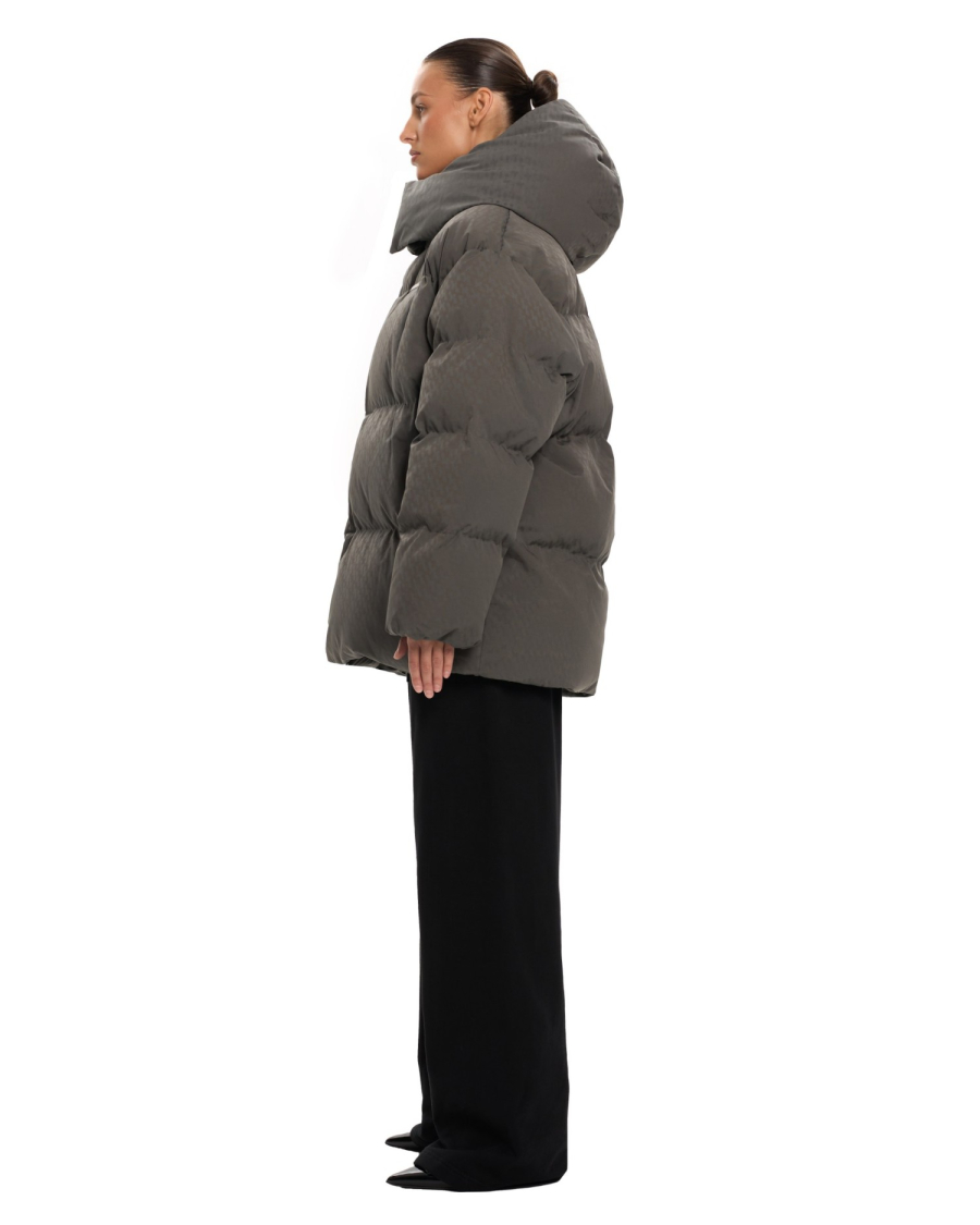 Пуховик оверсайз кроя из водооталкивающей мембраны с проявляющимся принтом при температуре ниже 0°C