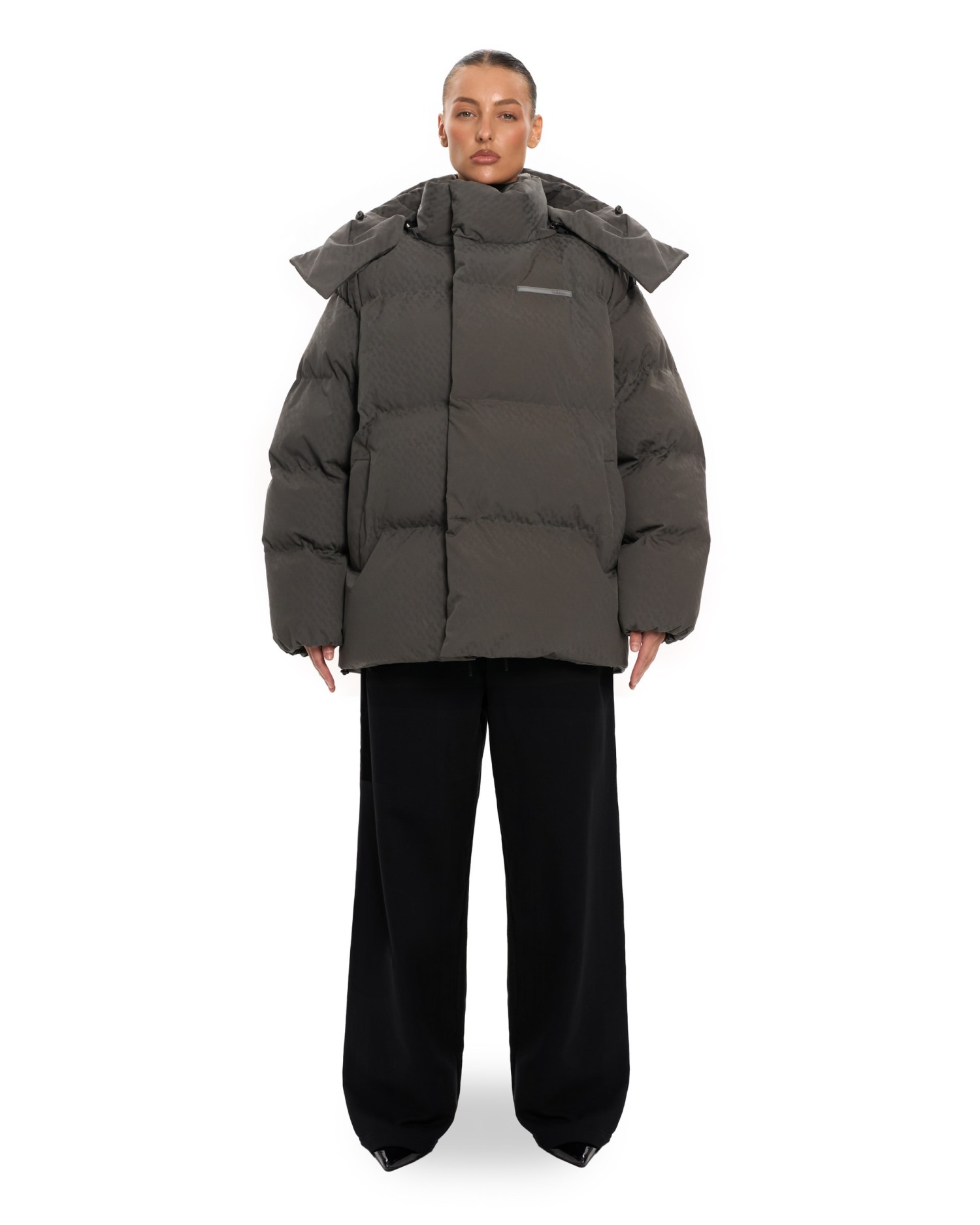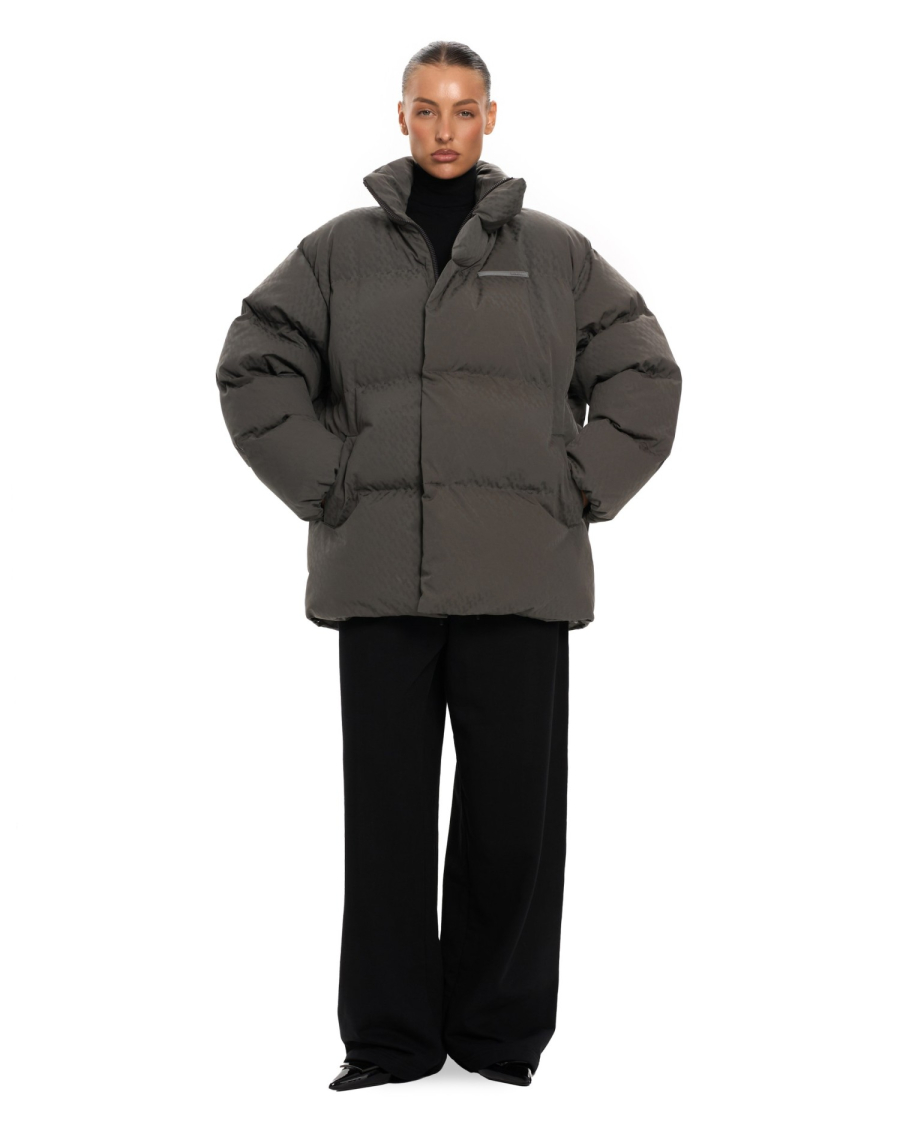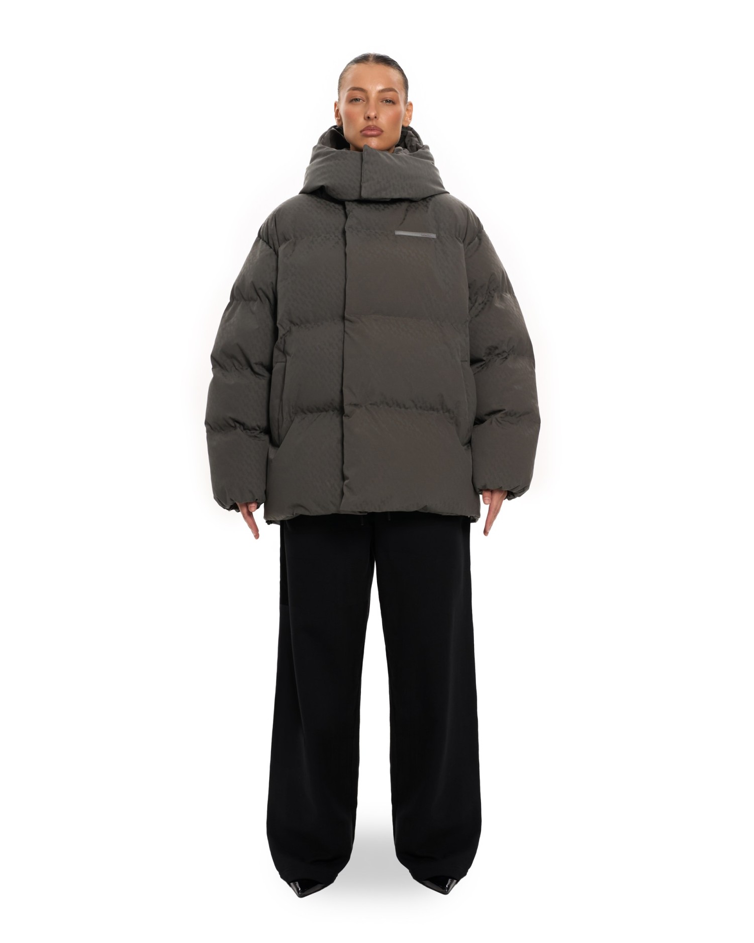 Пуховик оверсайз кроя из водооталкивающей мембраны с проявляющимся принтом при температуре ниже 0°C