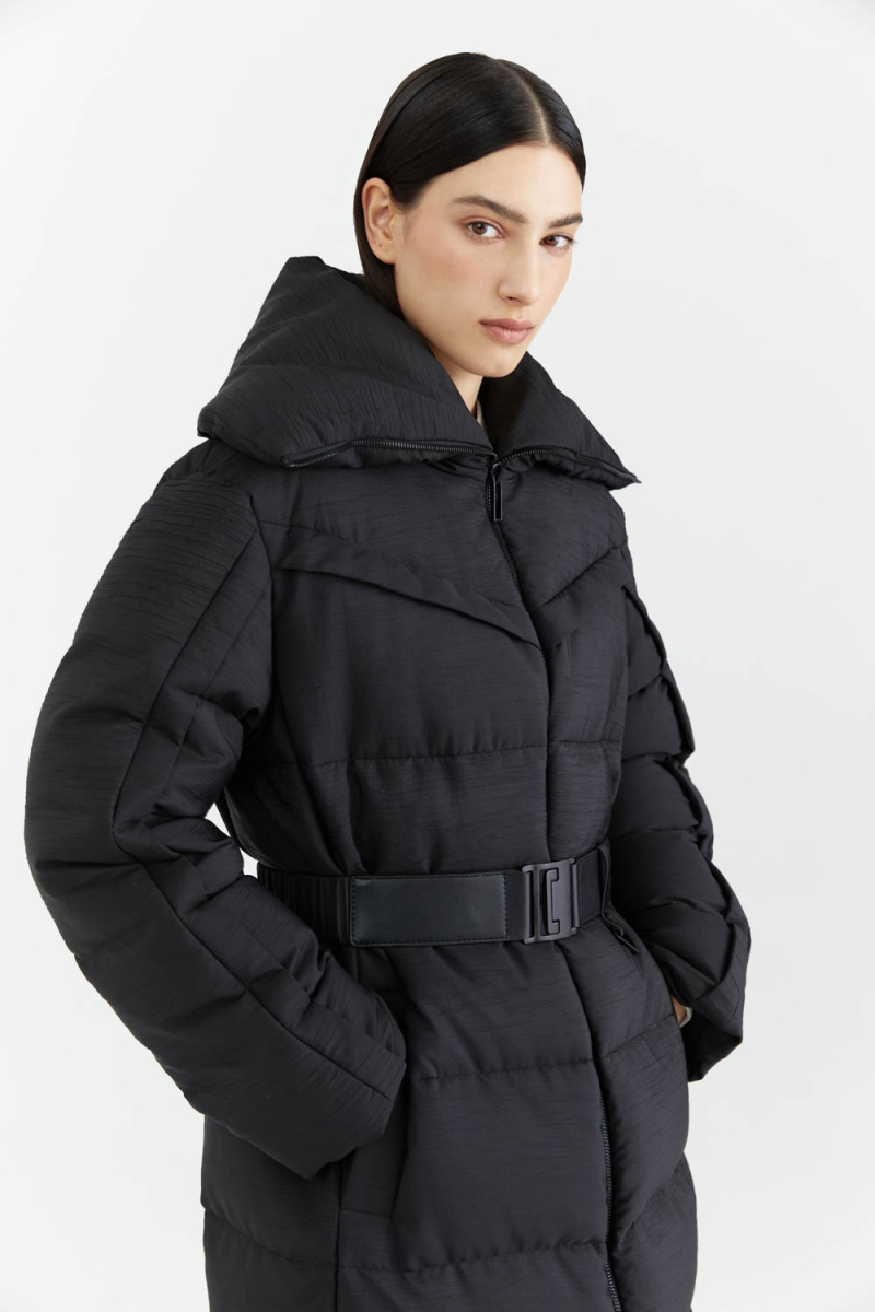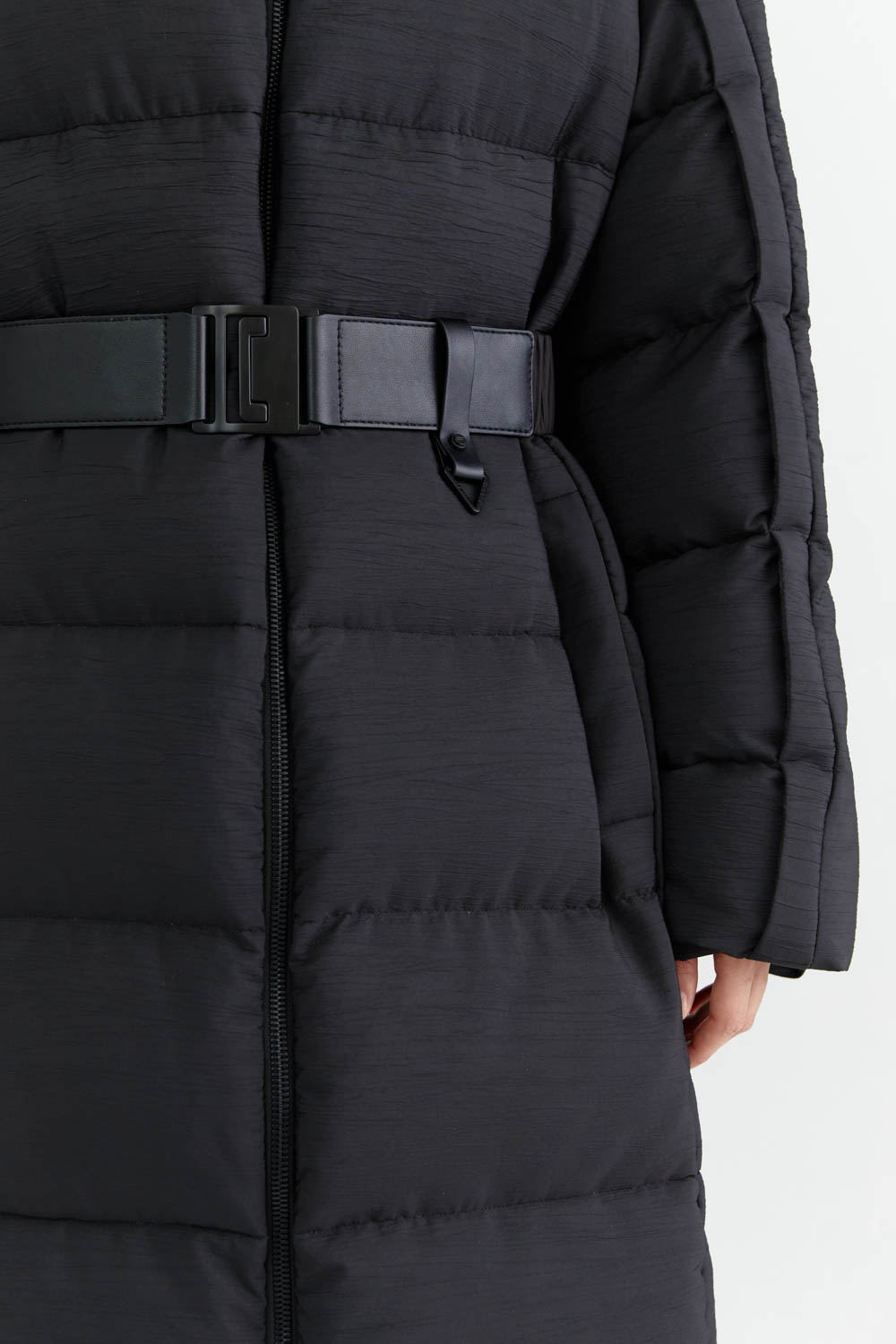 Стильное и тёплое стеганое пальто длиной ниже колена станет отличным дополнением к вашему гардеробу. Модель с поясом подчёркивает фигуру и создаёт элегантный образ. Идеально подходит для прохладной погоды.