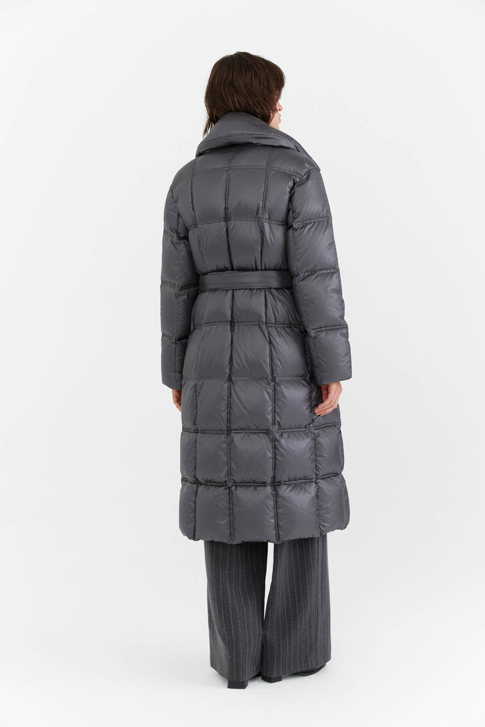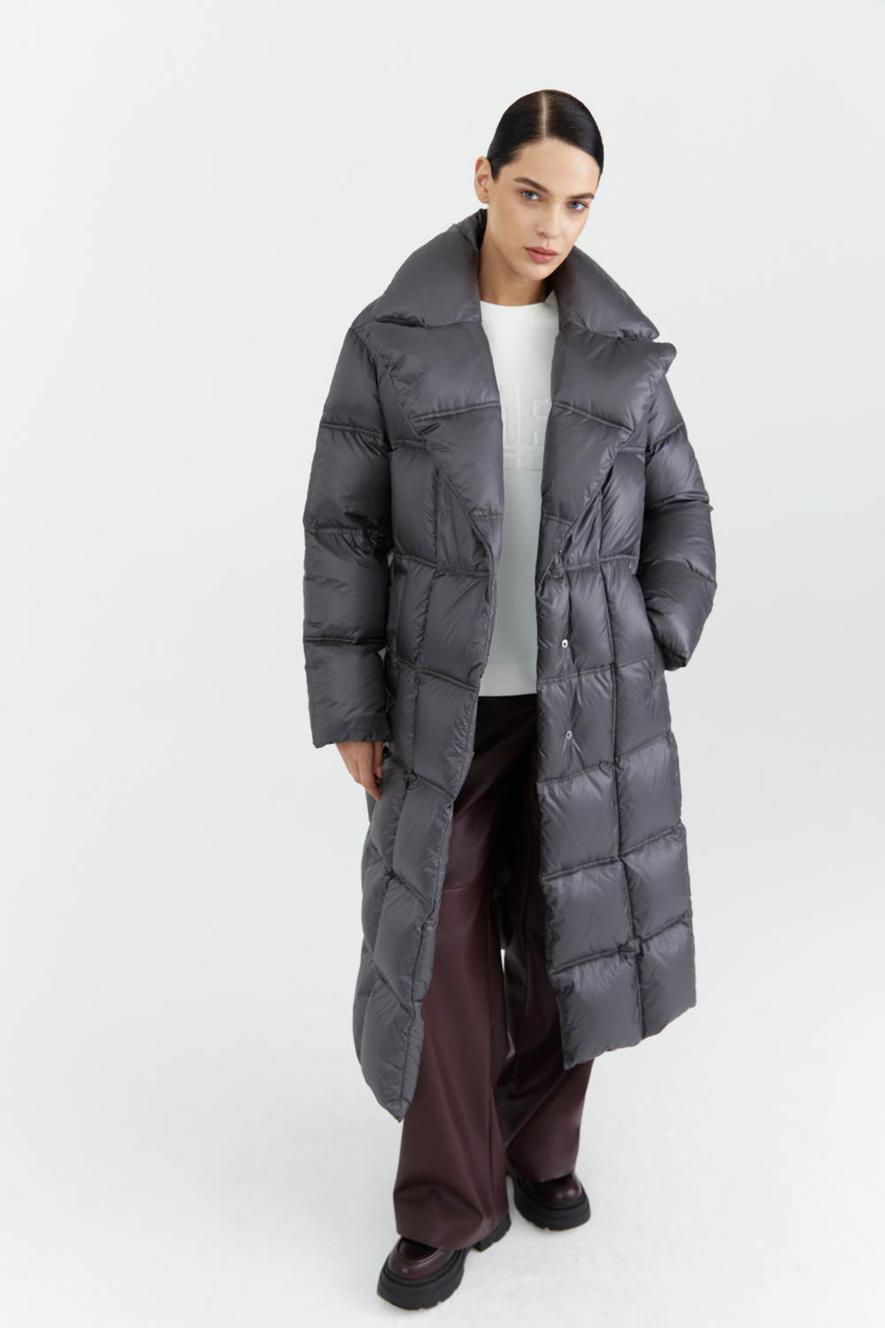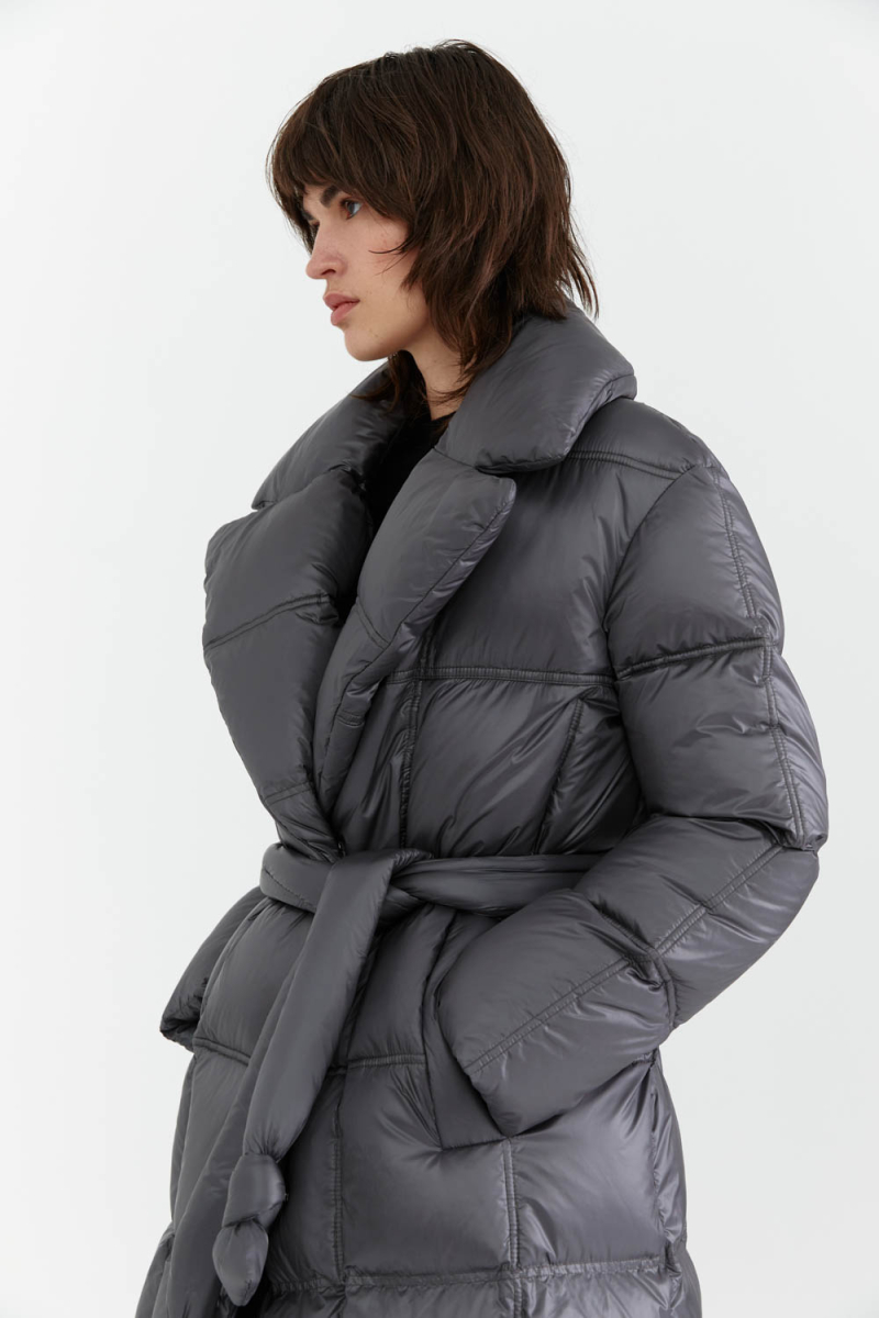Стильное и тёплое длинное стеганое пальто с отложным воротником и поясом — идеальный выбор для холодного времени года. Практичная модель обеспечит комфорт и защиту от непогоды. Отличный вариант для создания элегантного образа.