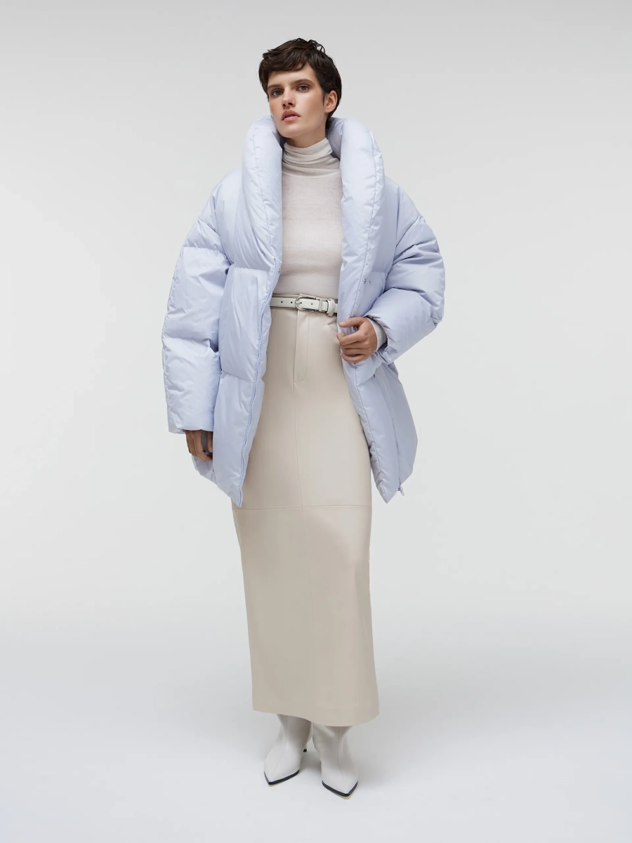 Пуховик Iceland. Оригинальная модель пуховика на случай холодной погоды. Воротник-шаль защищает от холодного ветра и словно окружает вас теплом, а за счет спущенного плеча под пуховик можно надевать жакеты и oversize джемпера. Натуральный утеплитель пух/перо обладает важным для зимнего сезона свойством удерживать тепло. Рукав на широкой резинке обеспечивает комфортную посадку и защиту от холода. Также предусмотрен внутренний карман для хранения мелочей. Изготовленный из высококачественных материалов пуховик обеспечивает тепло и комфорт, а также обладает хорошей воздухопроницаемостью. Его легко адаптировать под различные стили одежды. Пуховик Iceland производится с учетом экологических стандартов, что подтверждает использование безопасных для здоровья материалов и заботу о природе.