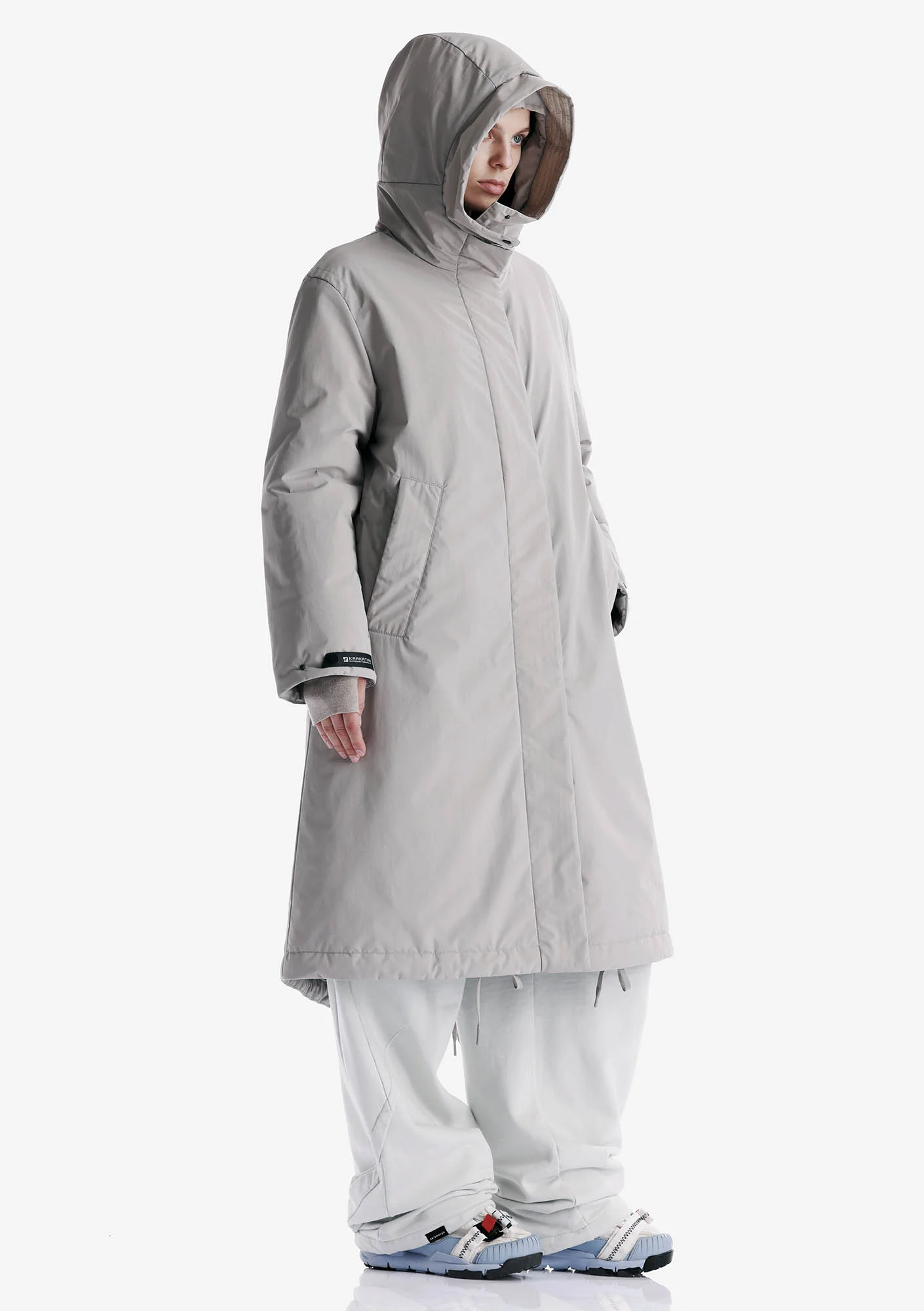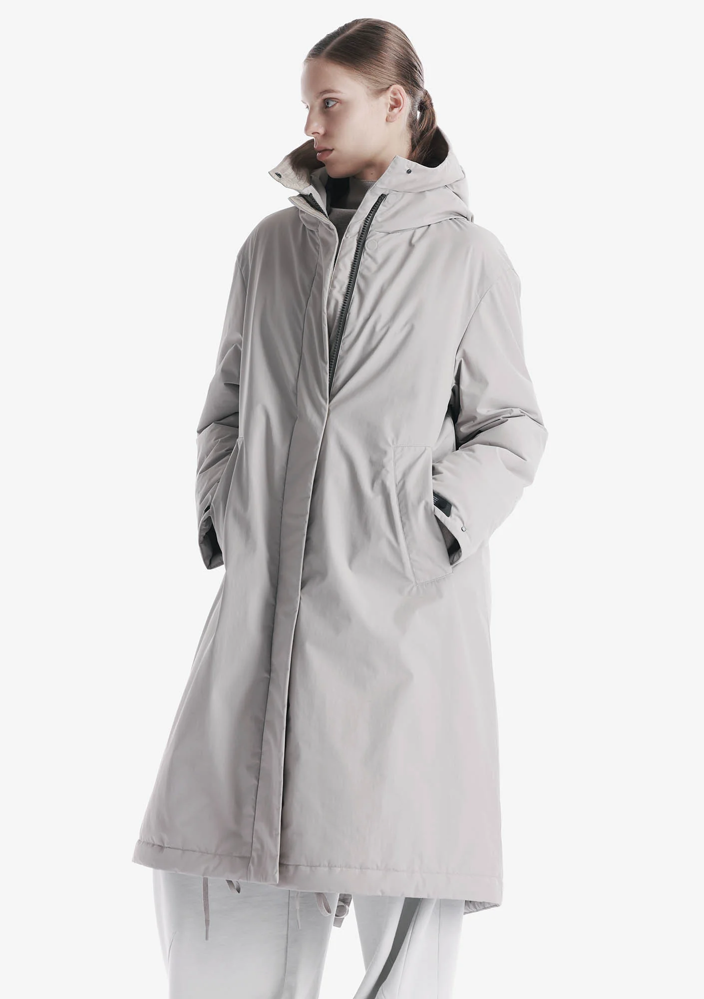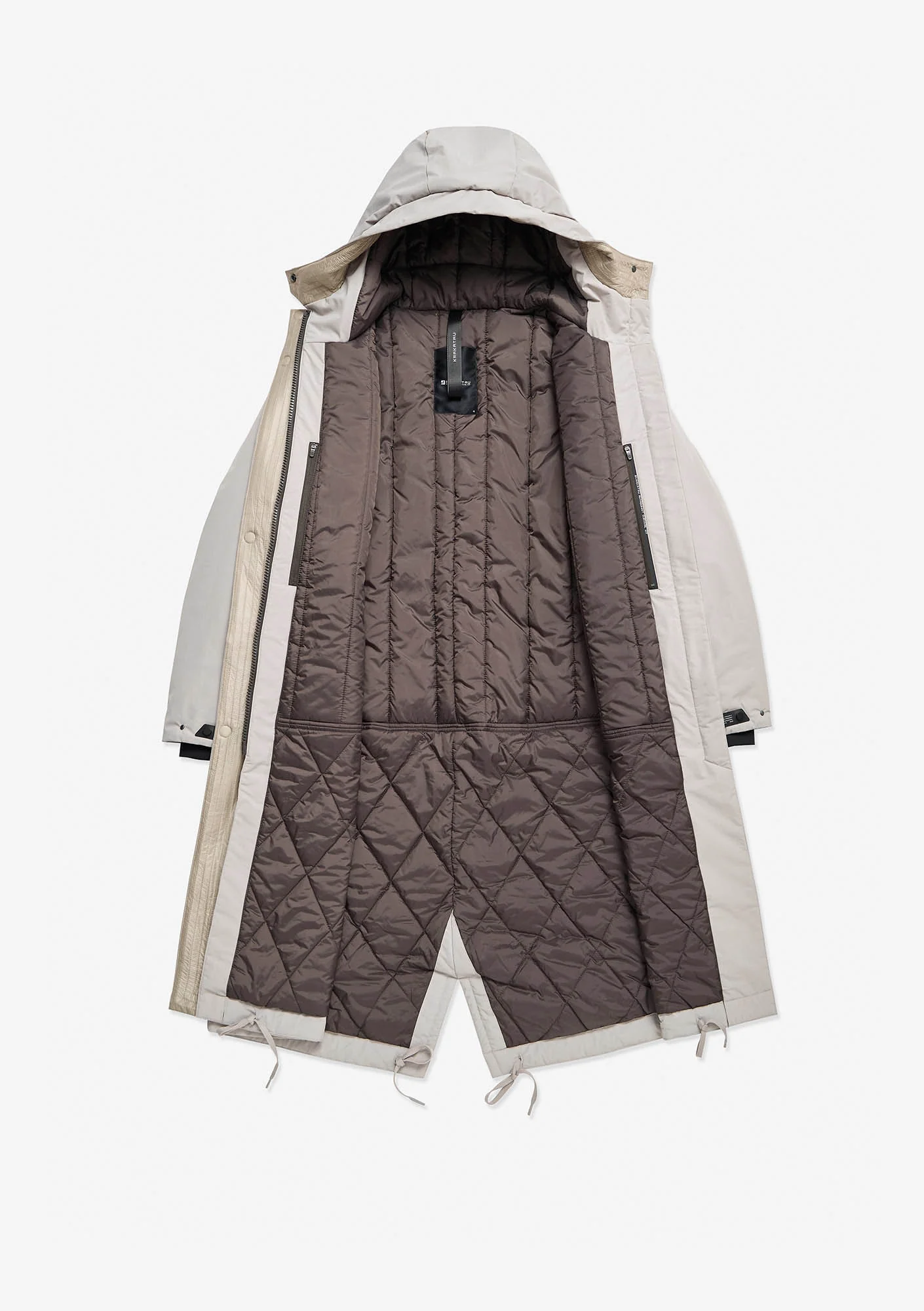 Длинная парка SCHORL построена на принципе распределения нагрузки: тёплый верх, лёгкий низ, дышащая мембрана. Зонированое утепление создаёт баланс тепла и свободы движений. Верхняя часть усиливает защиту в ключевых зонах, нижняя — остаётся лёгкой. Капюшон, затяжки и манжеты регулируются — посадка адаптируется к телу и погоде.