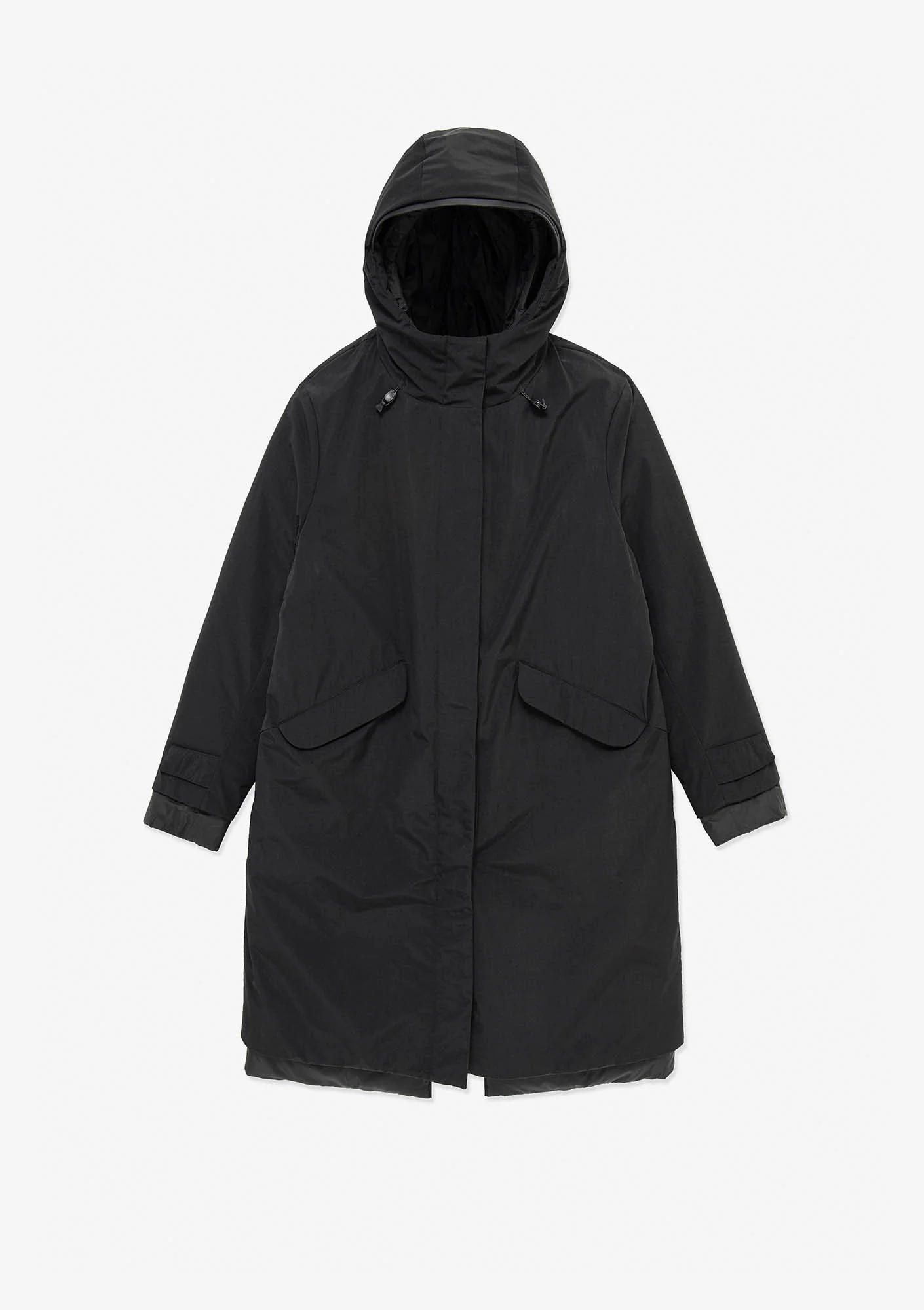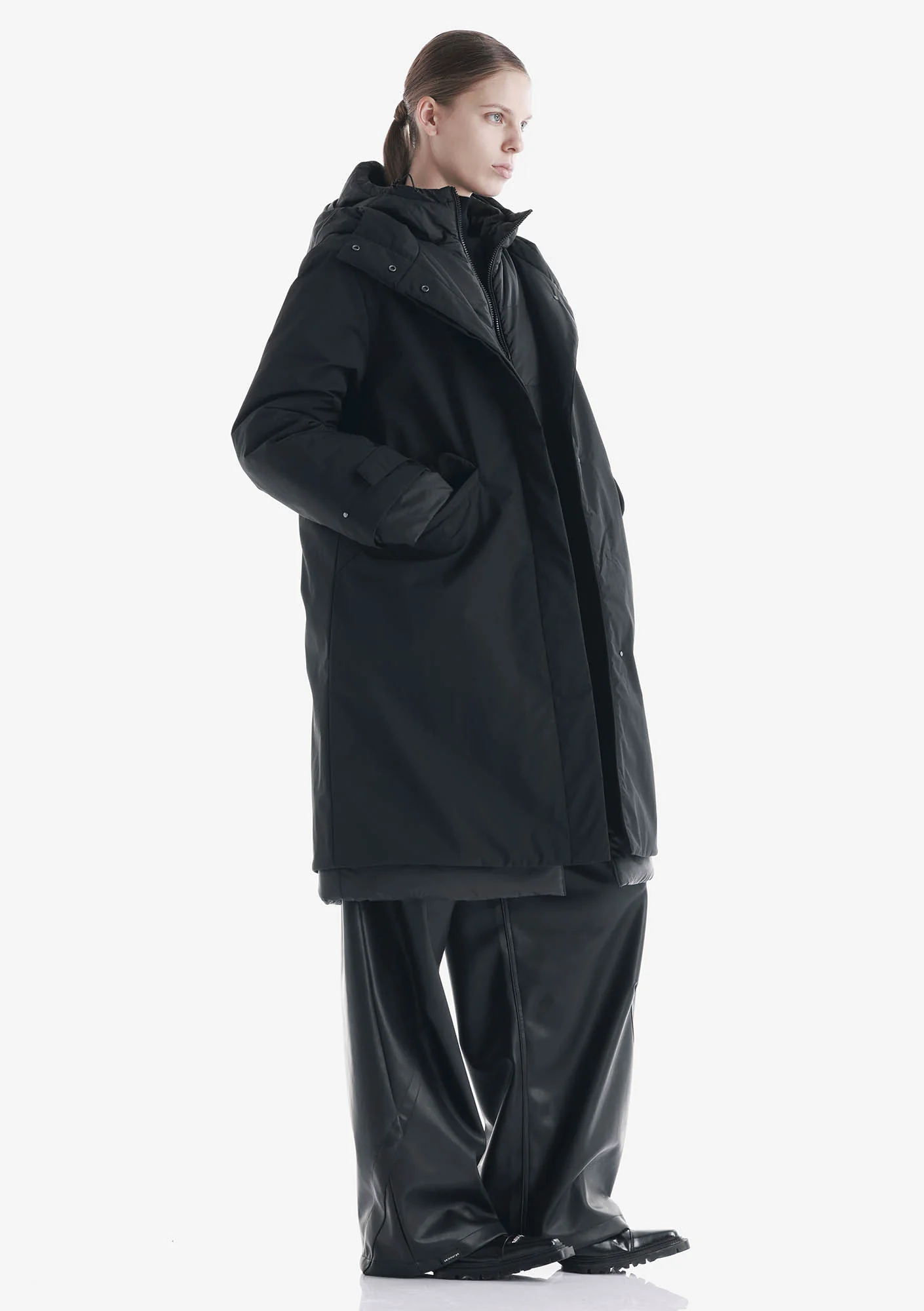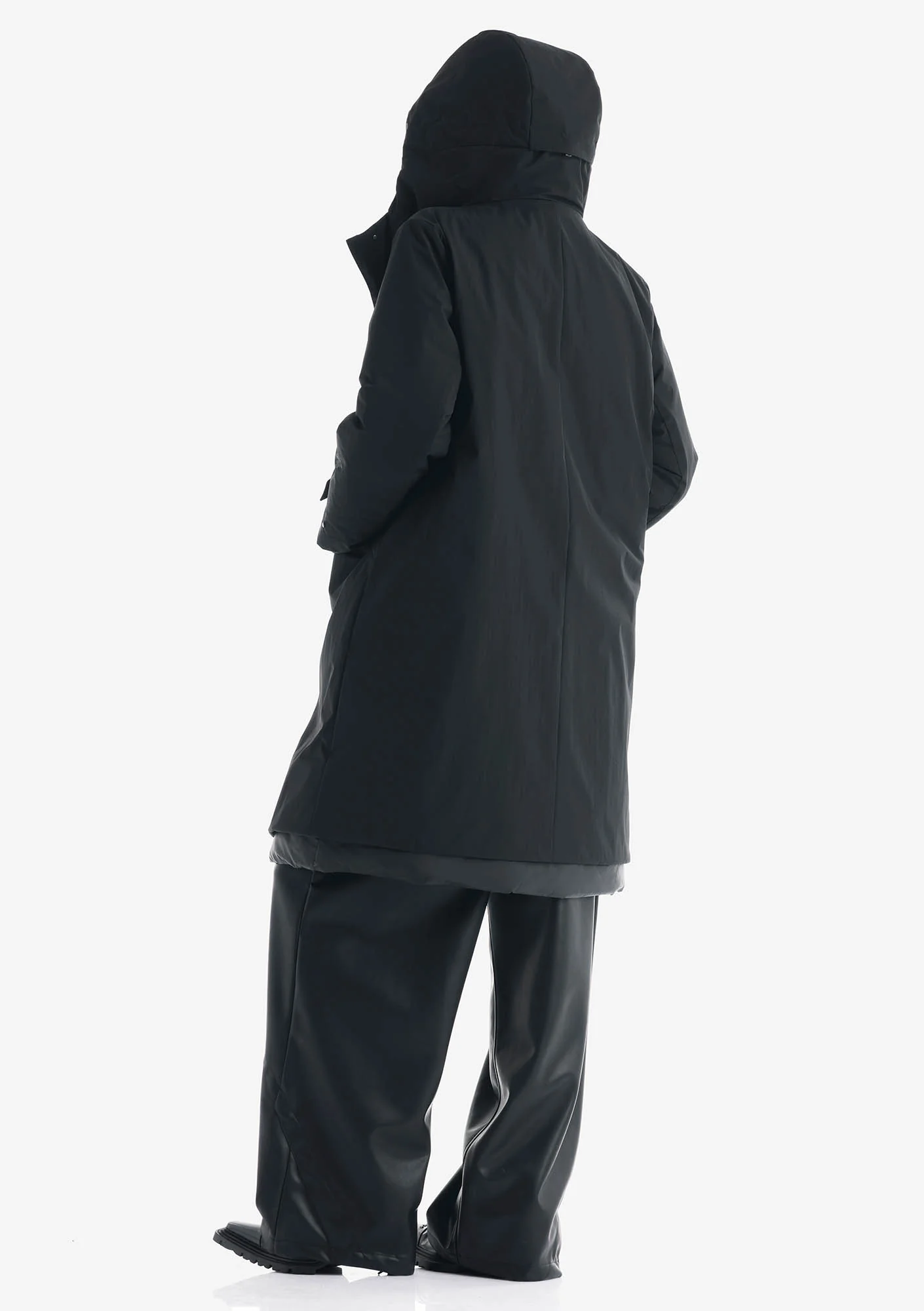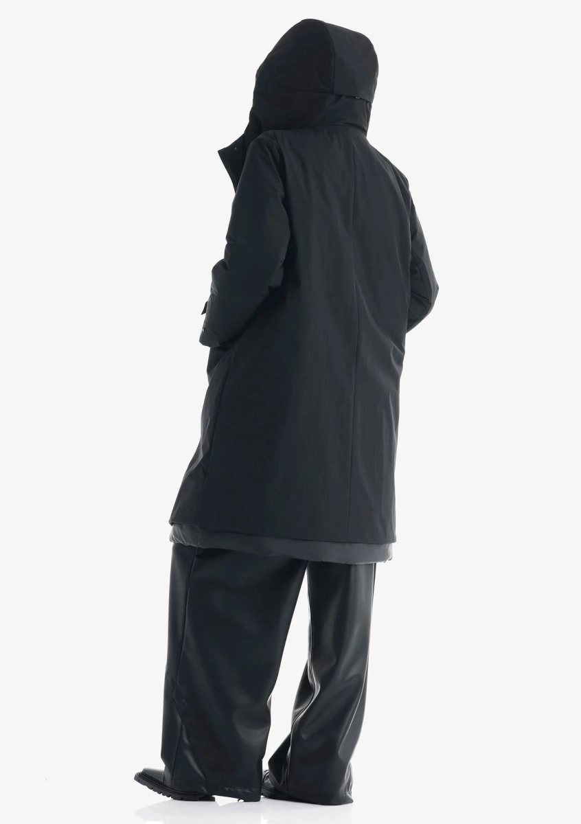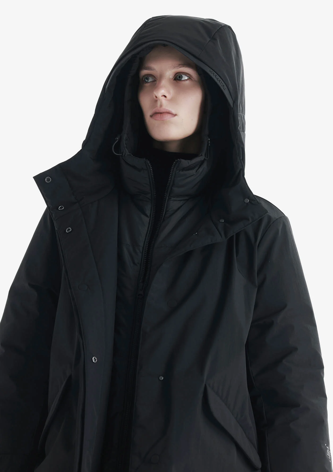 Удлинённая парка VELA с визуальным эффектом многослойности сделана из функциональной водостойкой ткани. Внешний капюшон с жёстким козырьком и внутренний утеплённый капюшон — двойная защита от непогоды. Две застёжки: внешняя — на магнитах и кнопках, внутренняя — на молнии с вентиляцией. Карманы с мягкой подкладкой и скрытые функциональные элементы усиливают комфорт и удобство в динамике.