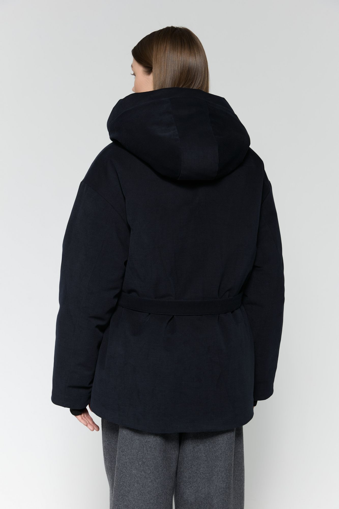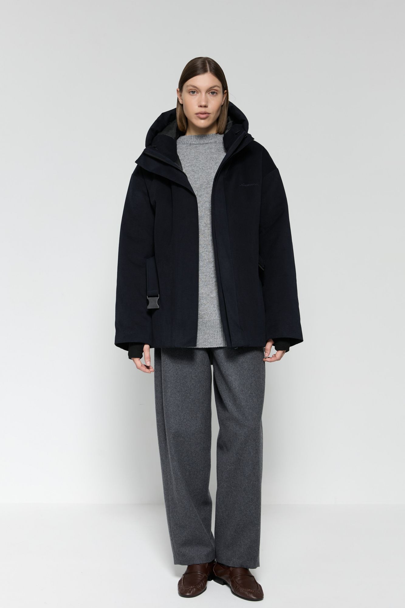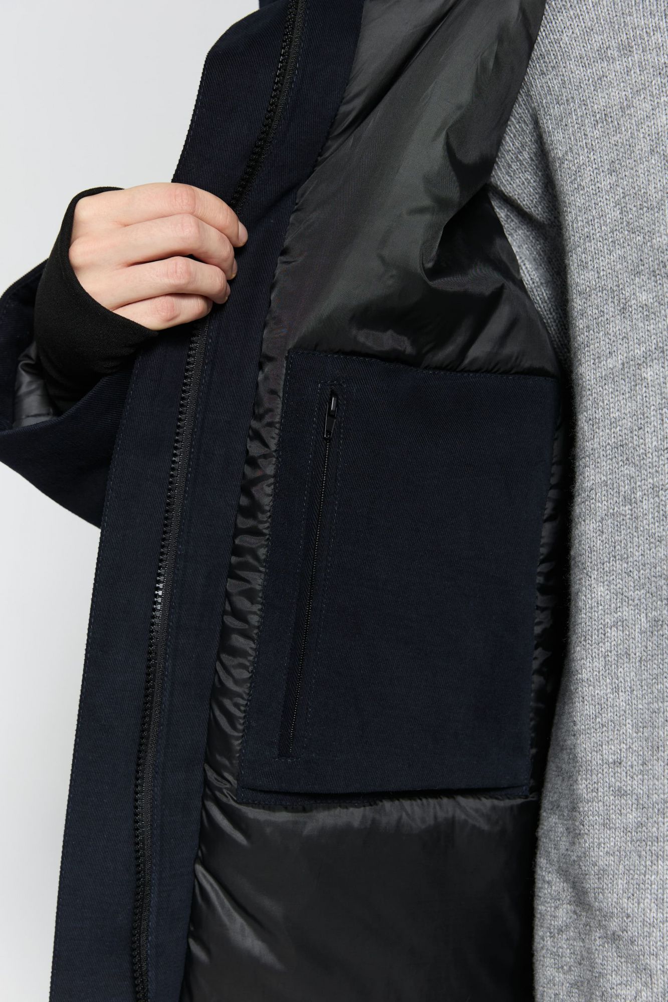 Воротник-стойка и капюшон с кулиской со шнуром - можно регулировать объем и посадку. Молния с внутренней планкой, чтобы при застегивании не «зажевывать» материал. Есть доп верхняя планка на скрытые магнитные кнопки, хорошо защищающая от ветра. Манжеты сшиты из термополотна с удобной прорезью для большого пальца.