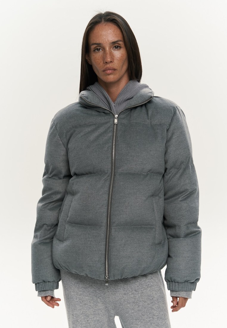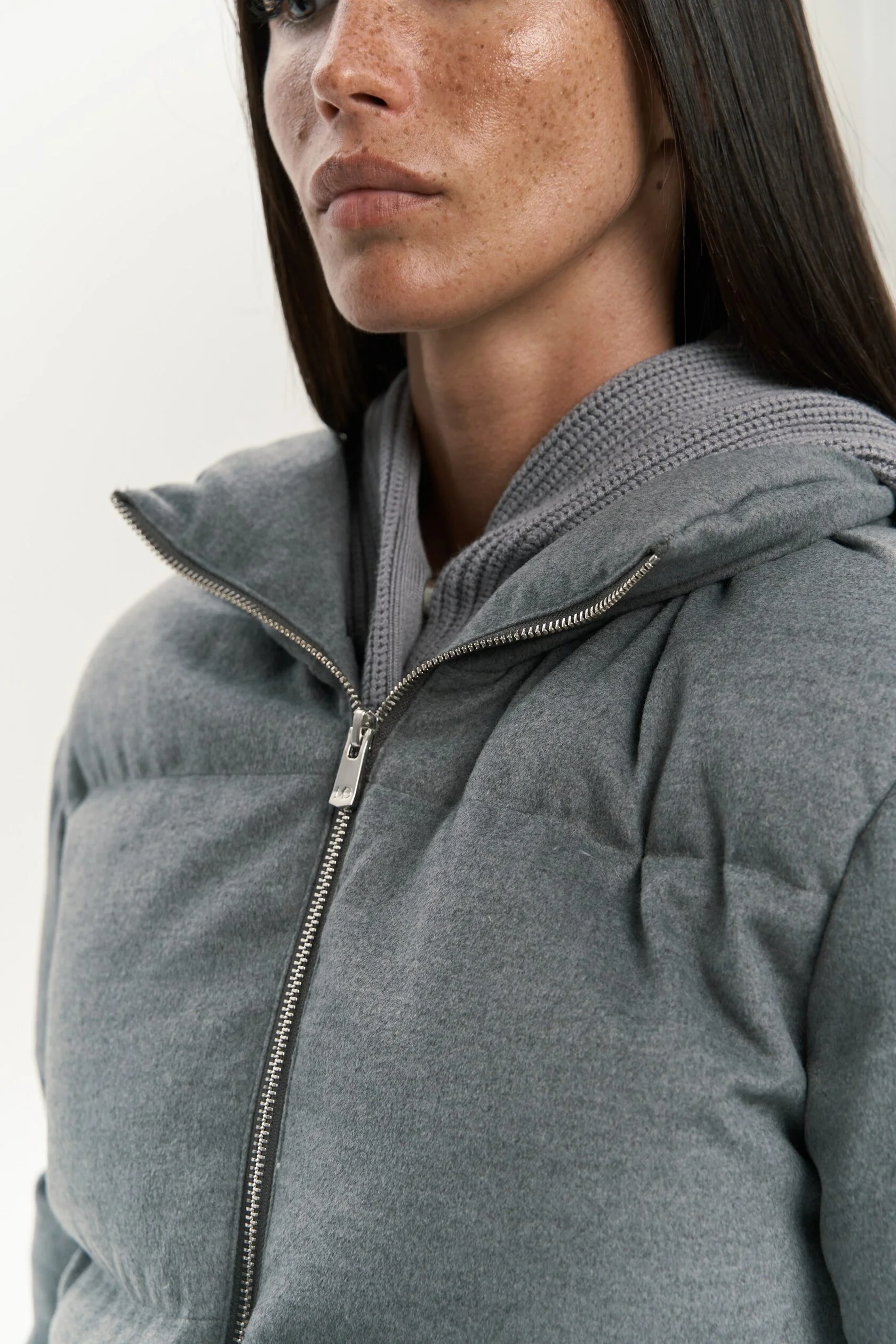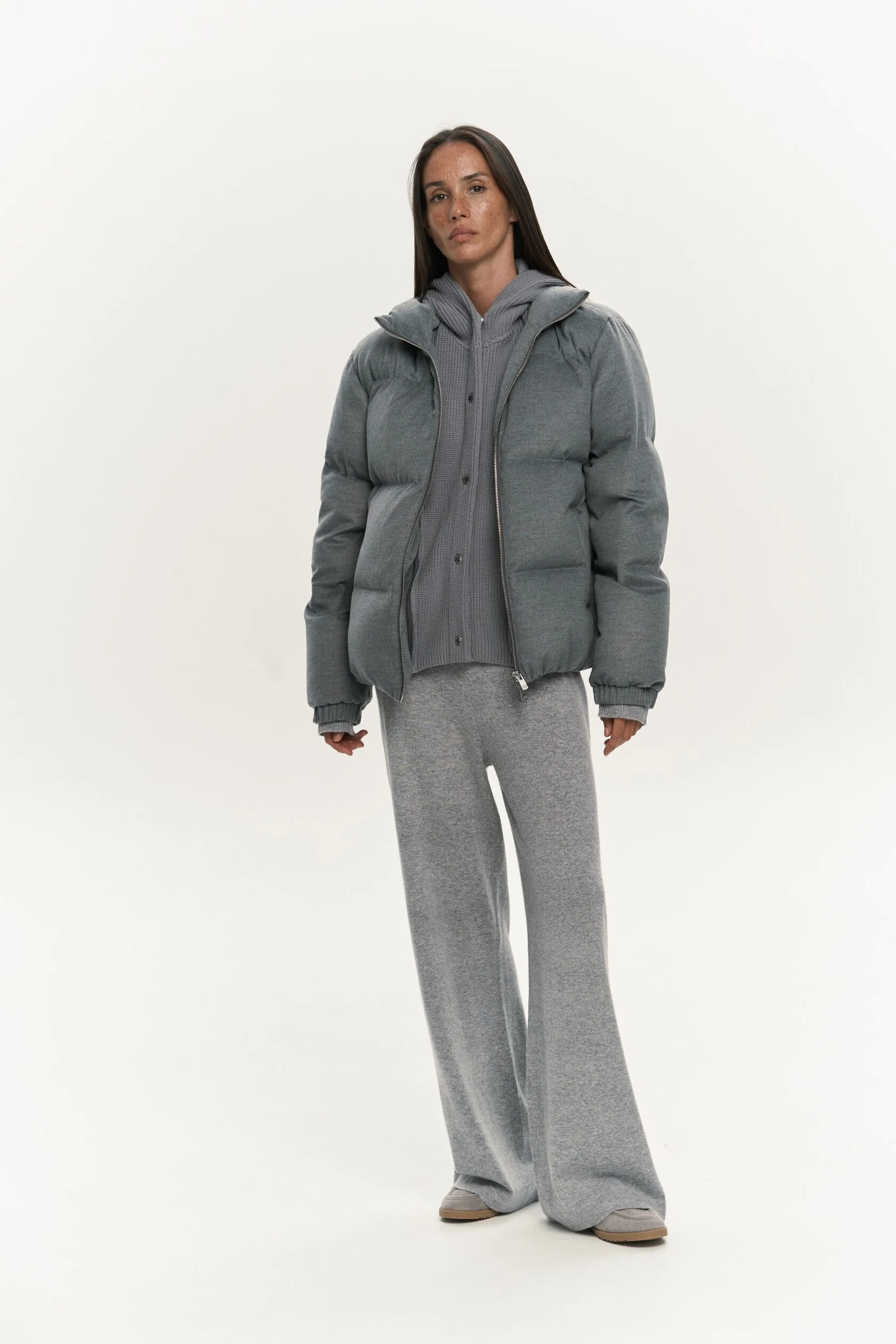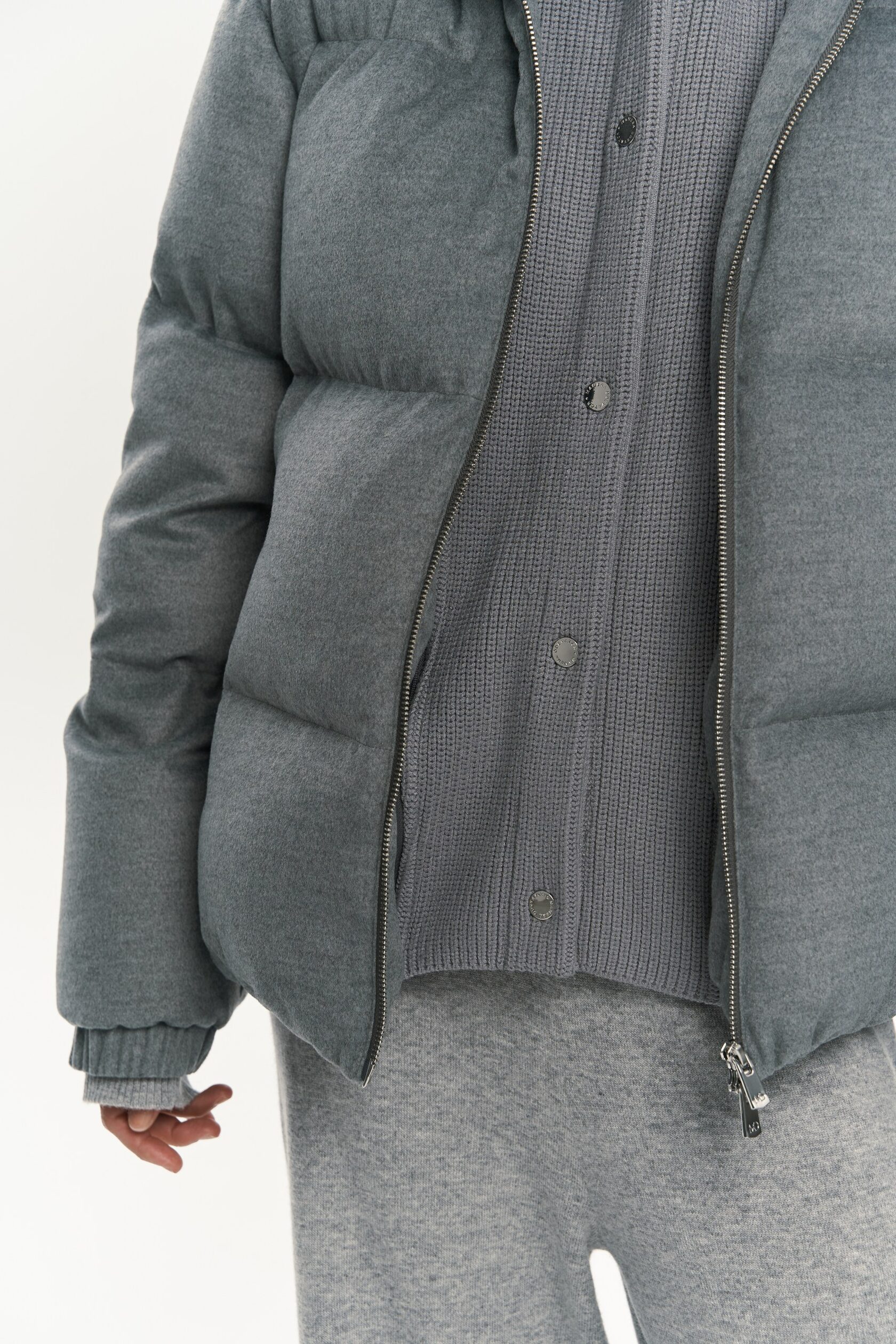 Пуховик с кашемированной вязаной подкладкой капюшоном — это элегантная и невероятно уютная зимняя модель, сочетающая натуральные материалы и ручную работу. Верх выполнен из плотной шерстяной ткани, сохраняющей тепло, а внутренняя часть утеплена пуховым наполнителем для максимальной защиты от мороза. Особый шарм придает подкладка, связанная из мягчайшего кашемира, которая нежно прилегает к телу, а объемный вязаный капюшон дополняет образ и надежно укрывает от ветра. Такой пуховик идеален для осени и зимы, легко комбинируется с джинсами, вязаными кофтами и грубой обувью, подчеркивая скандинавский или эко-шик.