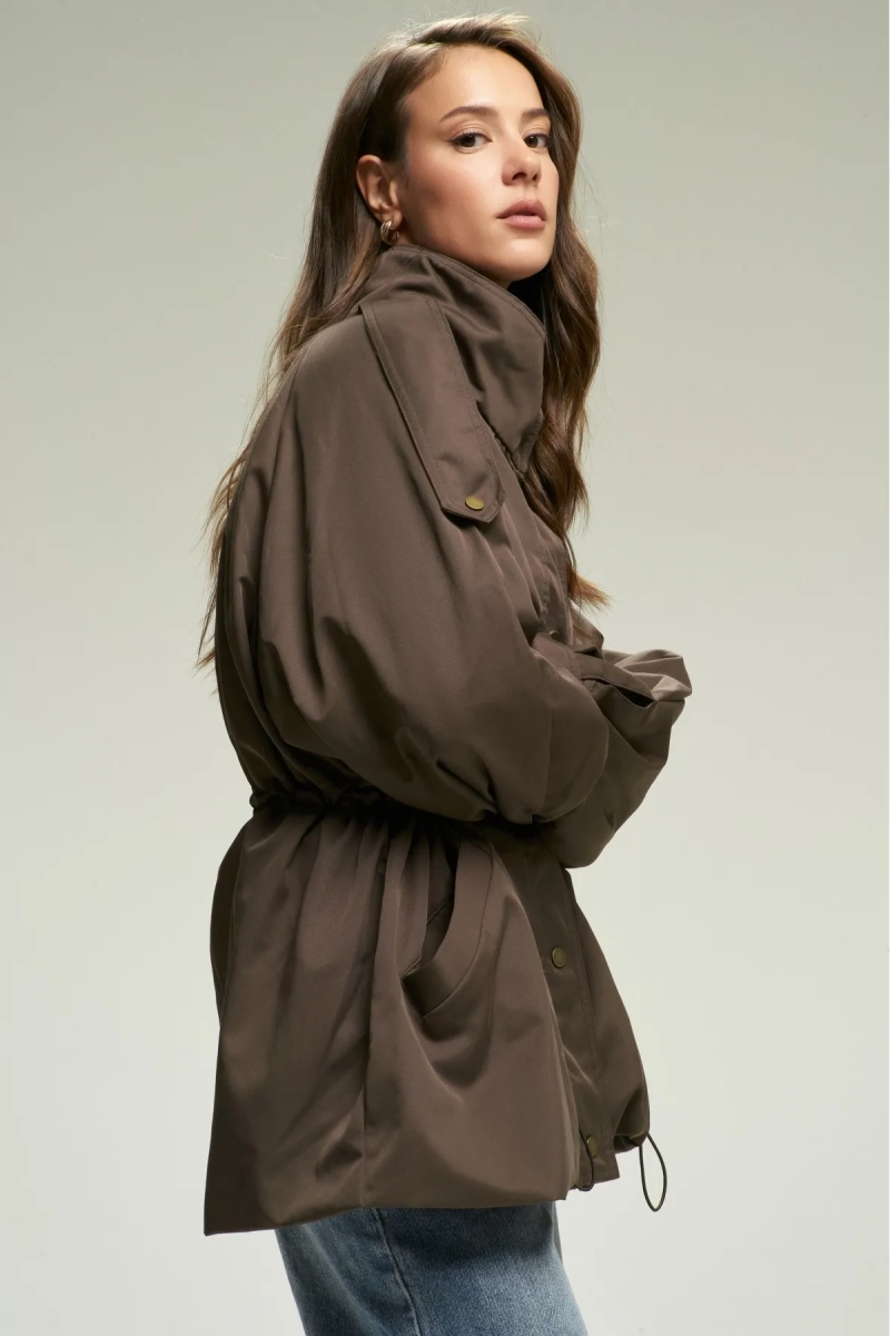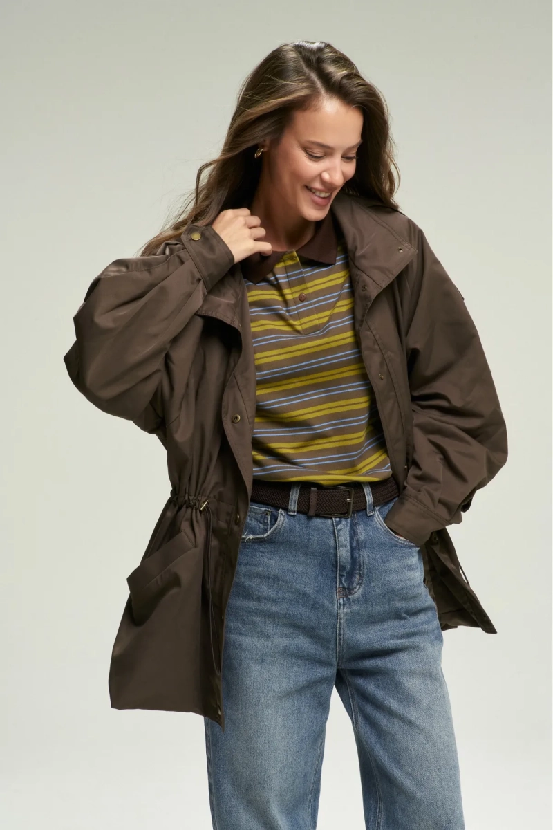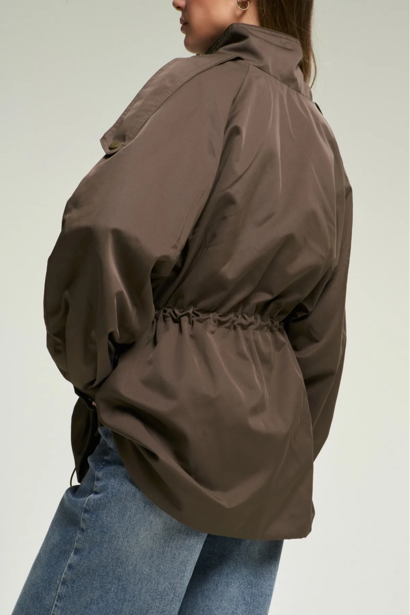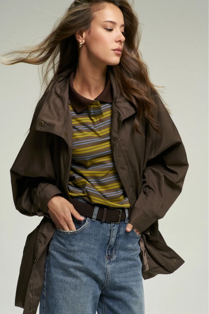 Объемная куртка-реглан на кулиске создана для стильных повседневных образов и динамичной жизни в городе — носите ее с джинсами и обувью на плоском ходу.