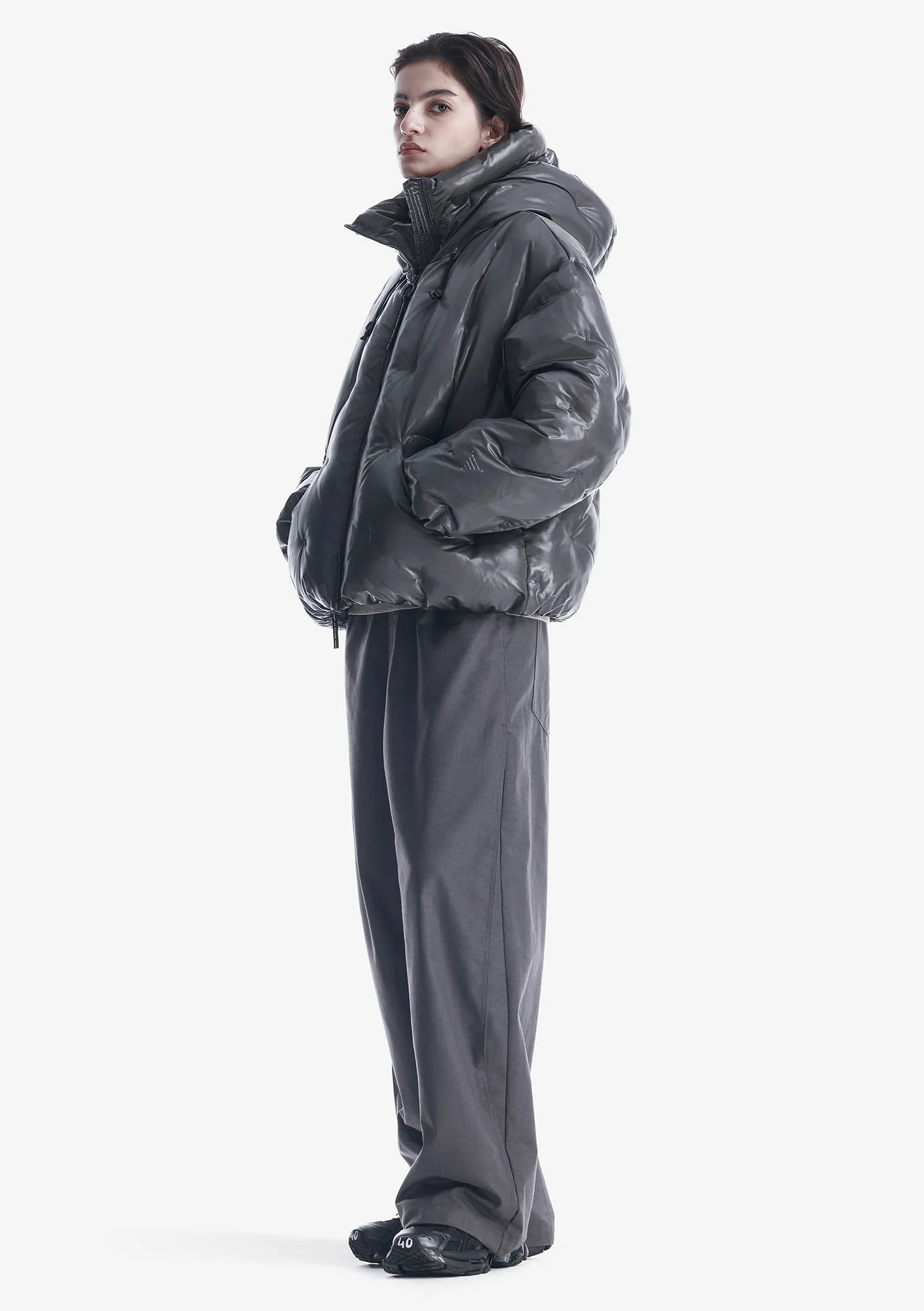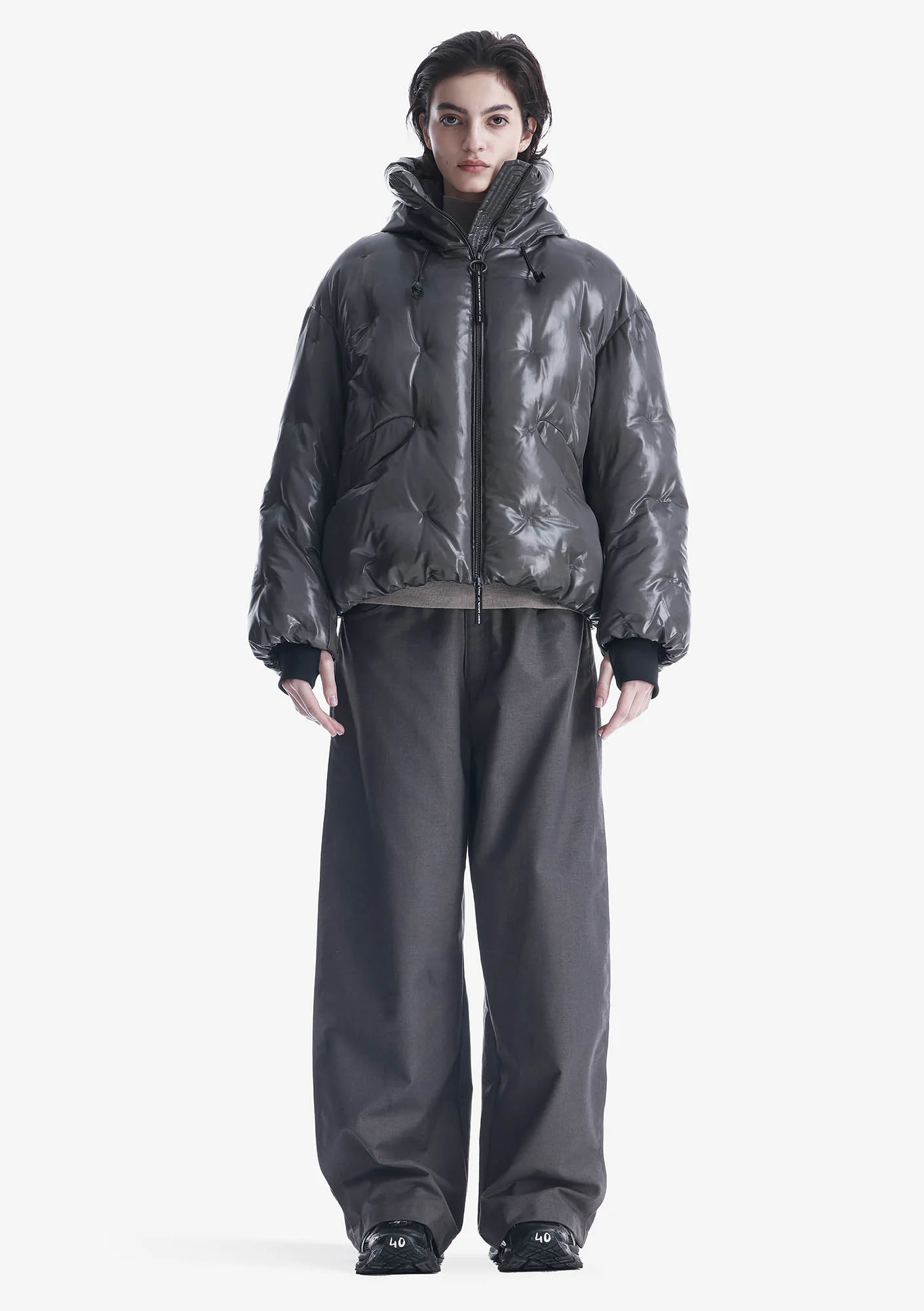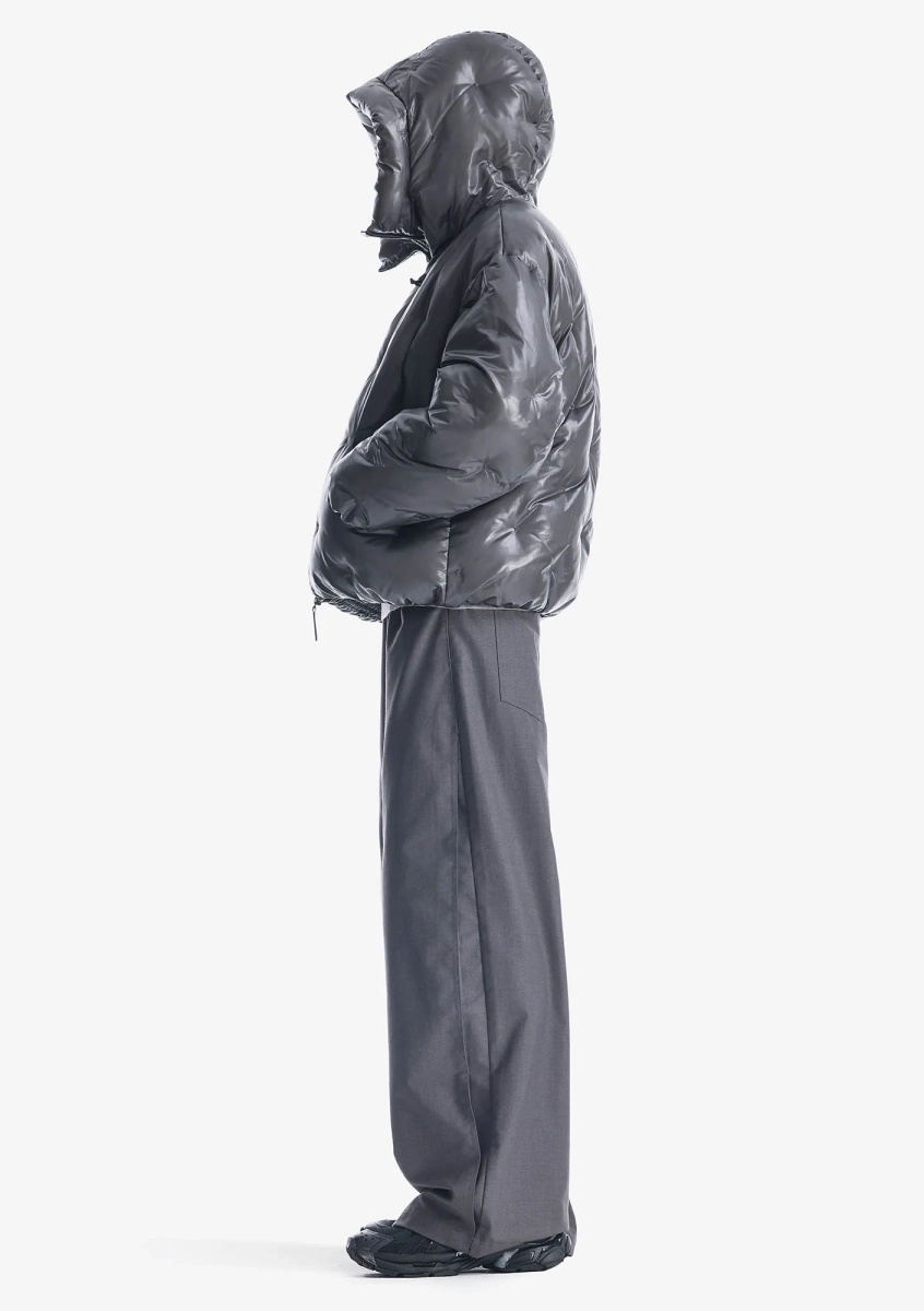 Ткань с эффектом бликов и глубины состоит из двух соединённых слоёв: полупрозрачного гладкого нейлона снаружи и переработанного полиэстера с плотной фактурой внутри. Cire-финиш удерживает пух и усиливает водоотталкивающие свойства. Покрыта стойким водоотталкивающим составом из экологичных ингредиентов без содержания PFC — не загрязняет окружающую среду и безвреден для организма человека.