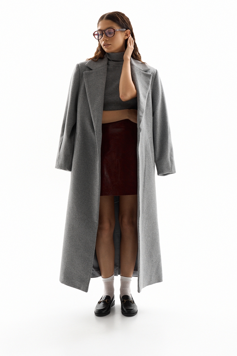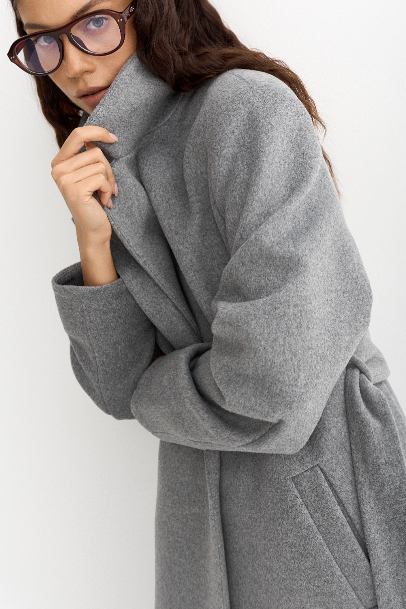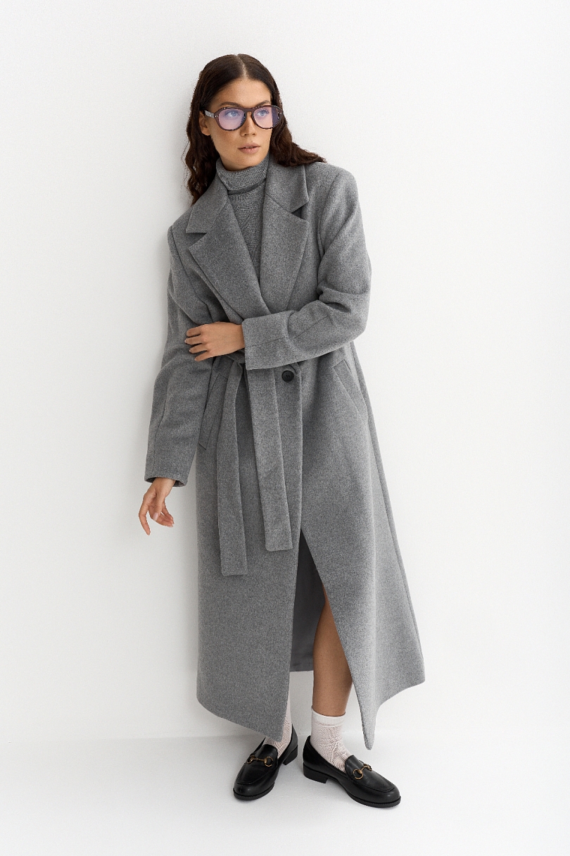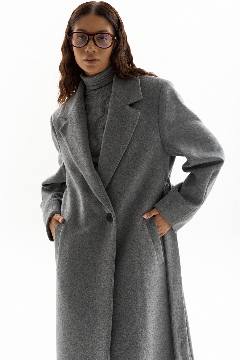 Пальто прямого кроя с поясом