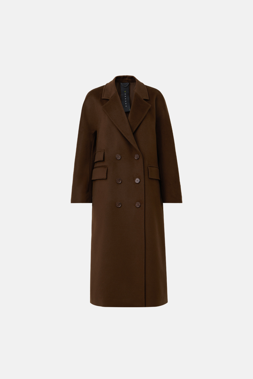 Объёмное двубортное пальто прямого силуэта выполнено из ткани глубокого шоколадно-коричневого оттенка с лёгким оливковым отливом, что придаёт образу благородство и современный характер. Цельнокройные рукава с мягкой линией плеча и крой реглан обеспечивают комфортную посадку и свободу движений, а высокая шлица по спинке добавляет динамики. Декоративная имитация ручного стежка подчеркивает внимание к деталям и создаёт ощущение ручной работы. Модель выполнена на подкладке и рассчитана на температурный режим до –8 °C. Длина миди визуально вытягивает силуэт и формирует утончённый образ, а аккуратные прорезные карманы и декоративный нагрудный карман-имитация сохраняют баланс между функциональностью и элегантностью. Благодаря лаконичному крою и насыщенному цвету пальто станет универсальной основой гардероба: оно одинаково гармонично дополнит деловые комплекты и повседневные образы, подчёркивая уверенность, вкус и современный стиль.