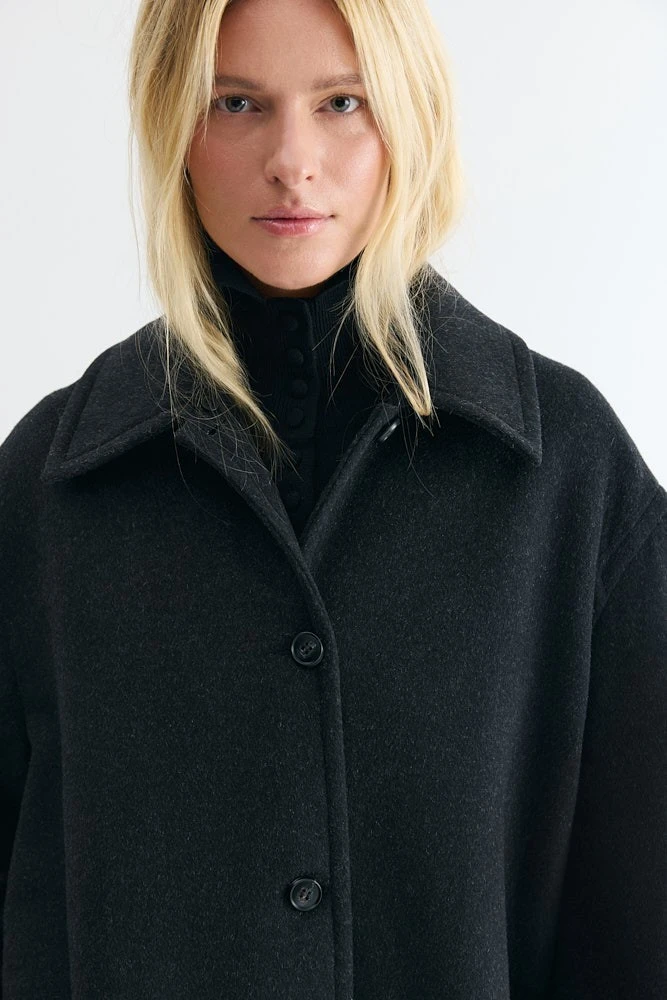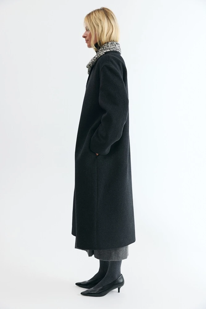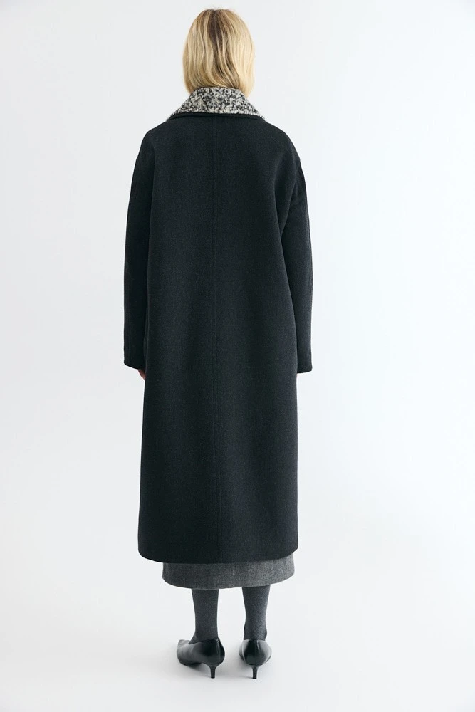 Пальто, которое говорит за вас. Натуральная шерсть дарит тепло и комфорт, при этом остаётся лёгкой и дышащей. Съёмный воротник крепится на пуговицы, которые не видно при носке, и добавляет универсальности: один акцент — два стиля в вашей коллекции. Лаконичный крой подчёркивает фигуру и всегда выглядит статусно — от деловой встречи до прогулки в выходные. Это тот редкий случай, когда вещь совмещает практичность и люксовую эстетику — и отказаться от неё значит упустить инвестицию в стиль на годы вперёд.