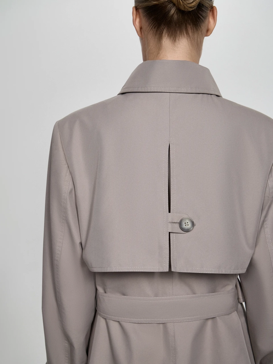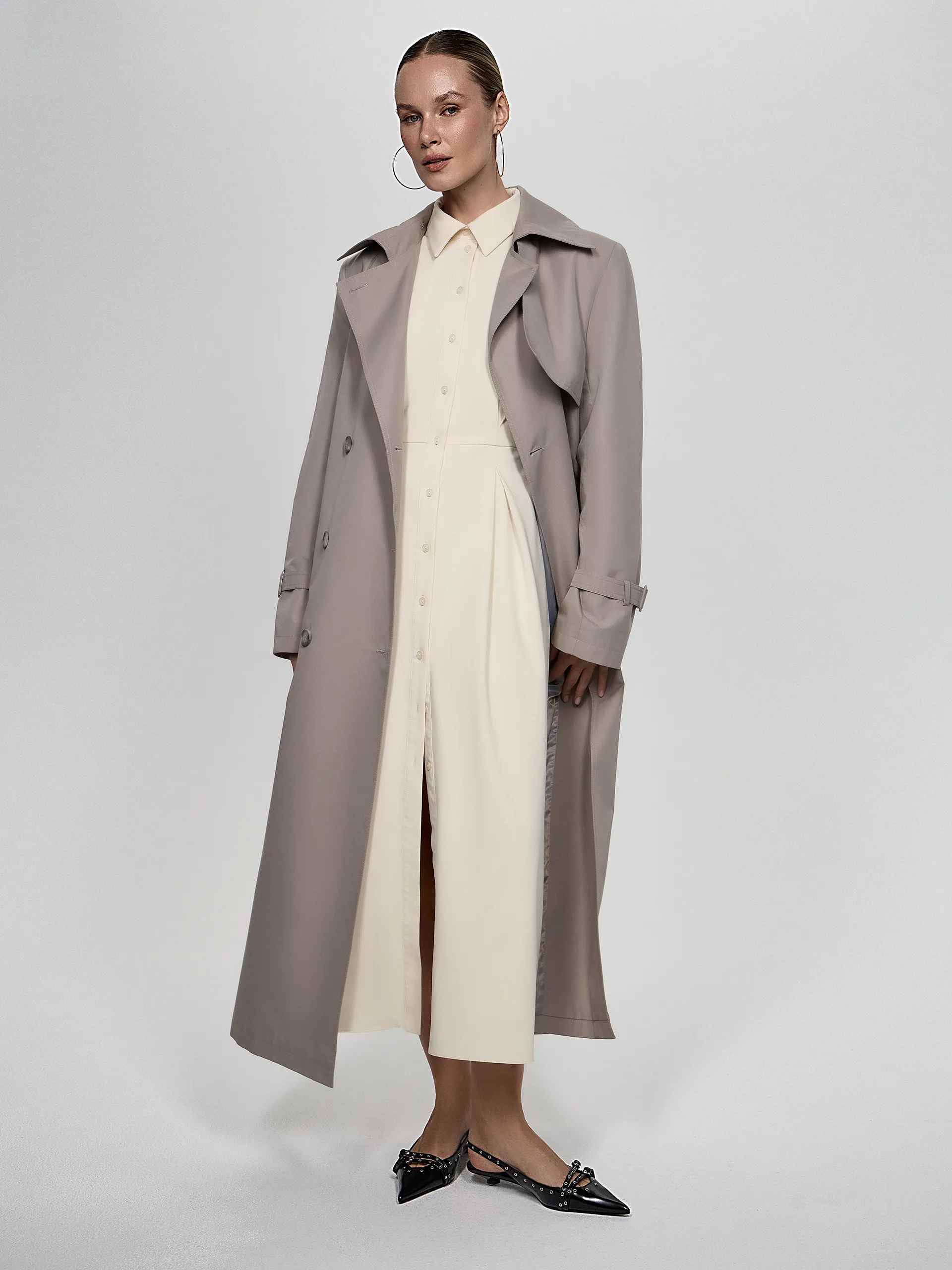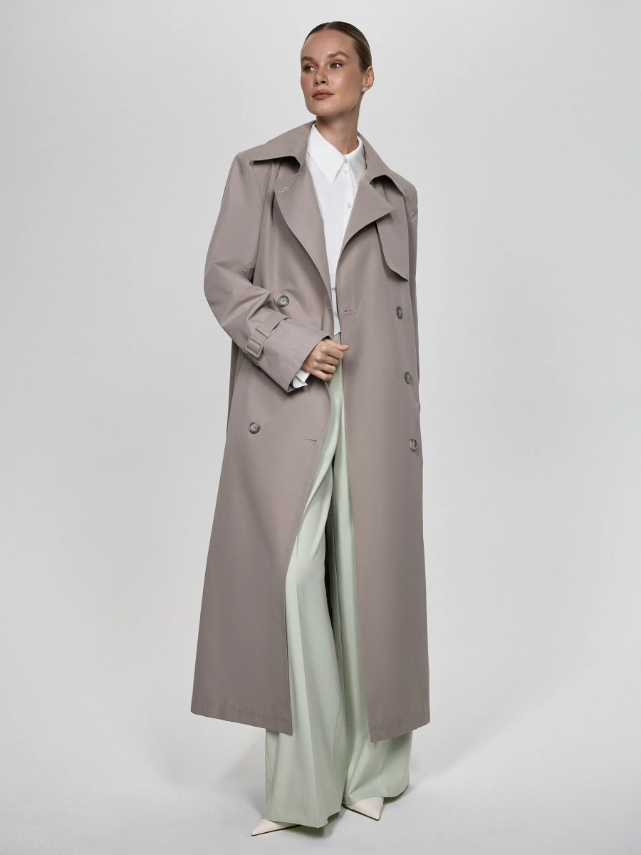 Серый – это новый черный. И тренч Glen – яркое тому подтверждение. Он сочетает в себе классический крой с современным прочтением. Лаконичный серый цвет делает его практичным и универсальным: он легко впишется в любой гардероб и станет отличной основой как для повседневных, так и для более формальных образов. Пояс с пряжкой акцентирует внимание на талии, придавая фигуре изящество, а паты на рукавах – это та самая деталь, которая делает тренч узнаваемым и добавляет ему характера. Идеальный выбор для тех, кто ценит стиль и комфорт.