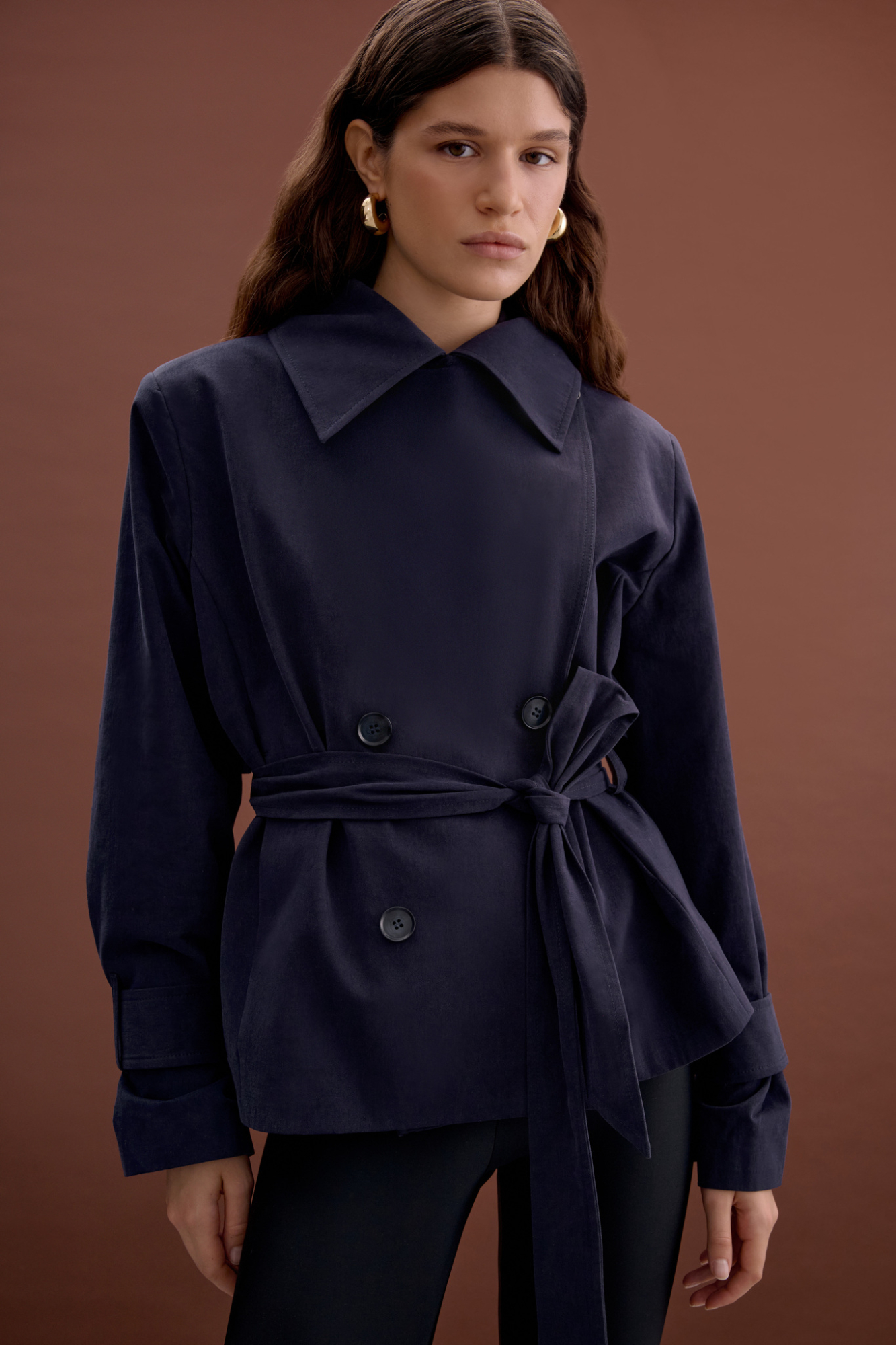 Откройте для себя укороченный тренч из практичной плащевой ткани – стильный акцент вашего гардероба! Элегантность синего оттенка подчеркнет вашу индивидуальность, а длина идеально дополнит любой образ. Хлопковая ткань обеспечивает комфорт и безопасность материала, делая ношение удобным и приятным. Идеальный выбор для стильных женщин, ценящих качество и моду!