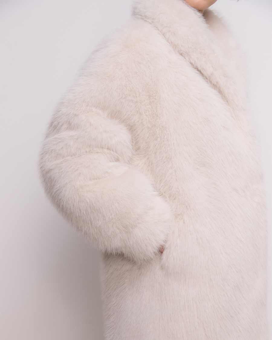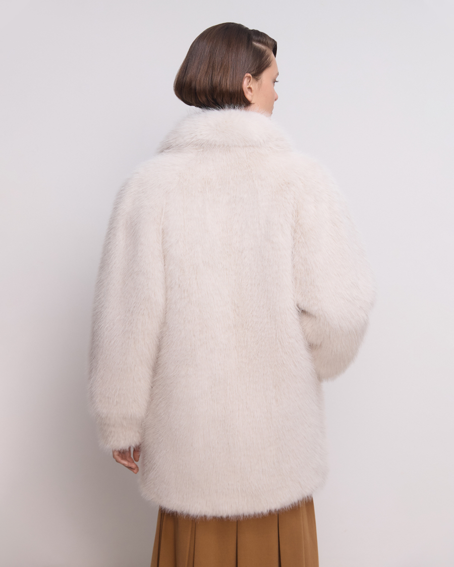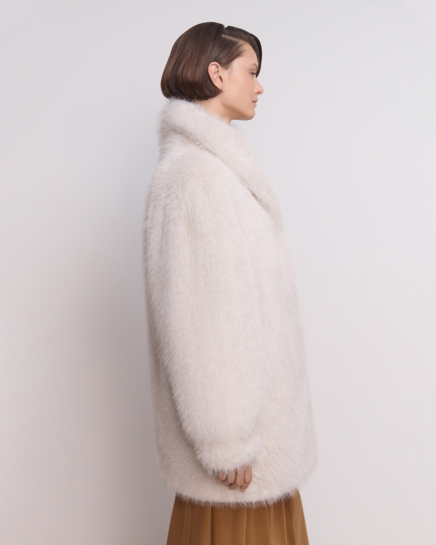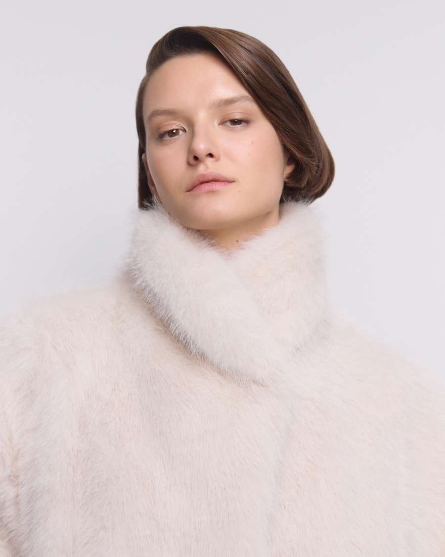 Пушистая и классная! Экошуба оверсайз фасона с эффектным воротником апаш и объемными рукавами. Каждая деталь продумана для защиты от холода: воротник поднимается и застегивается на крючок, а на рукавах есть манжеты. Одинаково хорошо смотрится и с повседневными образами, и с вечерним платьем.