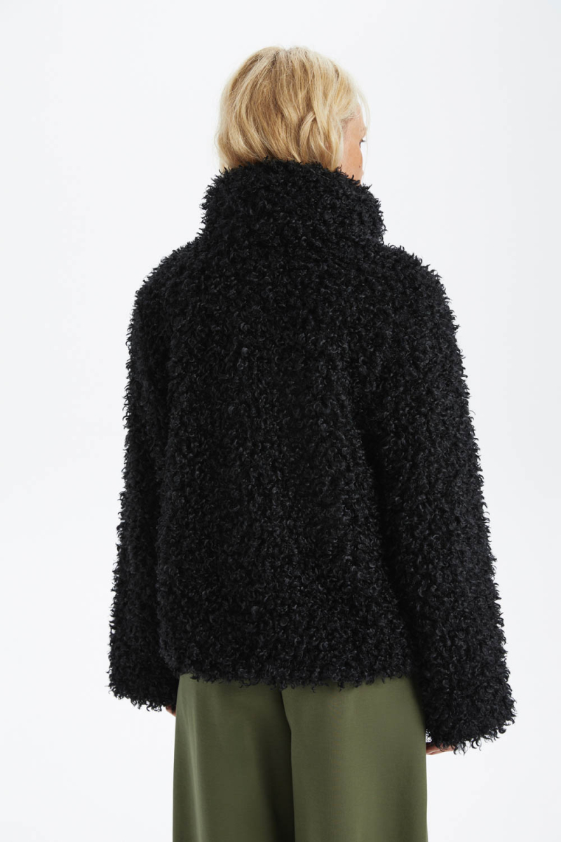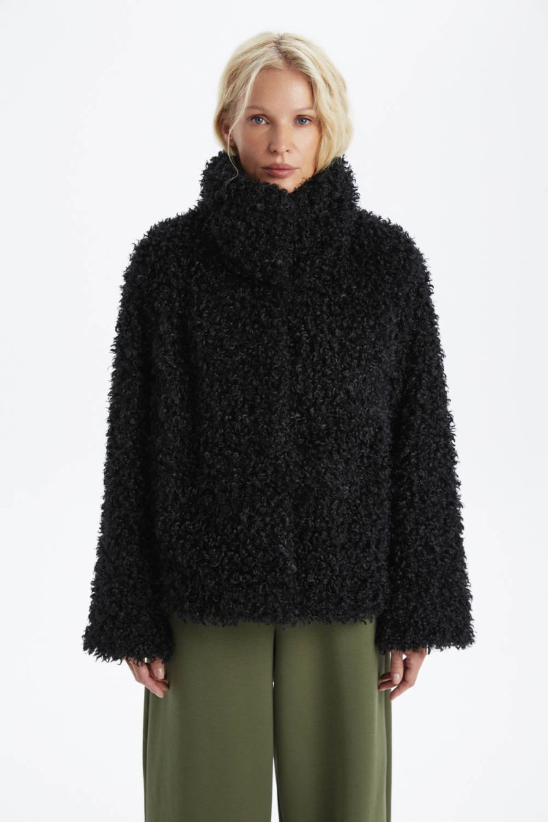 Чёрная шубка с воротником-стойкой — это стильный и тёплый элемент верхней одежды, который станет отличным дополнением к вашему зимнему гардеробу. Ворсистая текстура придаёт изделию особый шарм, а воротник-стойка обеспечивает комфорт и защищает от холода.