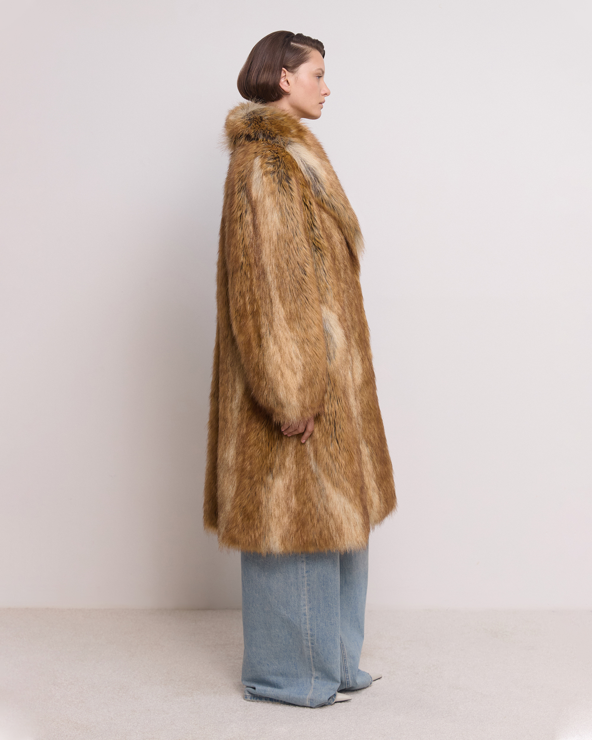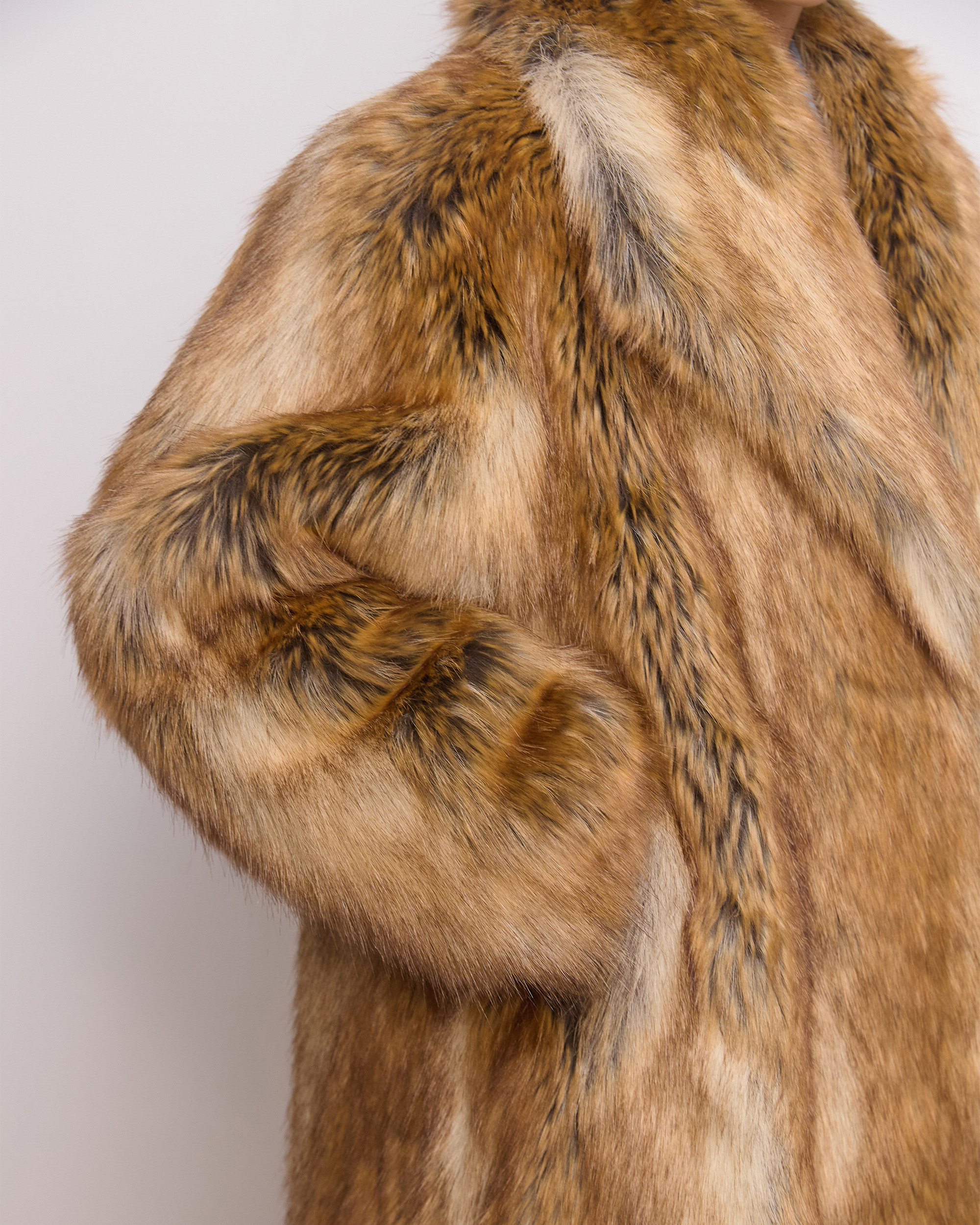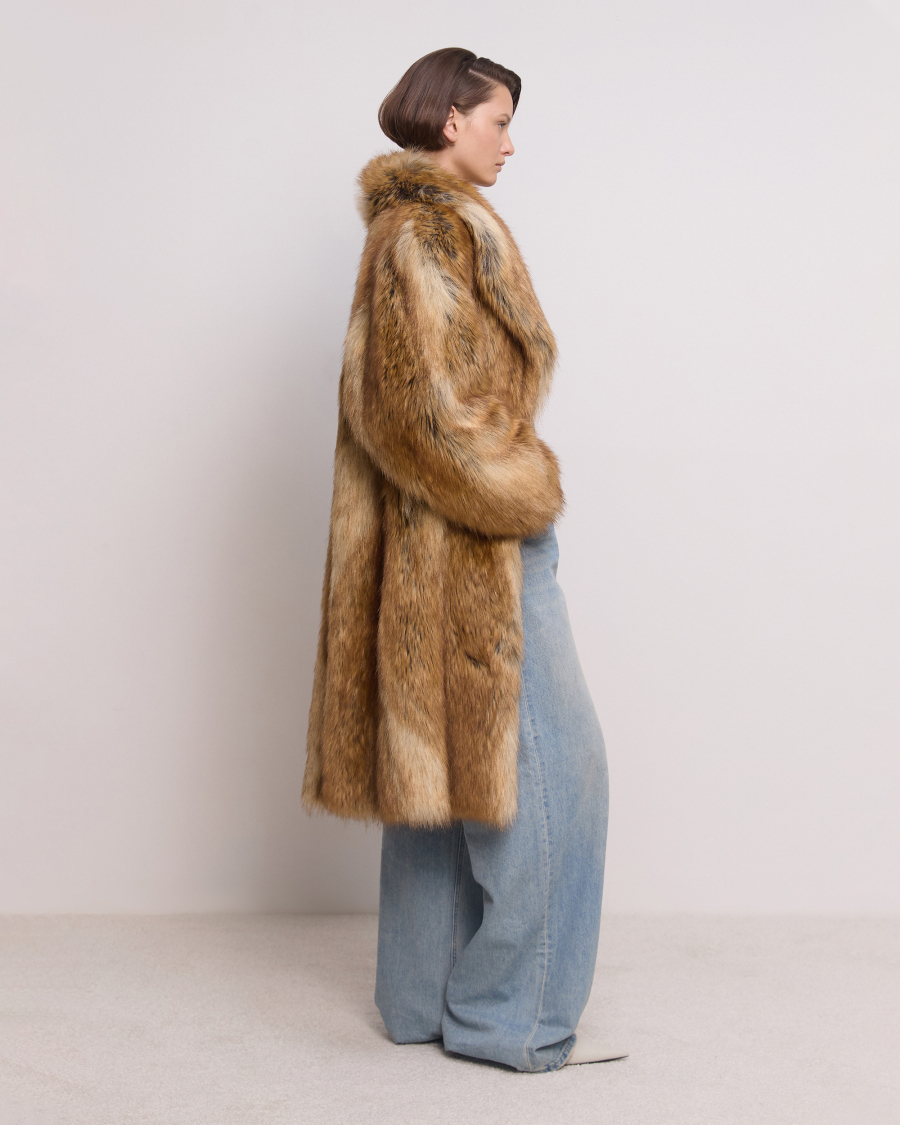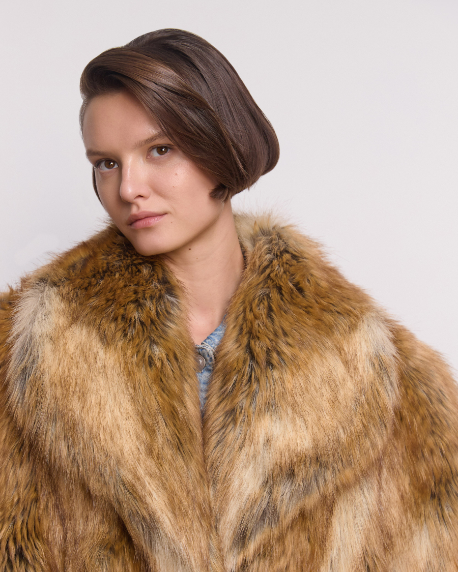 Актуальный А-силуэт и раскидистый воротник апаш идеально дополняет эффектный мех под лису. Неоднородный и потому уникальный рисунок экомеха создан несколькими теплыми оттенками: бежевым, коричневым и рыжеватым. Манжеты на рукавах обеспечивают дополнительный комфорт. В этой экошубе будет тепло даже в суровые морозы, а красивыми станут любые образы с ней – от повседневных до нарядных.