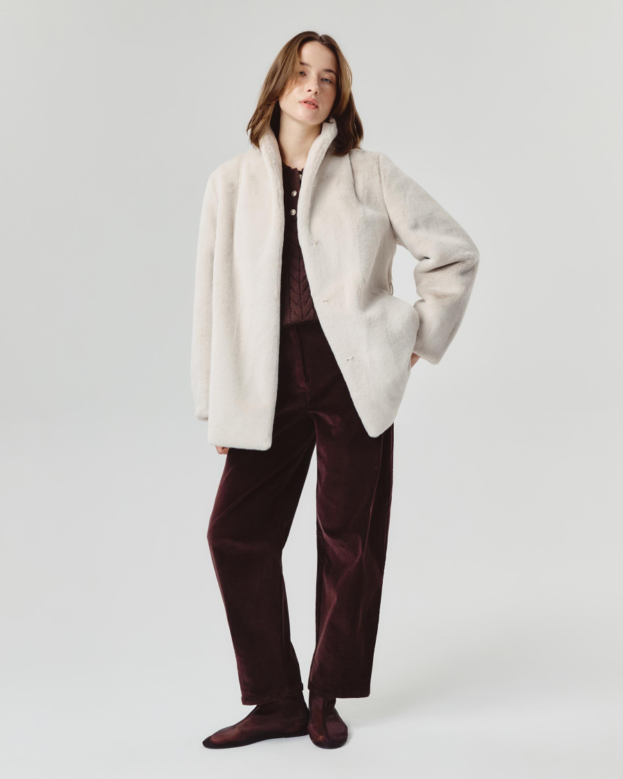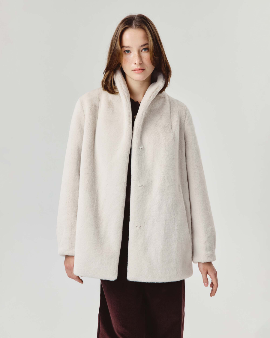 Безукоризненно женственная модель в укороченной длине. В ней легко передвигаться по зимнему городу, ездить на автомобиле и гулять пешком, не жертвуя ни теплом, ни стилем. Экошуба легко сочетается с денимом, элегантными юбками и брюками, и даже подойдет для уютных образов с трикотажем.