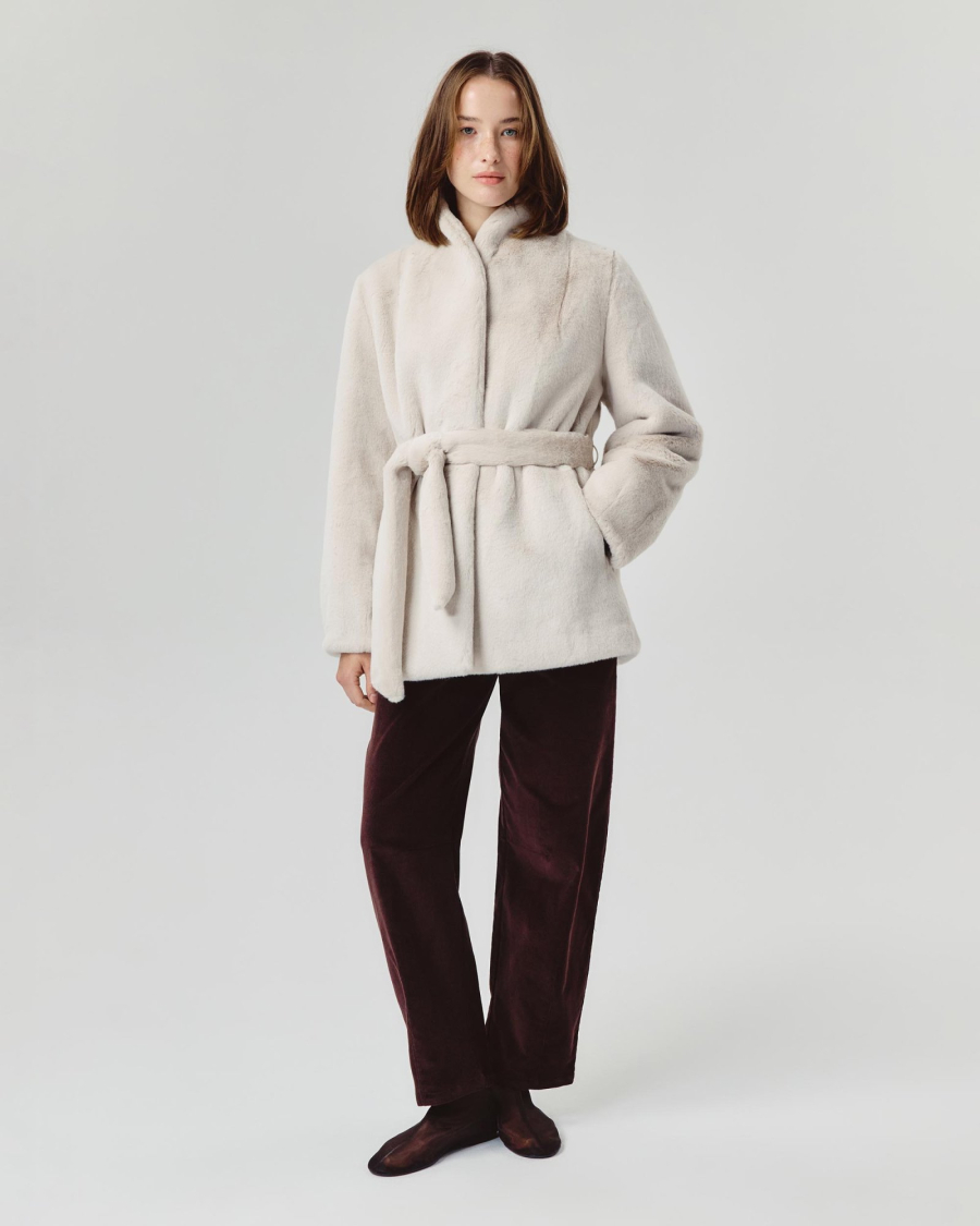 В комплекте идёт меховой пояс, для красивого приталивания силуэта.