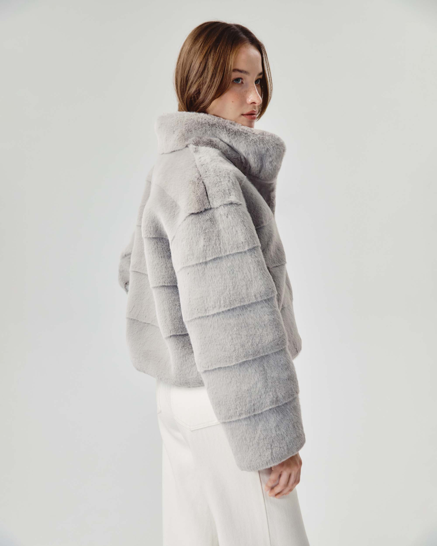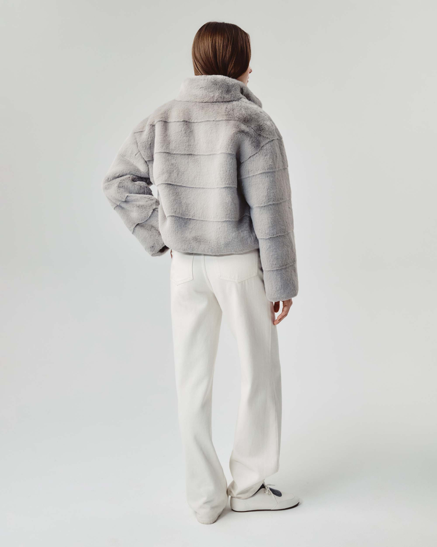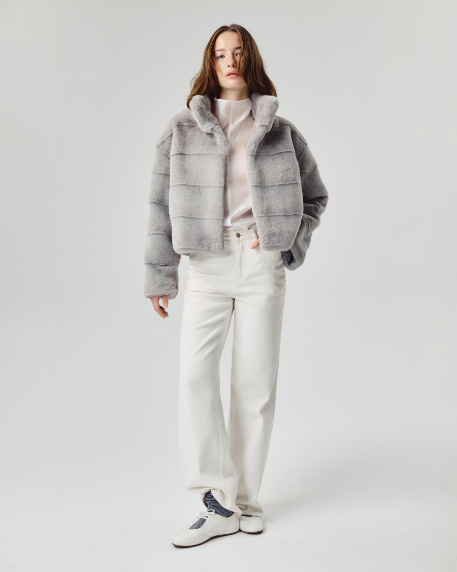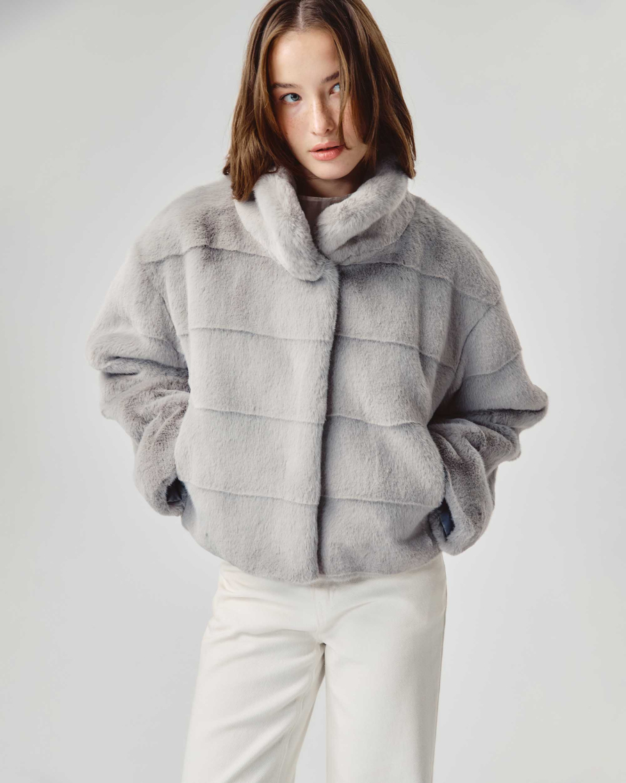 Экошуба имеет спущенную линию плеча для комфортного оверсайза и воротник-стойку, который можно застегнуть при помощи удобного скрытого магнита, чтобы плотно закрыть шею.